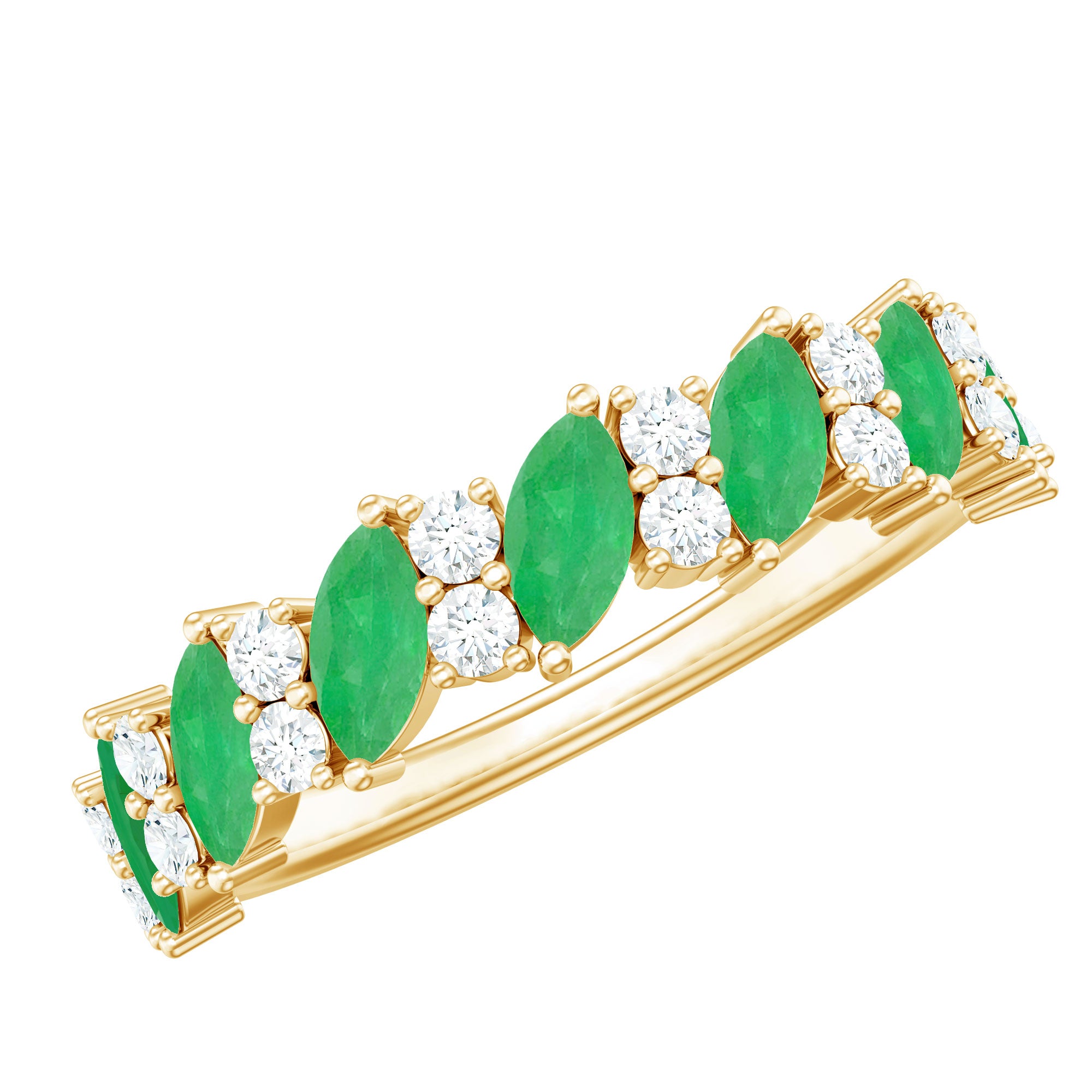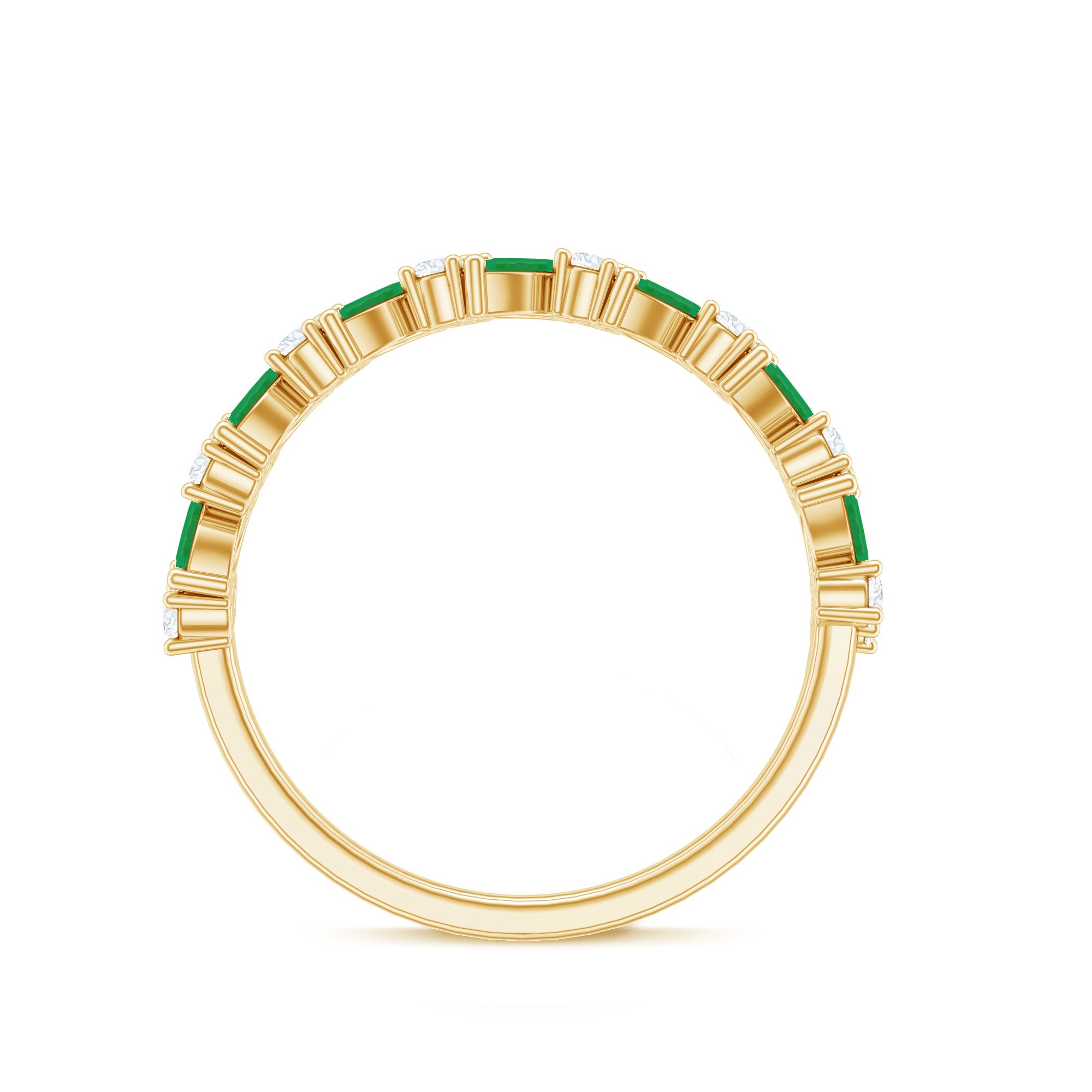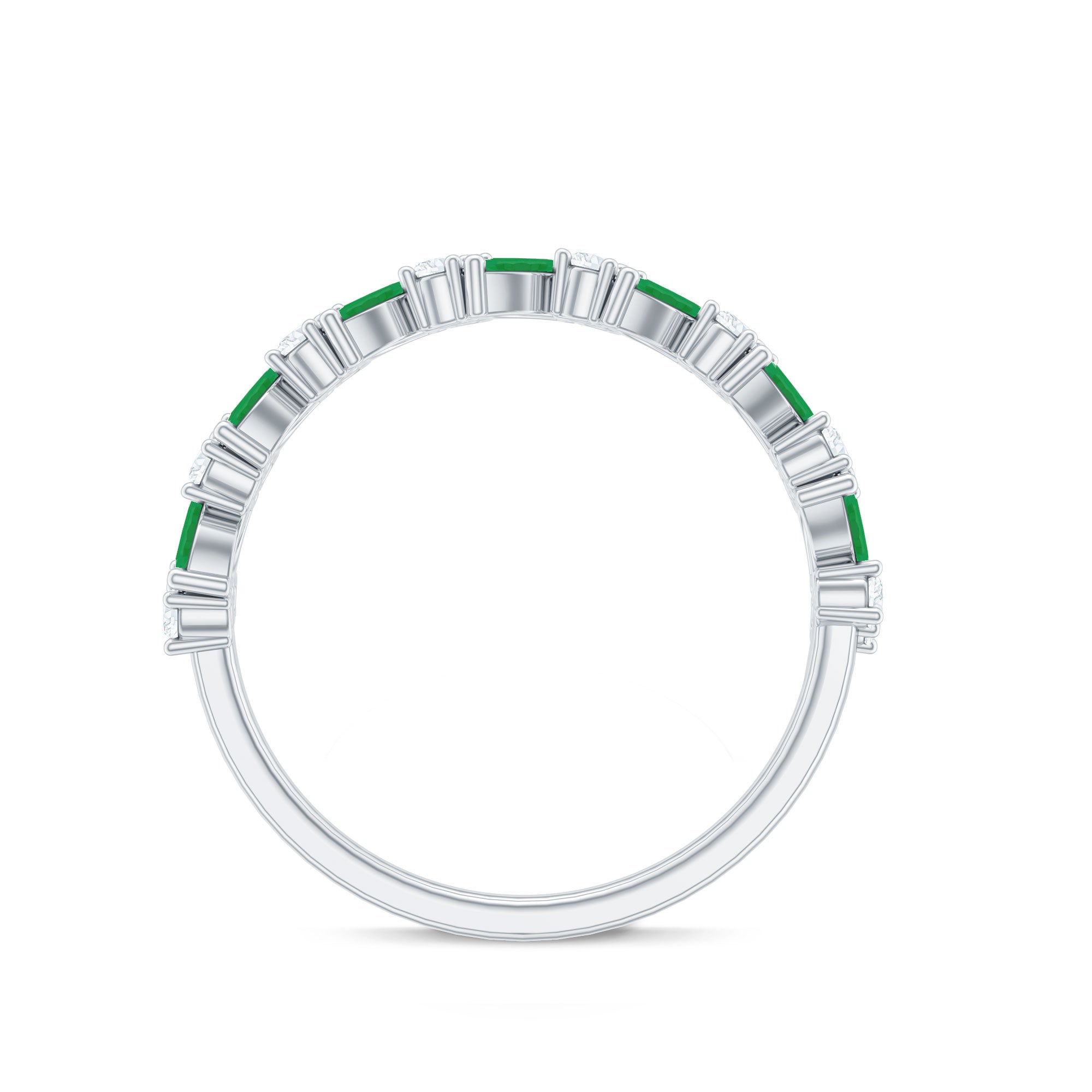 Natural Emerald Diamond Half Eternity Band Ring for Anniversary