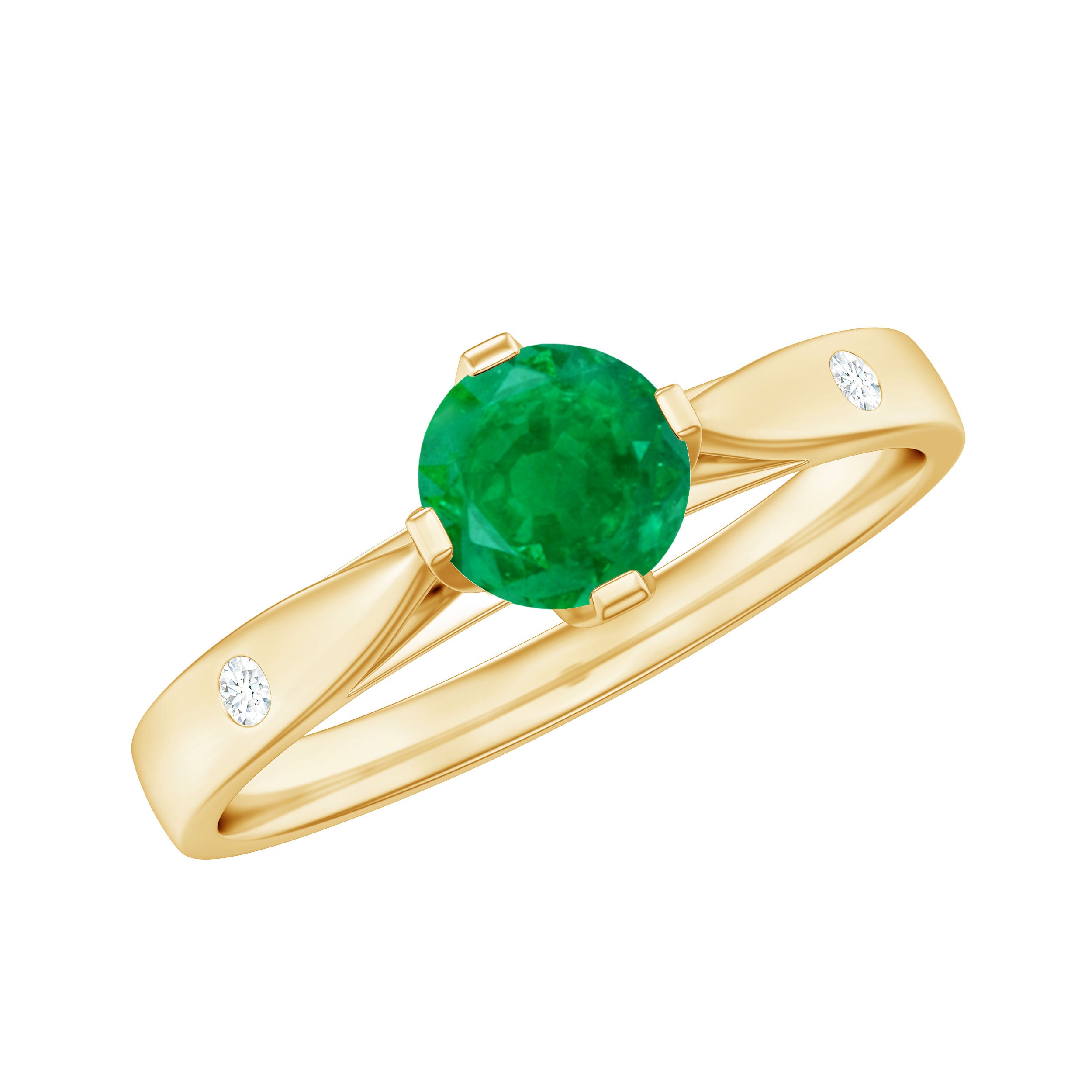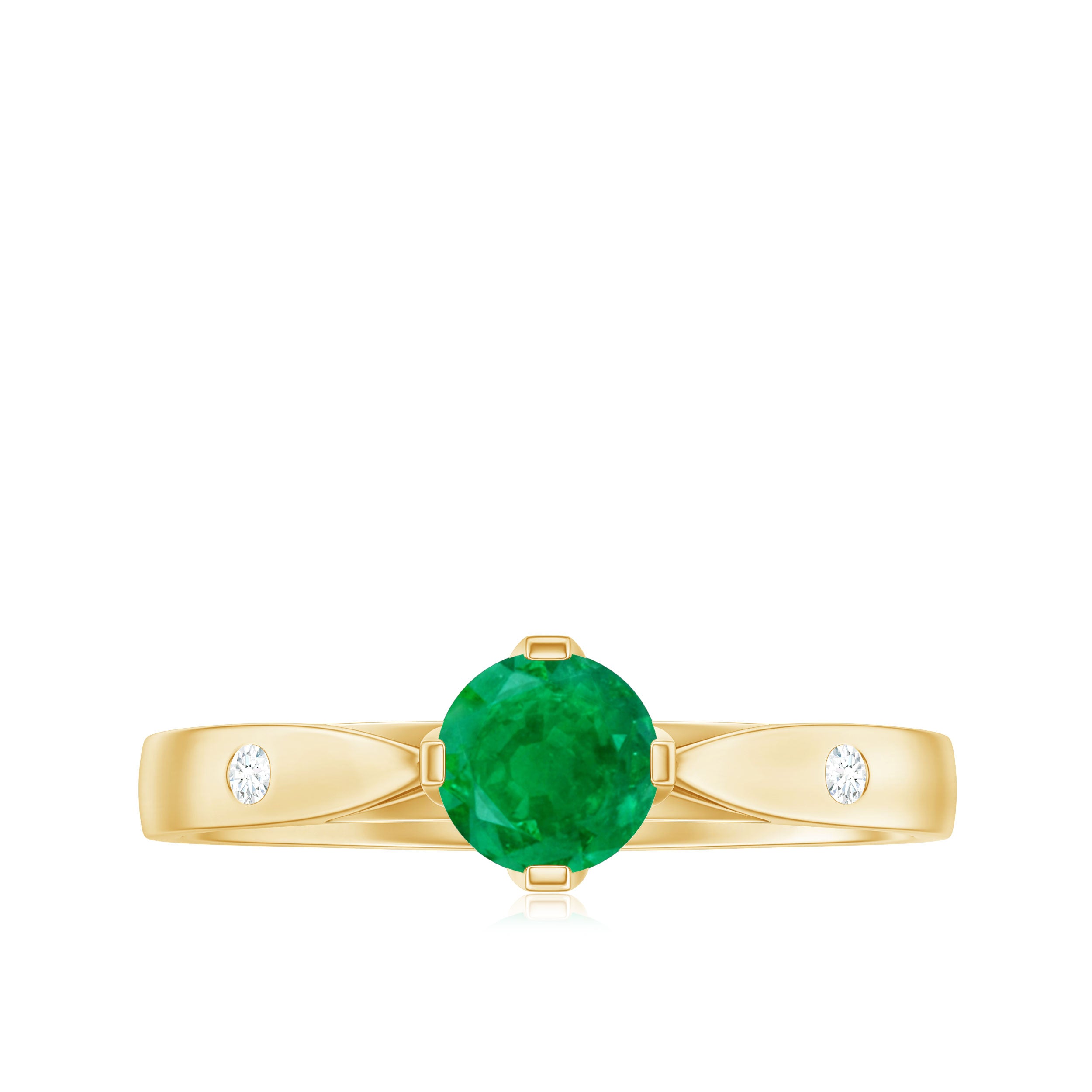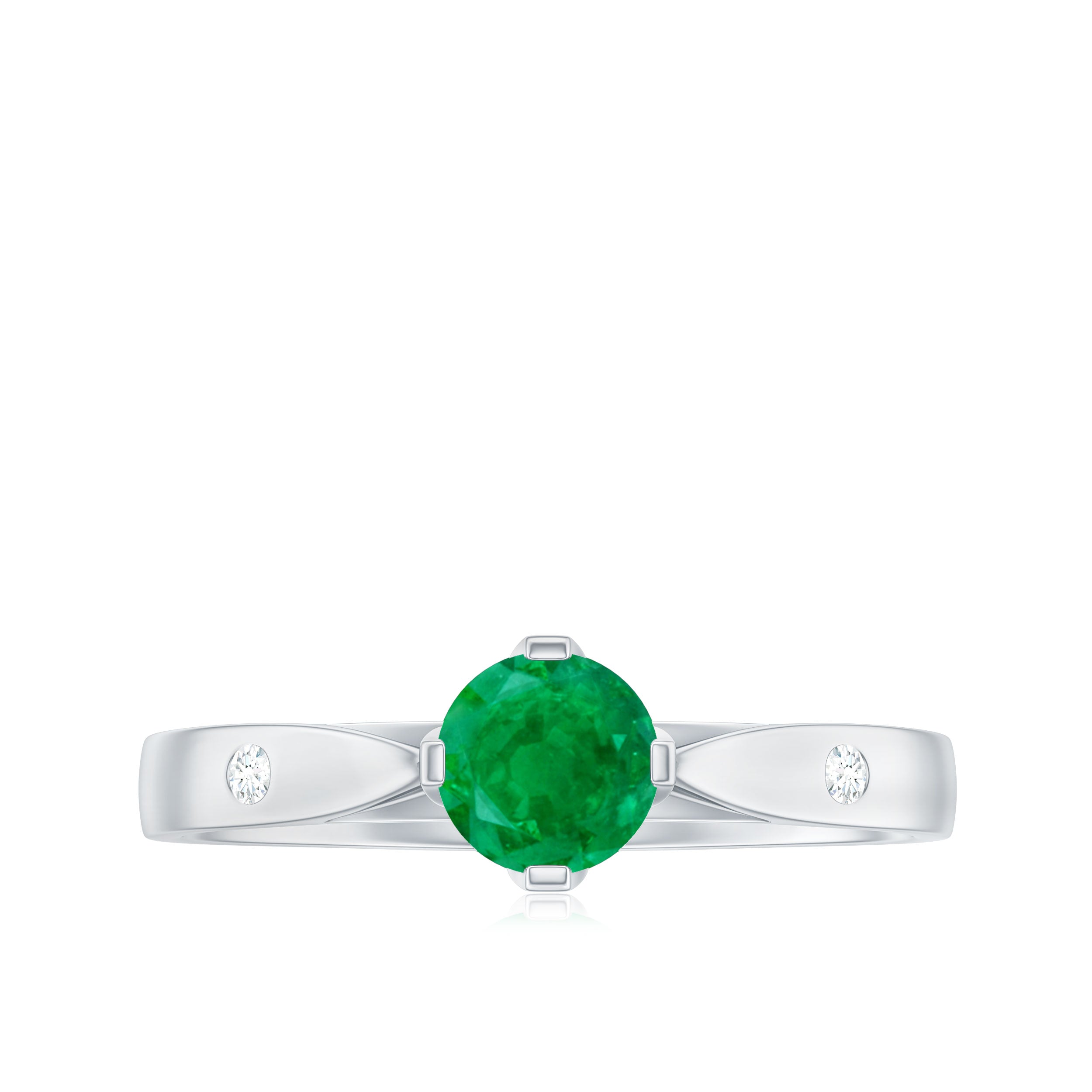 Seal your promise of love with a touch of elegance with this stunning Emerald Promise Ring, a design that beautifully blends simplicity, sophistication and heartfelt sentiment. At its center rests a vibrant 5 mm Round Shape Emerald that symbolizes growth, harmony and devotion. On either side, a sparkling Diamond accentuates the center stone, adding brilliance and a sense of timeless elegance to the piece. The Pinched Shank creates a graceful, modern design that highlights the stones while providing a delicate touch, perfect for expressing a commitment that is both personal and enduring. Every detail of this Emerald Diamond Ring is crafted to celebrate a love story that is unique and everlasting. Presented in a signature jewelry box and available in multiple ring sizes, this Commitment Ring is ready to mark a special moment, a milestone or a meaningful vow shared between two hearts.
