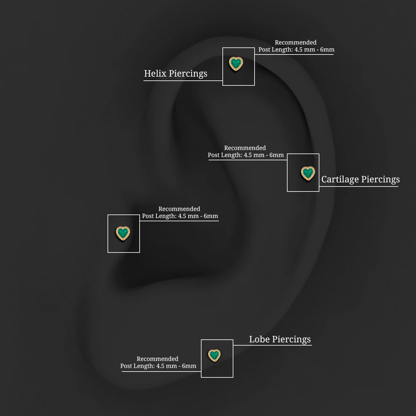 Catch the trend: Introducing our Emerald Heart Earring truly a showstopper! A Heart Shape Emerald locked in an engraved Bezel Setting - the epitome of chic sophistication! You can wear this Emerald Earring solo or stack it with your other favorite pieces of jewelry. Can be styled on your Helix, Cartilage, or Upper Lobe Piercing. Calling all May birthday sweethearts, this ones for you! Gift this stunning earring and let her know your heart beats for her, especially in this month of magic.