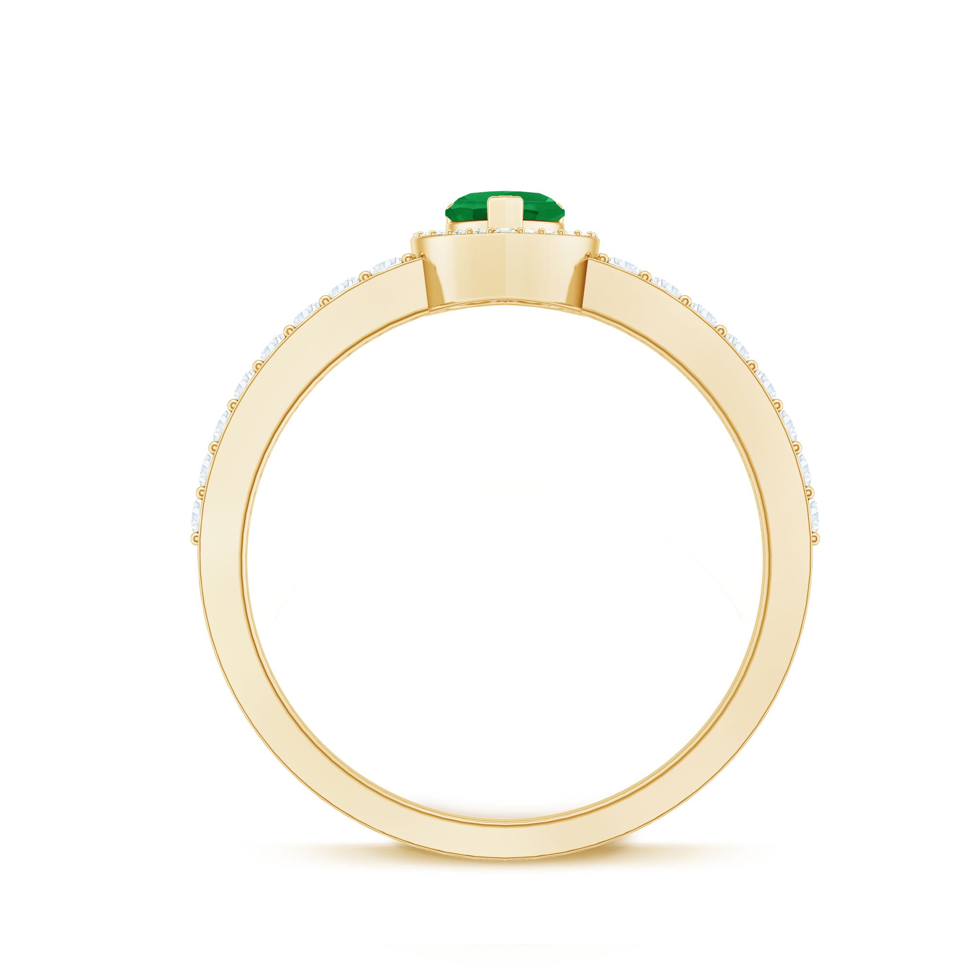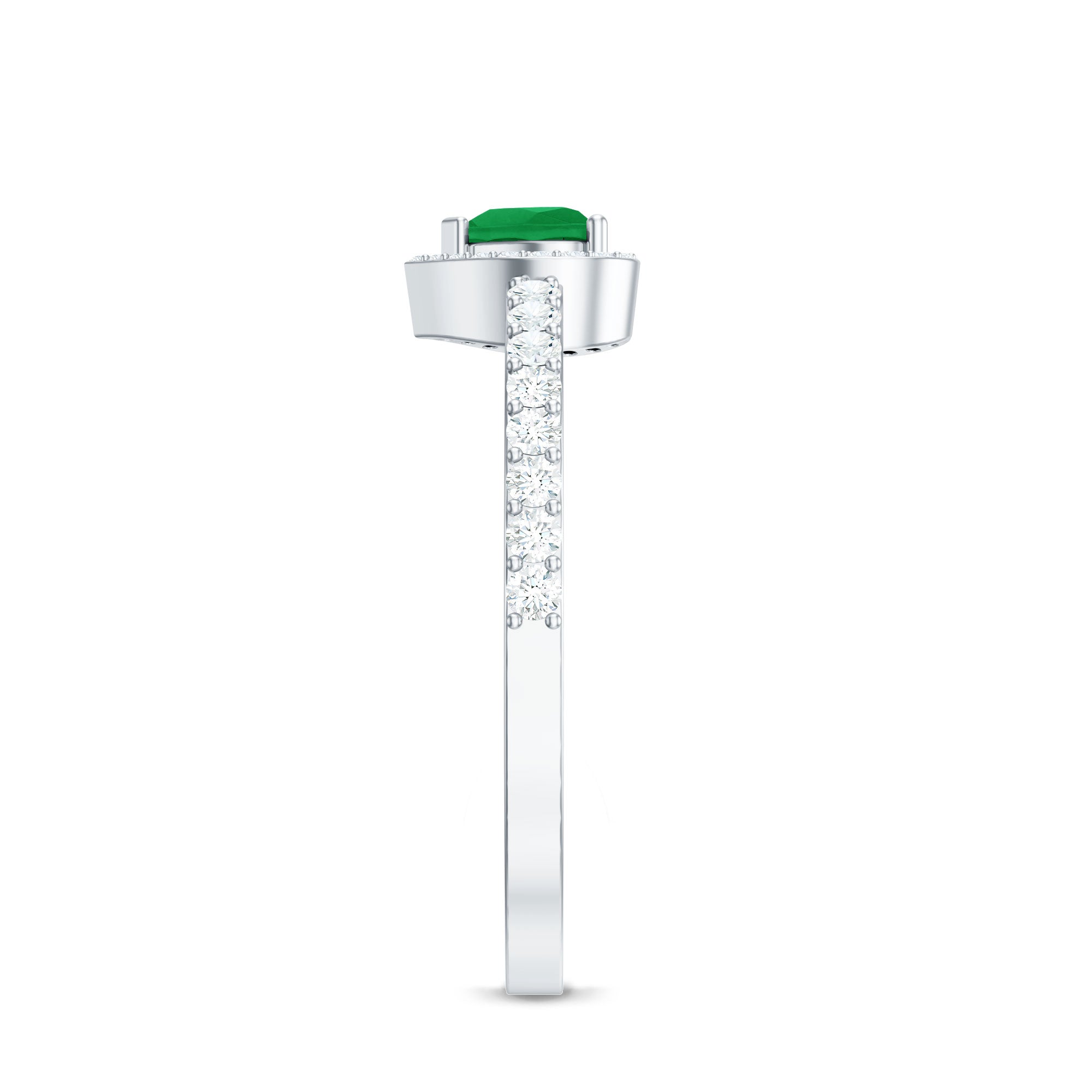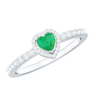 Natural Emerald Heart Promise Engagement Ring with Diamond Halo