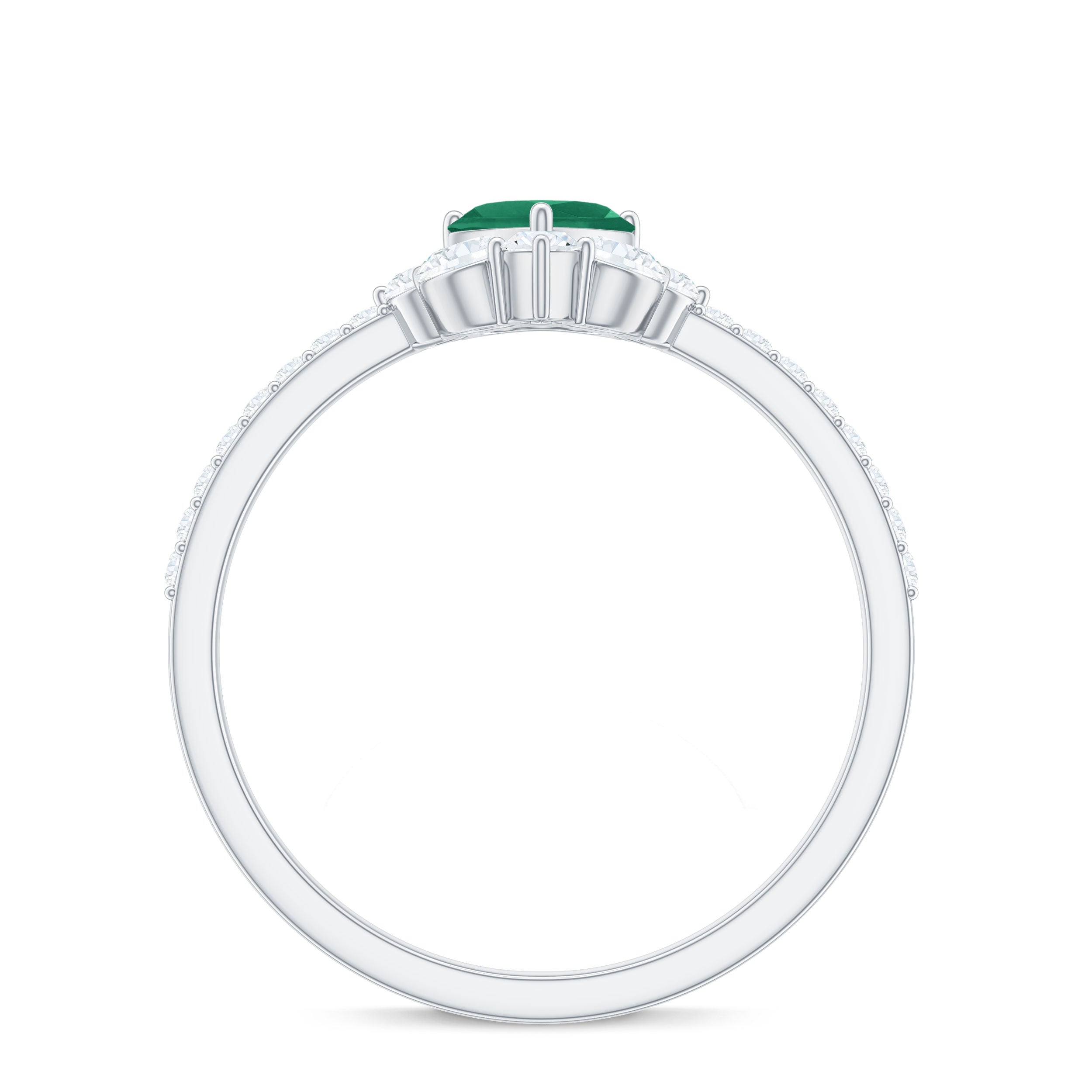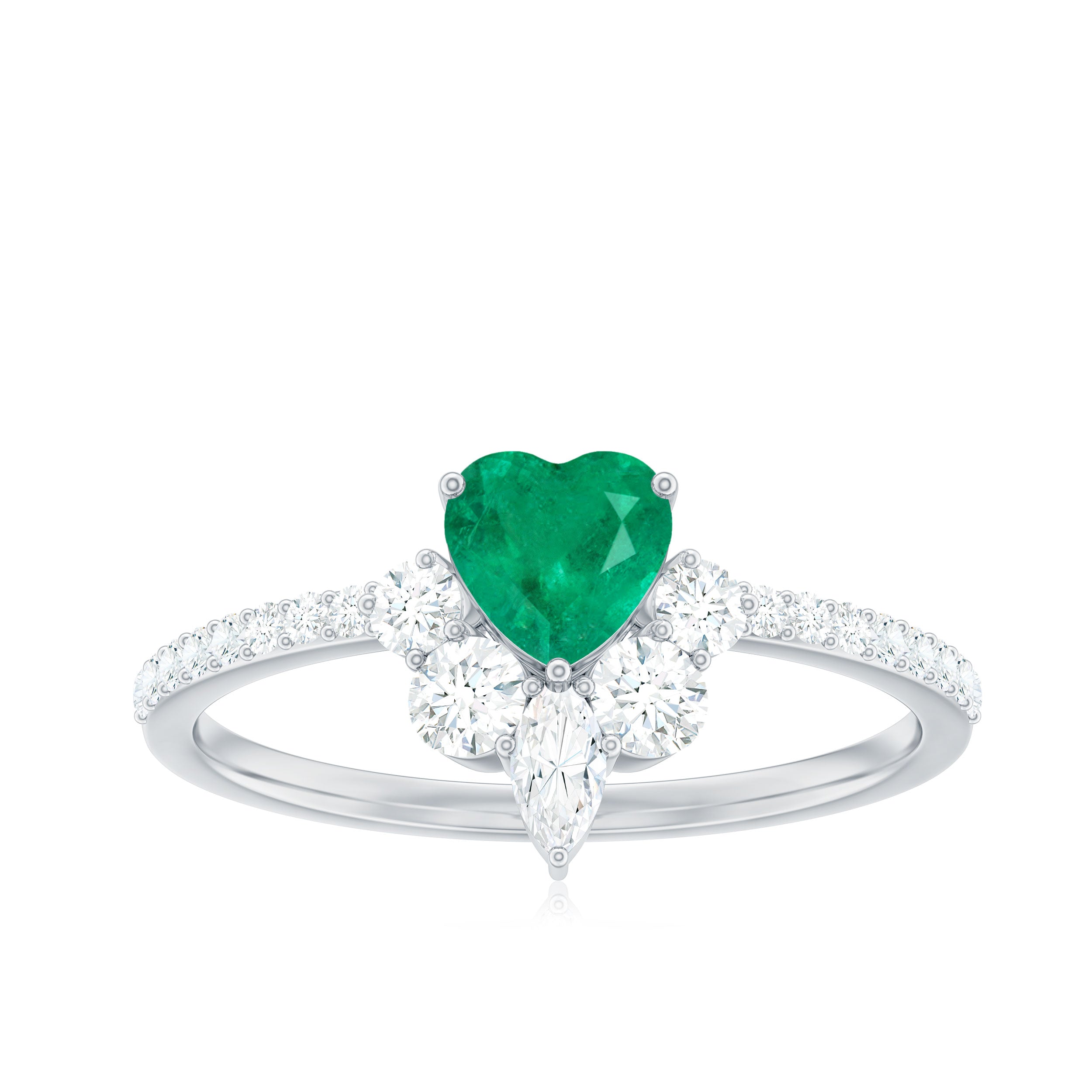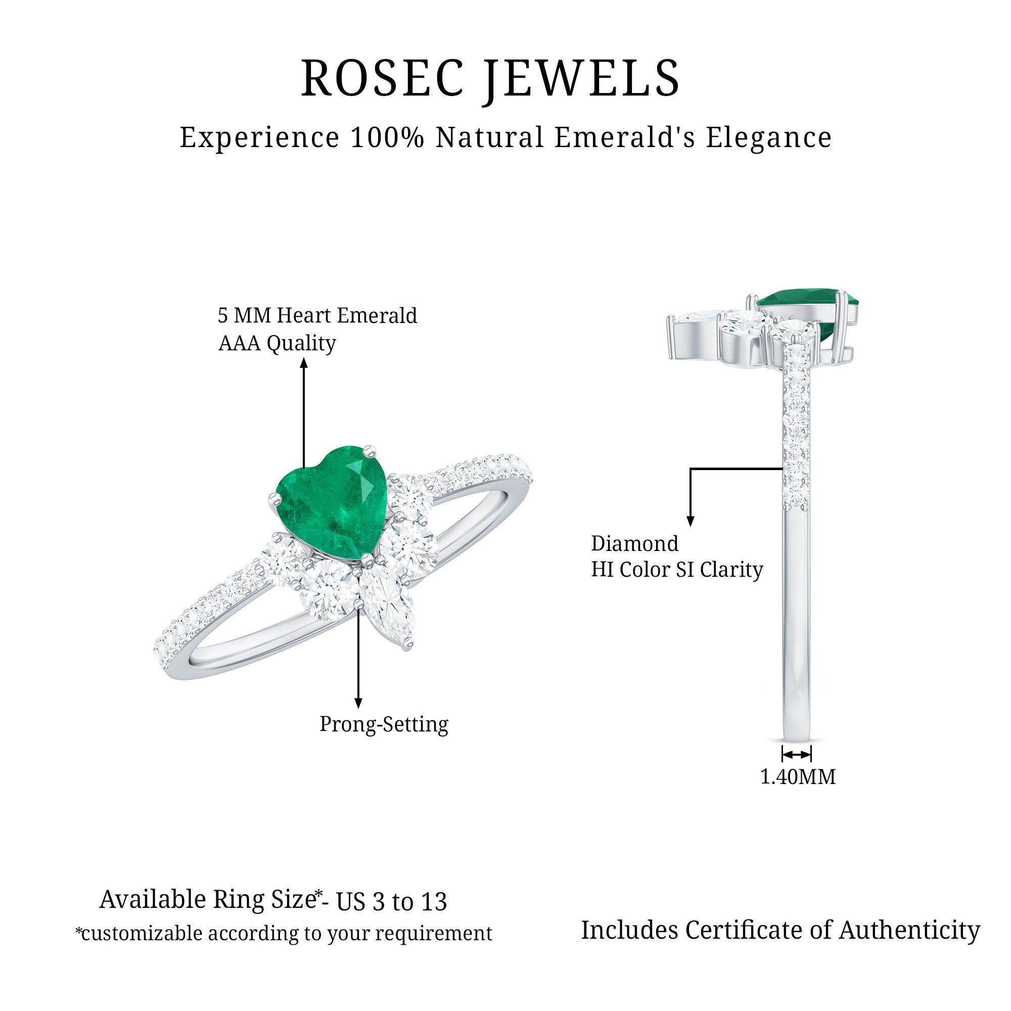 Handcrafted with perfection, this captivating Heart Promise Ring is a stunning symbol of devotion and affection. At the center of this Promise Engagement Ring is a 5 mm Heart Shape Emerald set in Prong Setting, glowing with a vibrant, captivating green that instantly draws the eye. Encircling the AAA Quality Emerald, a delicate Half Halo of Marquise and Round Shape Diamond stones adds a touch of celestial sparkle. The slim band is studded with tiny Diamond stones, giving the ring a shimmer that catches the light with every movement. Designed to embody romance and timeless elegance, this Emerald Heart Ring is ideal for expressing a heartfelt promise, celebrating a meaningful milestone or simply showing someone they hold your heart. Presented in a signature jewelry box and available in a variety of sizes, this Emerald Diamond Ring is a cherished keepsake, a testament to enduring love and intimate connection. This Emerald Proposal Ring transforms every gesture into a sparkling reminder of passion, commitment and the beauty of sharing a piece of your heart forever.
