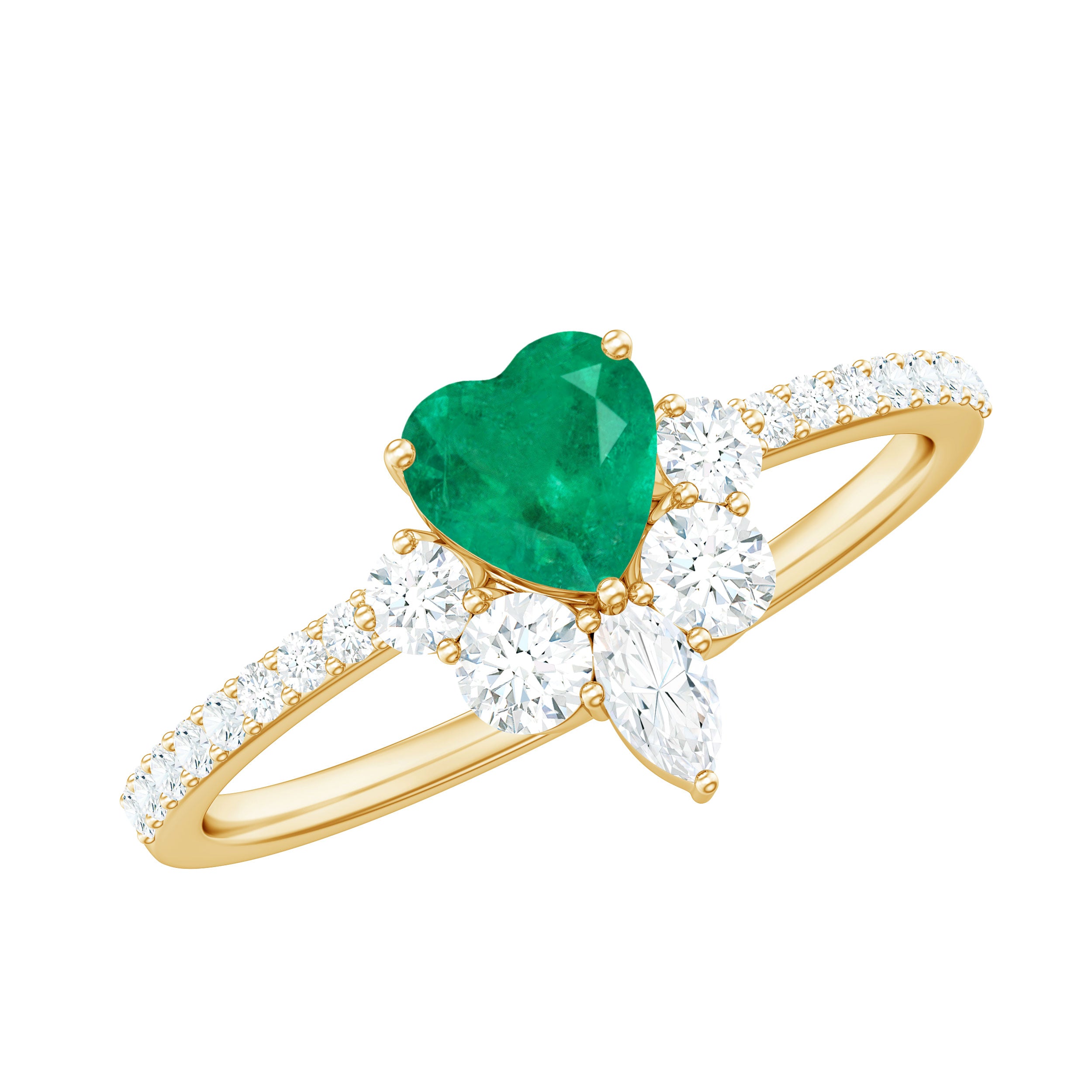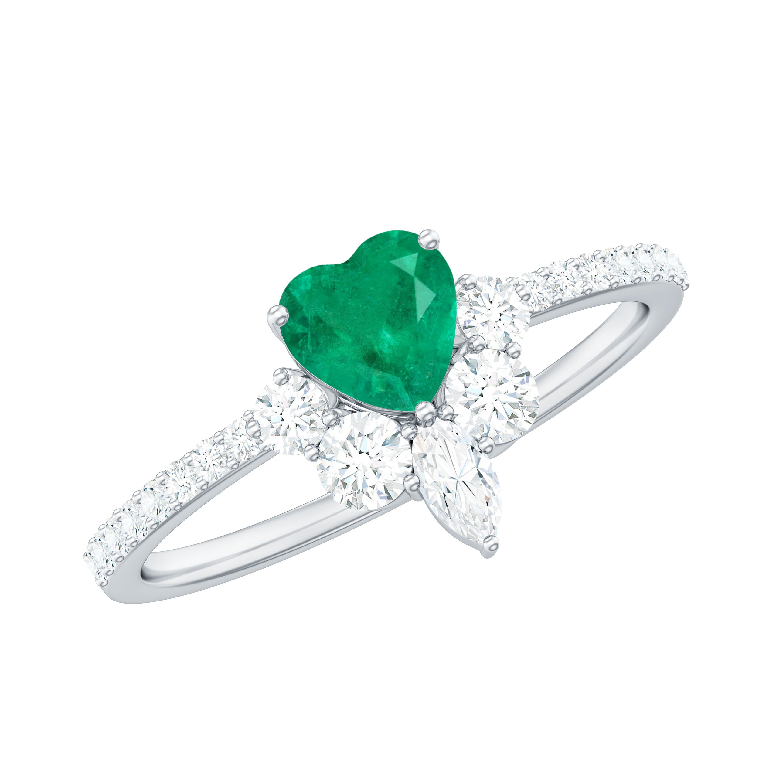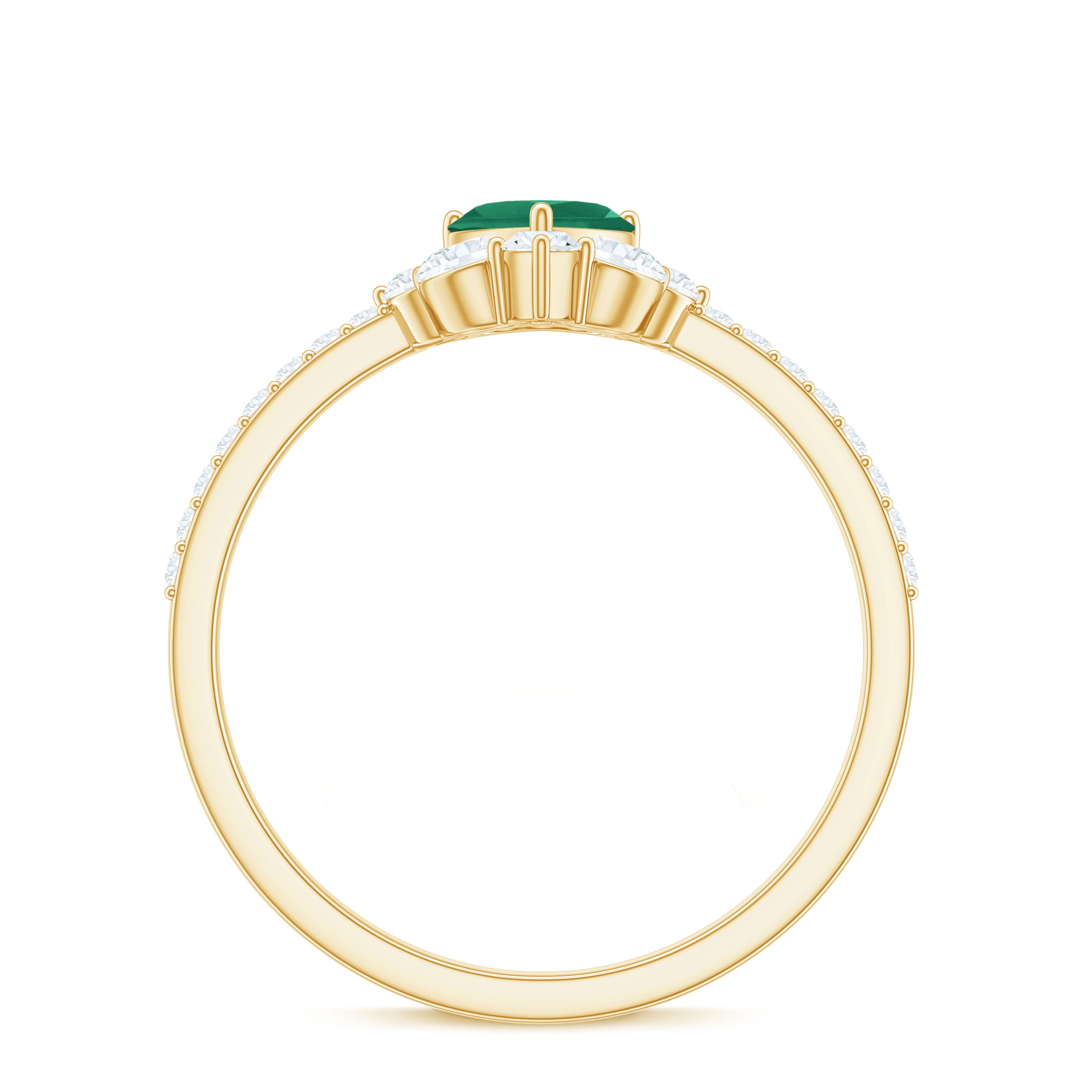 Handcrafted with perfection, this captivating Heart Promise Ring is a stunning symbol of devotion and affection. At the center of this Promise Engagement Ring is a 5 mm Heart Shape Emerald set in Prong Setting, glowing with a vibrant, captivating green that instantly draws the eye. Encircling the AAA Quality Emerald, a delicate Half Halo of Marquise and Round Shape Diamond stones adds a touch of celestial sparkle. The slim band is studded with tiny Diamond stones, giving the ring a shimmer that catches the light with every movement. Designed to embody romance and timeless elegance, this Emerald Heart Ring is ideal for expressing a heartfelt promise, celebrating a meaningful milestone or simply showing someone they hold your heart. Presented in a signature jewelry box and available in a variety of sizes, this Emerald Diamond Ring is a cherished keepsake, a testament to enduring love and intimate connection. This Emerald Proposal Ring transforms every gesture into a sparkling reminder of passion, commitment and the beauty of sharing a piece of your heart forever.