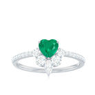 Natural Emerald Heart Promise Ring with Diamond
