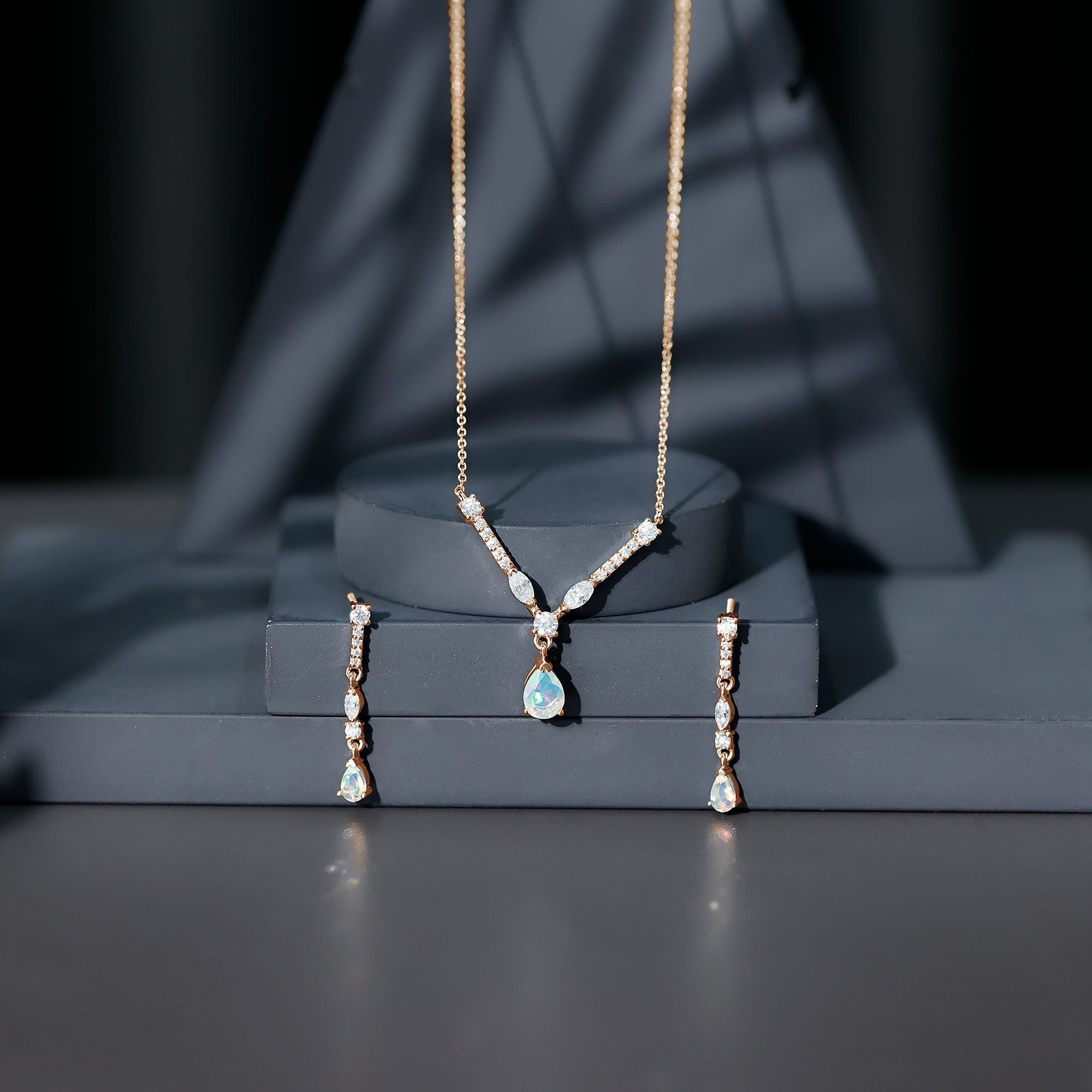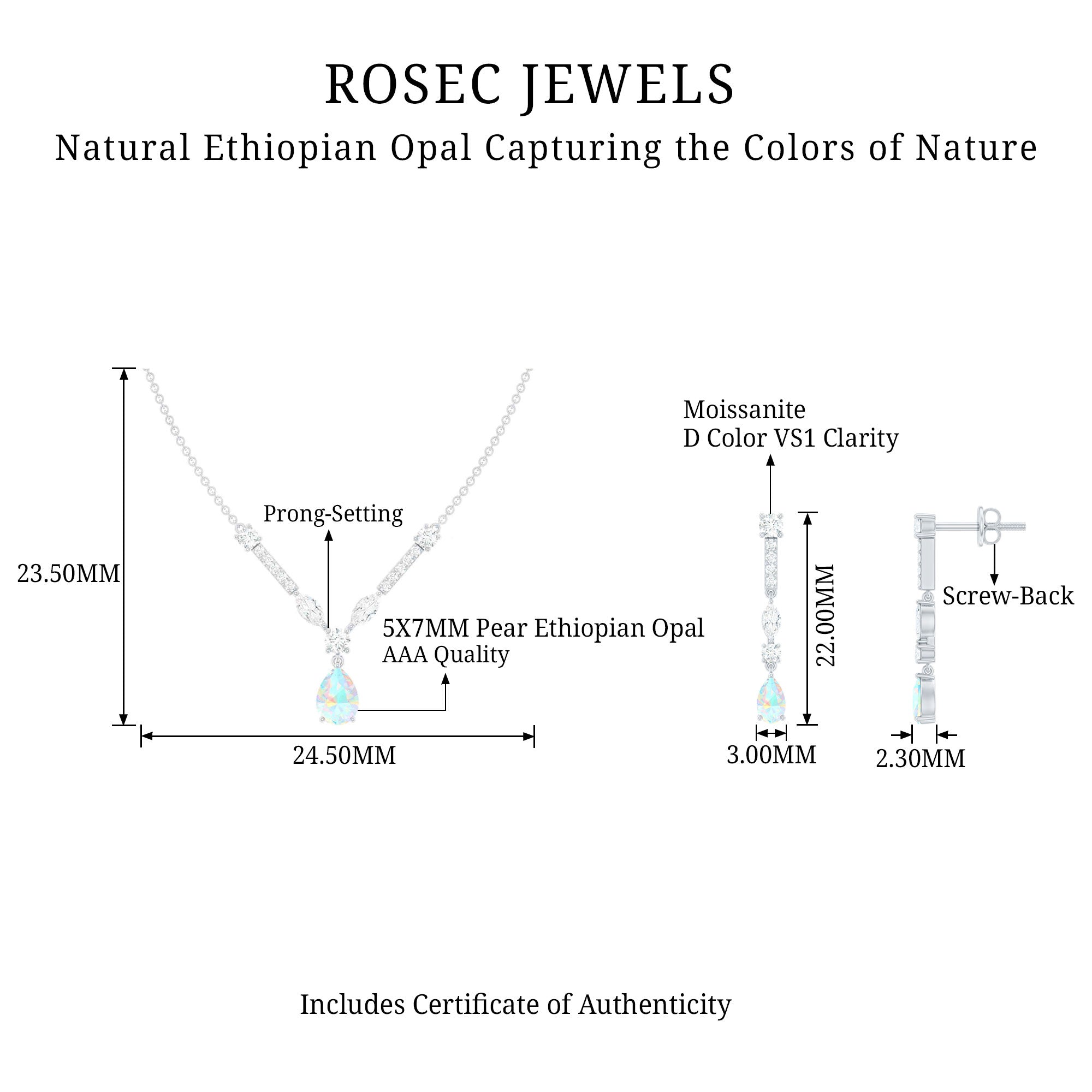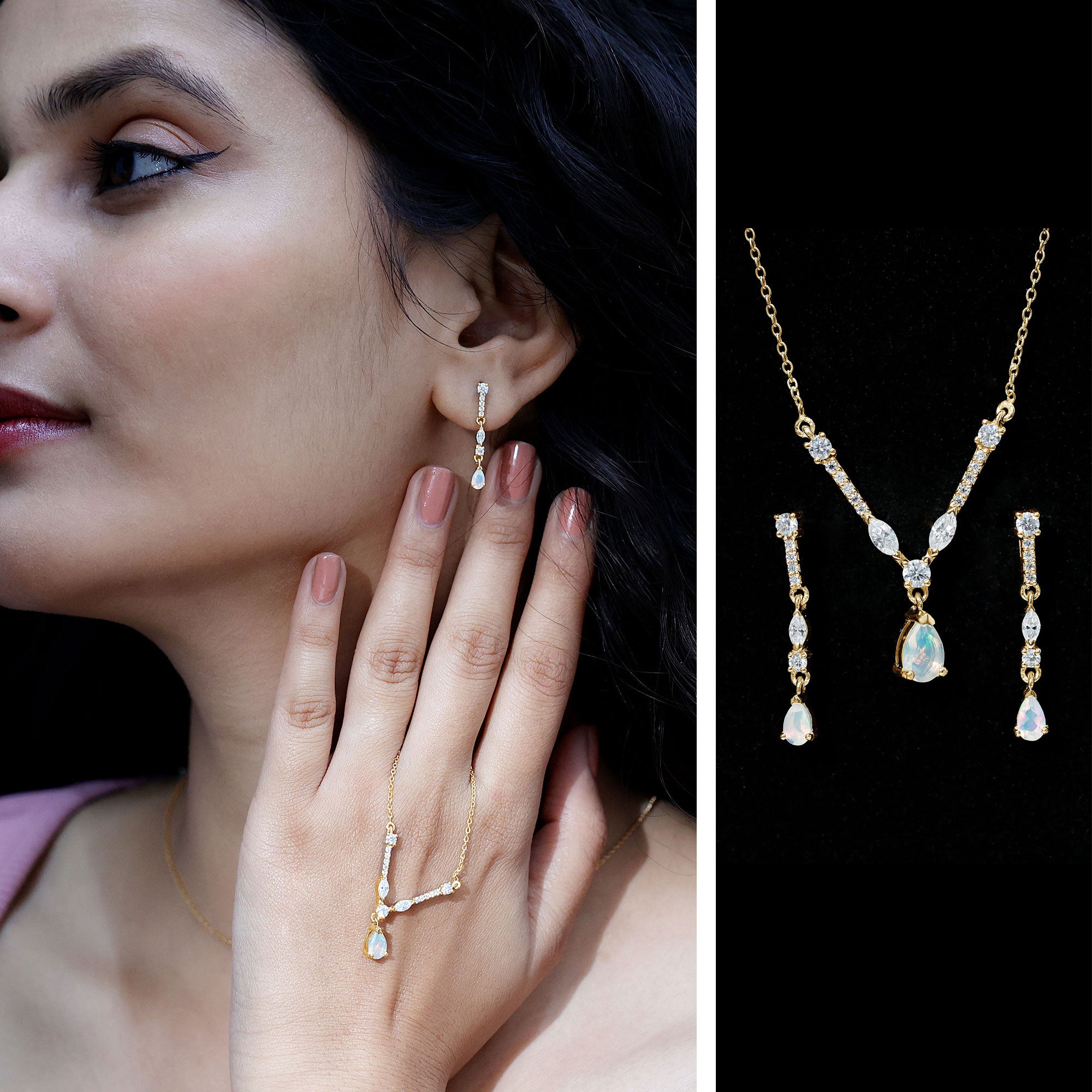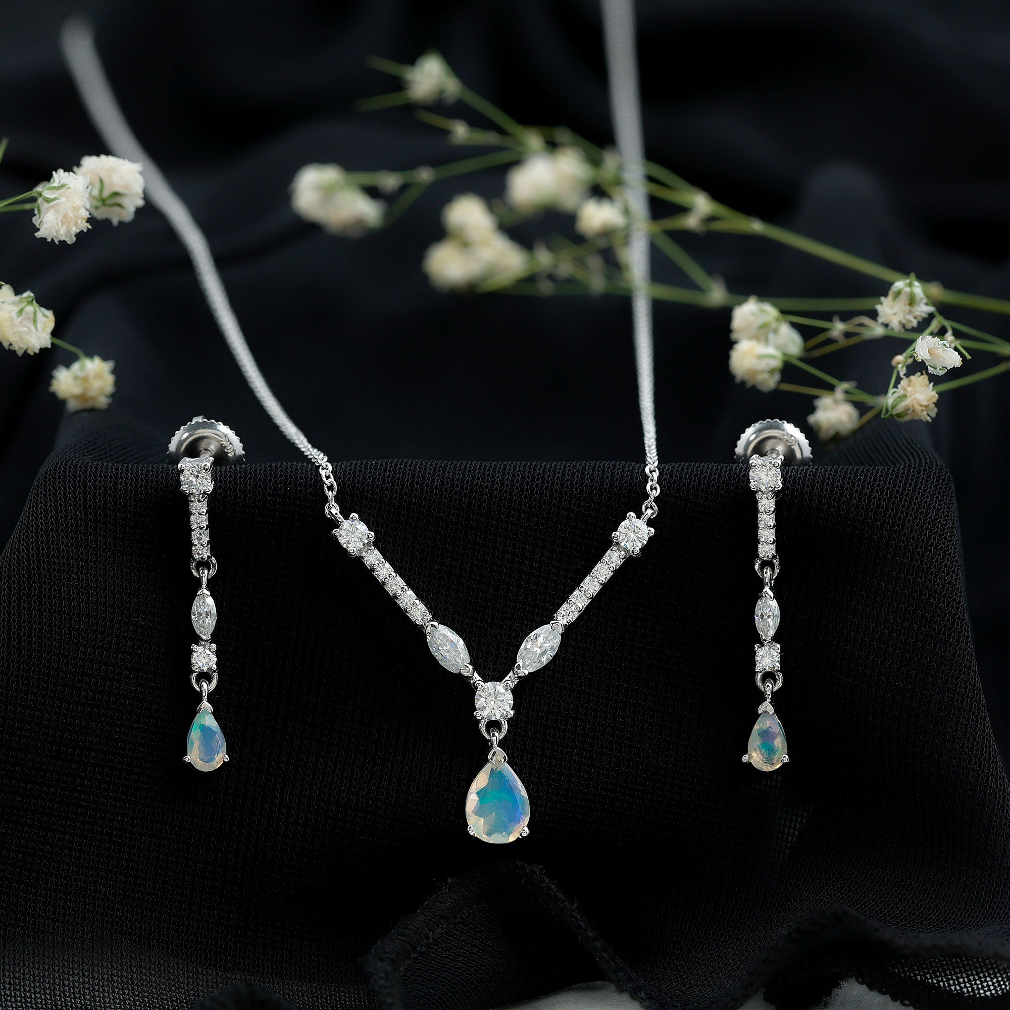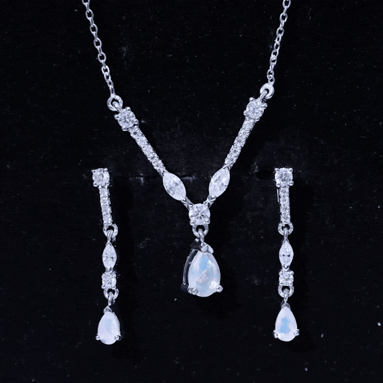 Natural Ethiopian Opal and Moissanite Teardrop Jewelry Set