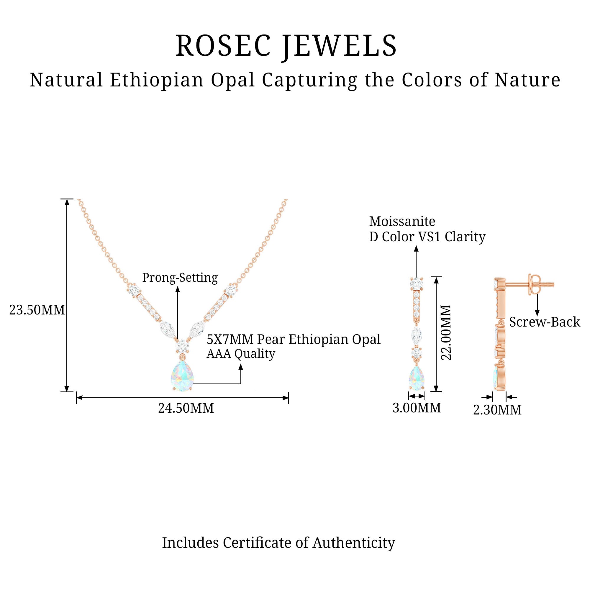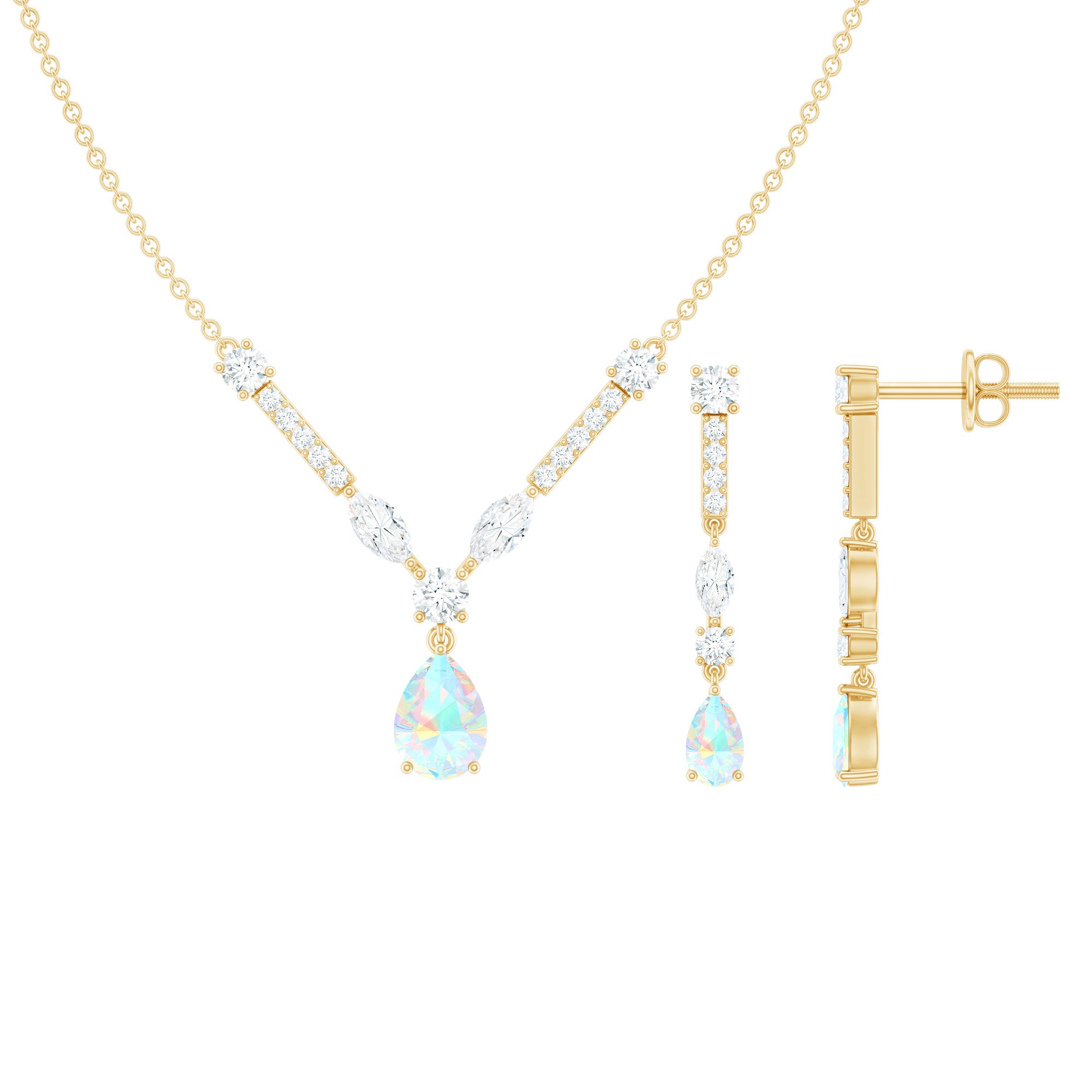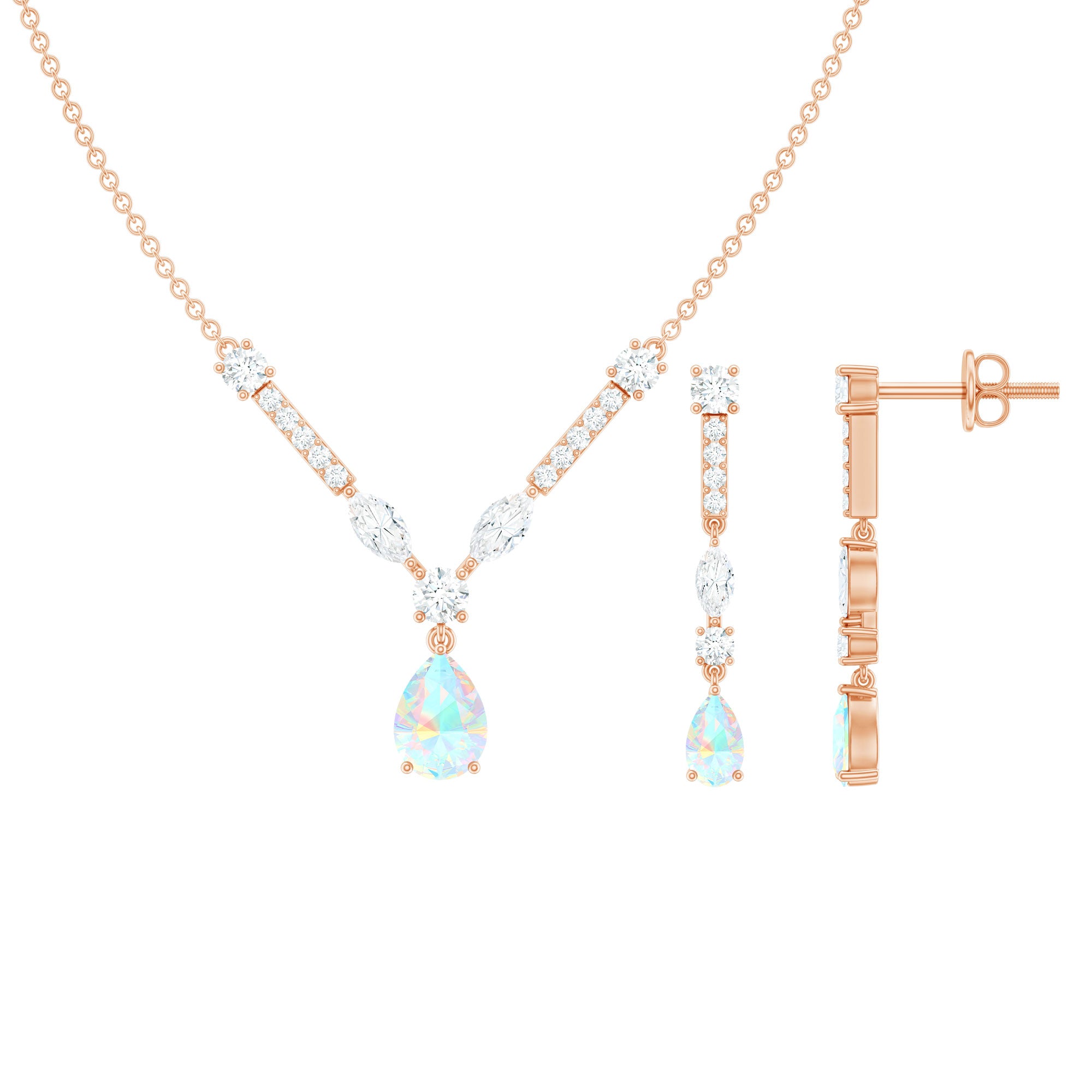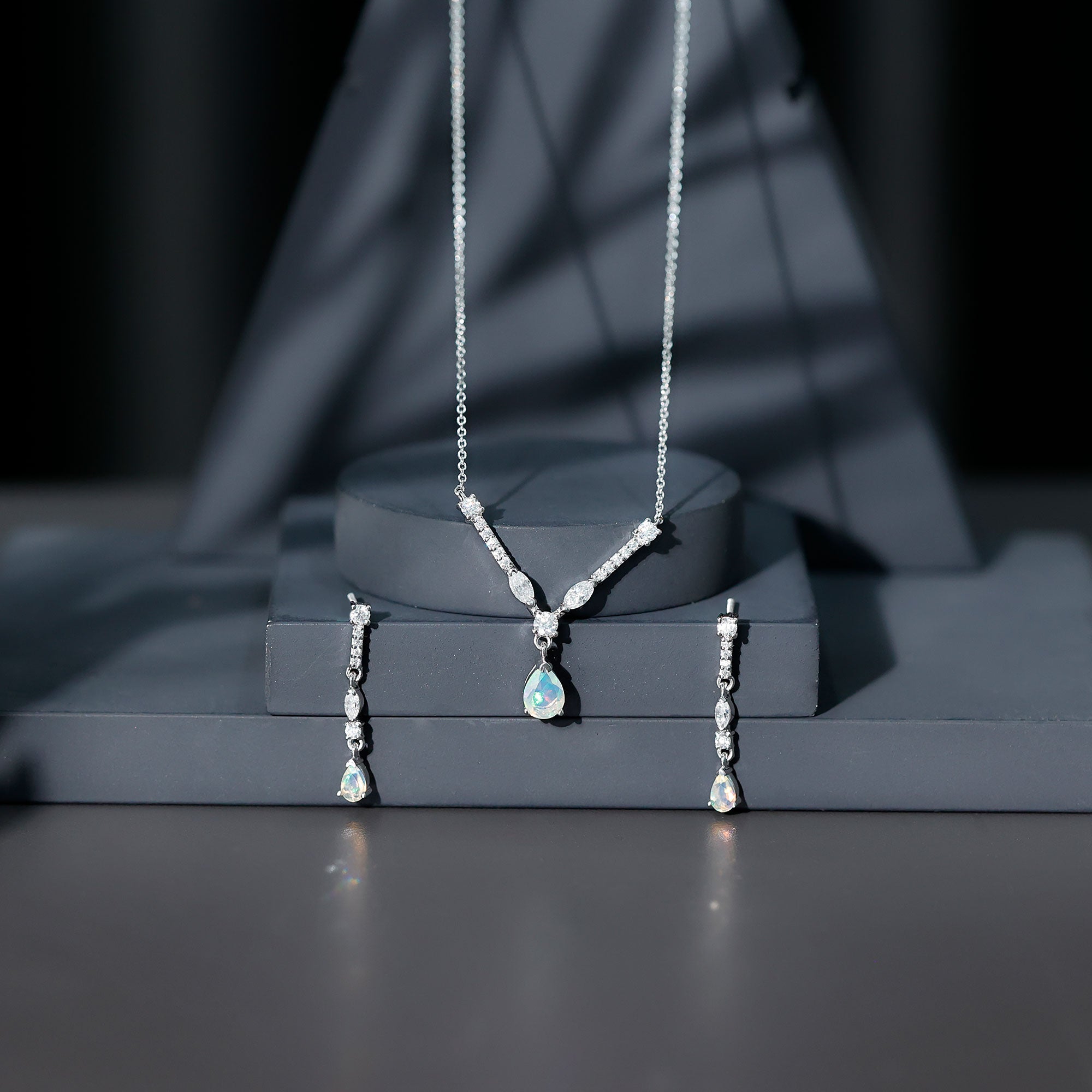 Natural Ethiopian Opal and Moissanite Teardrop Jewelry Set