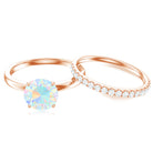 Celebrate your forever with a burst of color and sparkle of this Wedding Bridal Ring Set. This enchanting Solitaire Wedding Ring Set is designed to commemorate love in its most luminous form. The Engagement Ring showcases a glowing 8 mm Round Shape Ethiopian Opal, radiating with rainbow hues that shift in the light, a gemstone known for symbolizing hope, passion and harmony. Paired perfectly with a Diamond Wedding Band, this Opal Engagement Ring Set creates a captivating contrast between the mystical fire of opal and the classic brilliance of diamond stones. Complementing each other, this Opal Engagement Ring with Enhancer reflects the beauty of two souls coming together as one. Whether you are planning the perfect proposal or searching for a meaningful bridal set, this Engagement Ring and Wedding Band Set delivers elegance with a twist of the unexpected. This Opal Wedding Ring Set is a wearable promise of love that shines bright, stands out and lasts forever.