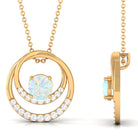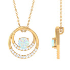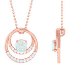 Natural Ethiopian Opal Double Circle Pendant Necklace with Diamond