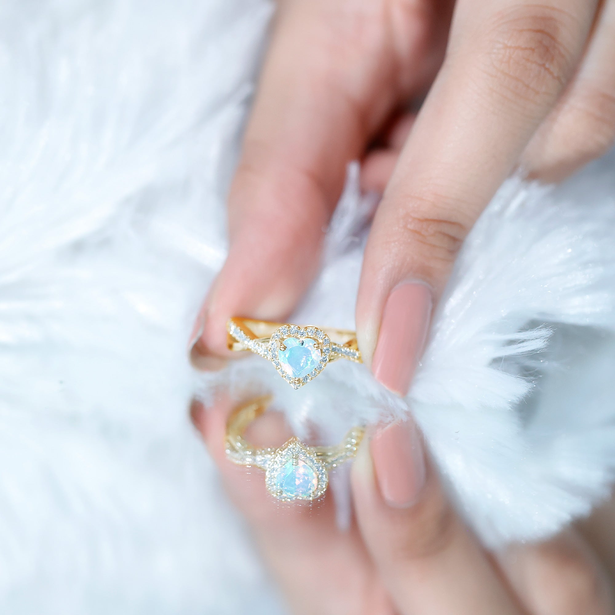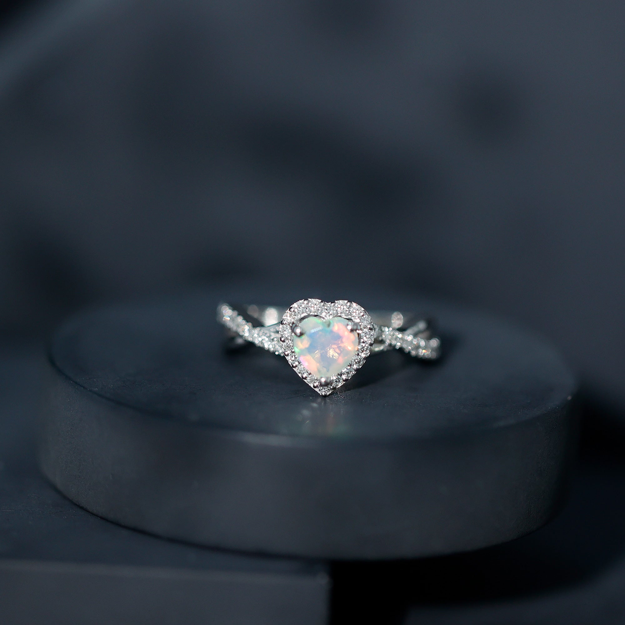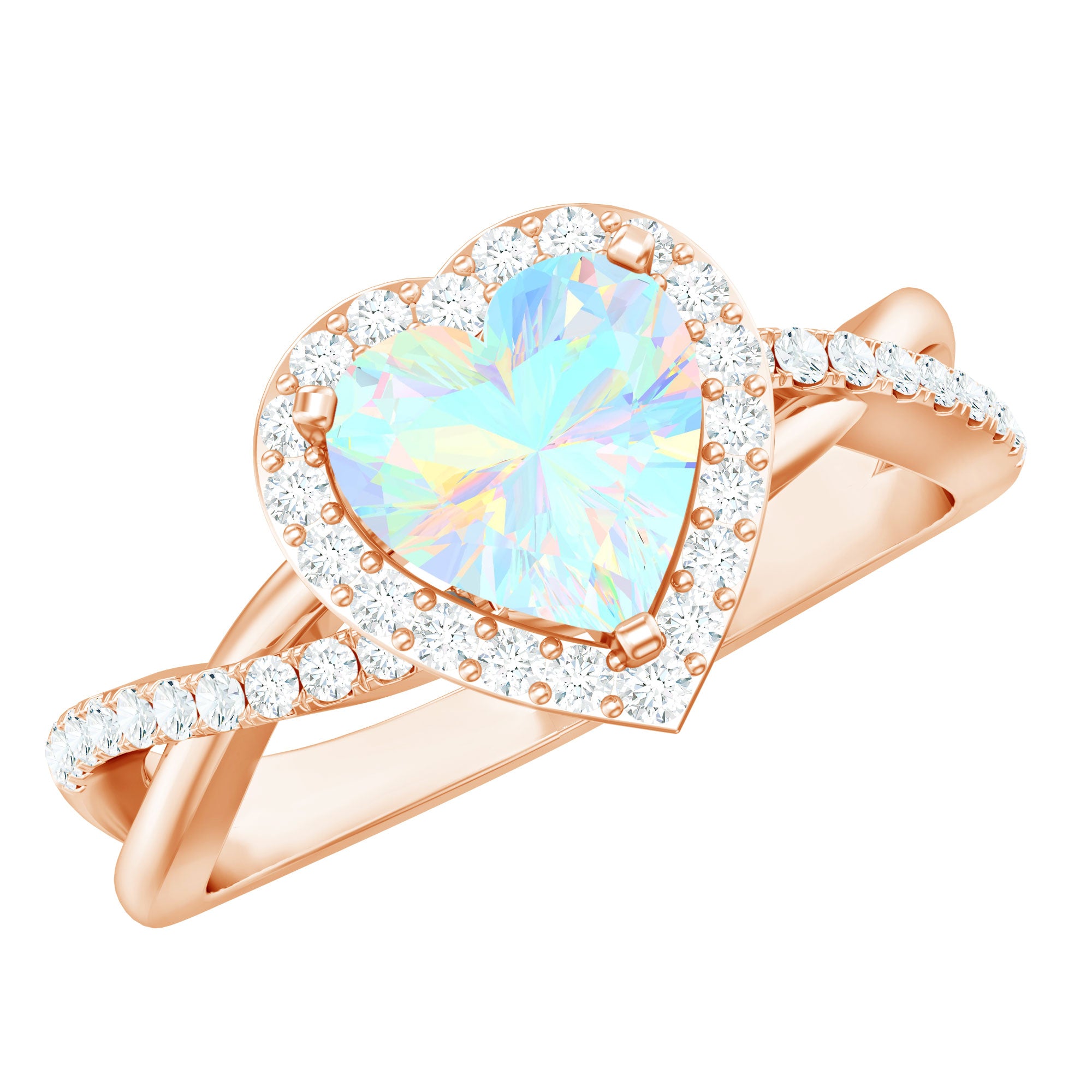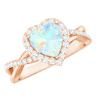 Natural Ethiopian Opal Heart Engagement Ring with Diamond Crossover Shank