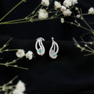 These lovely Silver Leaf Earrings are all about style, sparkle, colors, and a touch of nature. Handcrafted in 14k white gold plated silver, they feature a smooth flowing design inspired by natures beauty. Right at the center sits a stunning 3X5 MM pear shaped Ethiopian Opal that shines with its rainbow colors and is set in prong setting. Around it, sparkling round cut moissanite stones add that extra shine, making the Opal Stud Earrings look elegant. No need to worry about them slipping off - these Rainbow Gem Earrings come with screw back closure that keeps them safe and secure all day. Whether you are dressing up for a party or adding a sparkle to your daily look, these studs are the perfect pick. They are pretty, classy, and unique, just like you.