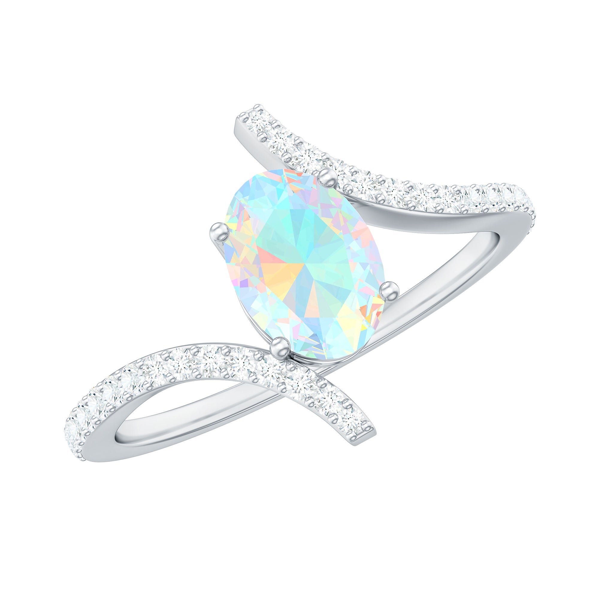 Natural Ethiopian Opal Oval Engagement Ring with Diamond Bypass Shank