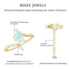 This Oval Engagement Ring is an enchanting declaration of love, designed to capture the essence of your deepest connection. The 5X7 mm Oval Shape Ethiopian Opal set in Prong Setting is the centerpiece. Surrounding it, the Diamond Bypass Shank gently wraps around the finger, creating a intertwining design that symbolizes the unity and eternal journey you will share. The Bypass Style reflects two hearts converging as one. Available in a variety of sizes and elegantly presented in a signature jewelry box, this Opal and Diamond Engagement Ring is a testament to a love that is as timeless as the stone it is set in. Whether you are preparing to say yes or already celebrating your forever, this breathtaking Bypass Engagement Ring with Opal is a reminder that love is as radiant and unique as the opal itself. Forever and always, this Ethiopian Opal Engagement Ring is the promise of your unbreakable bond.
