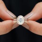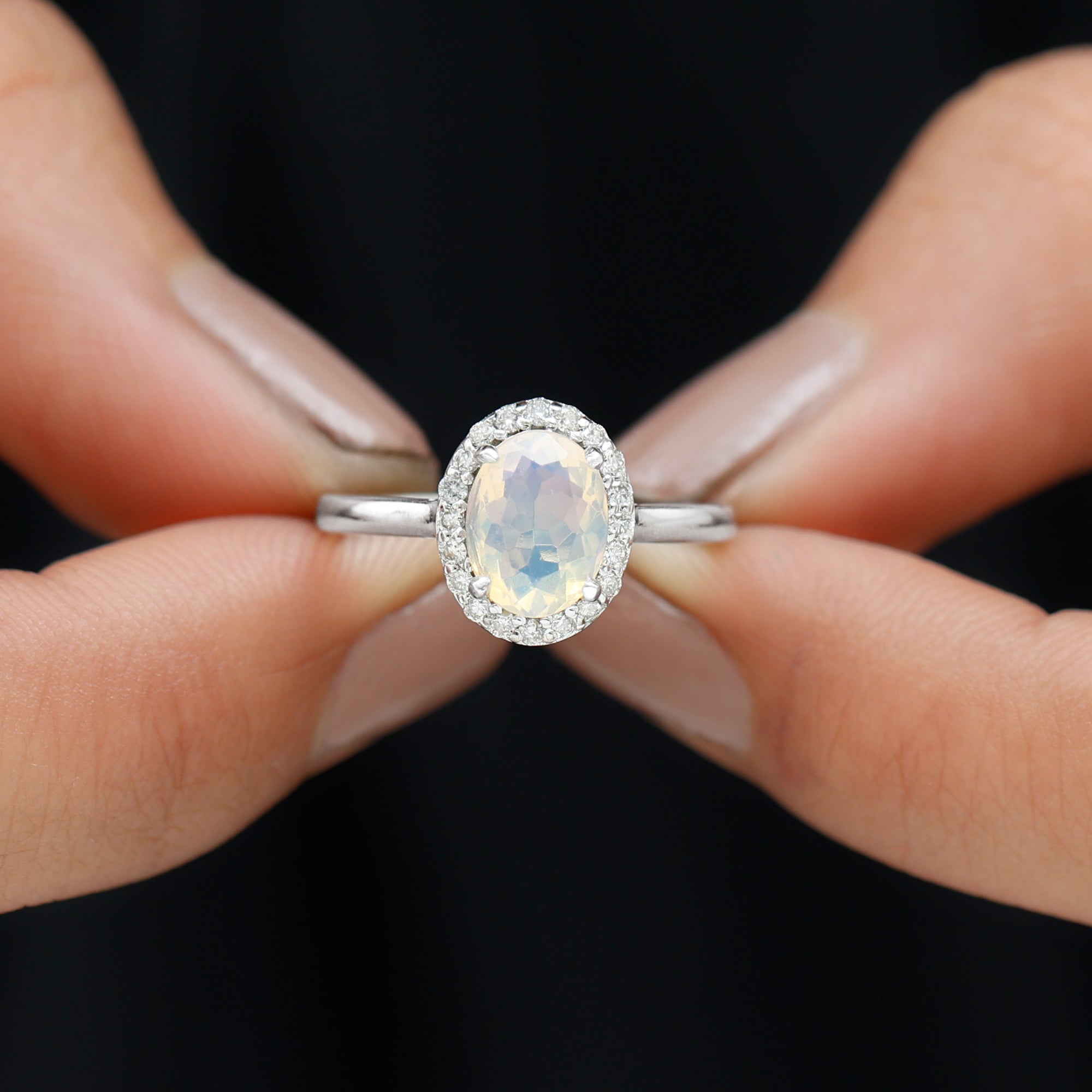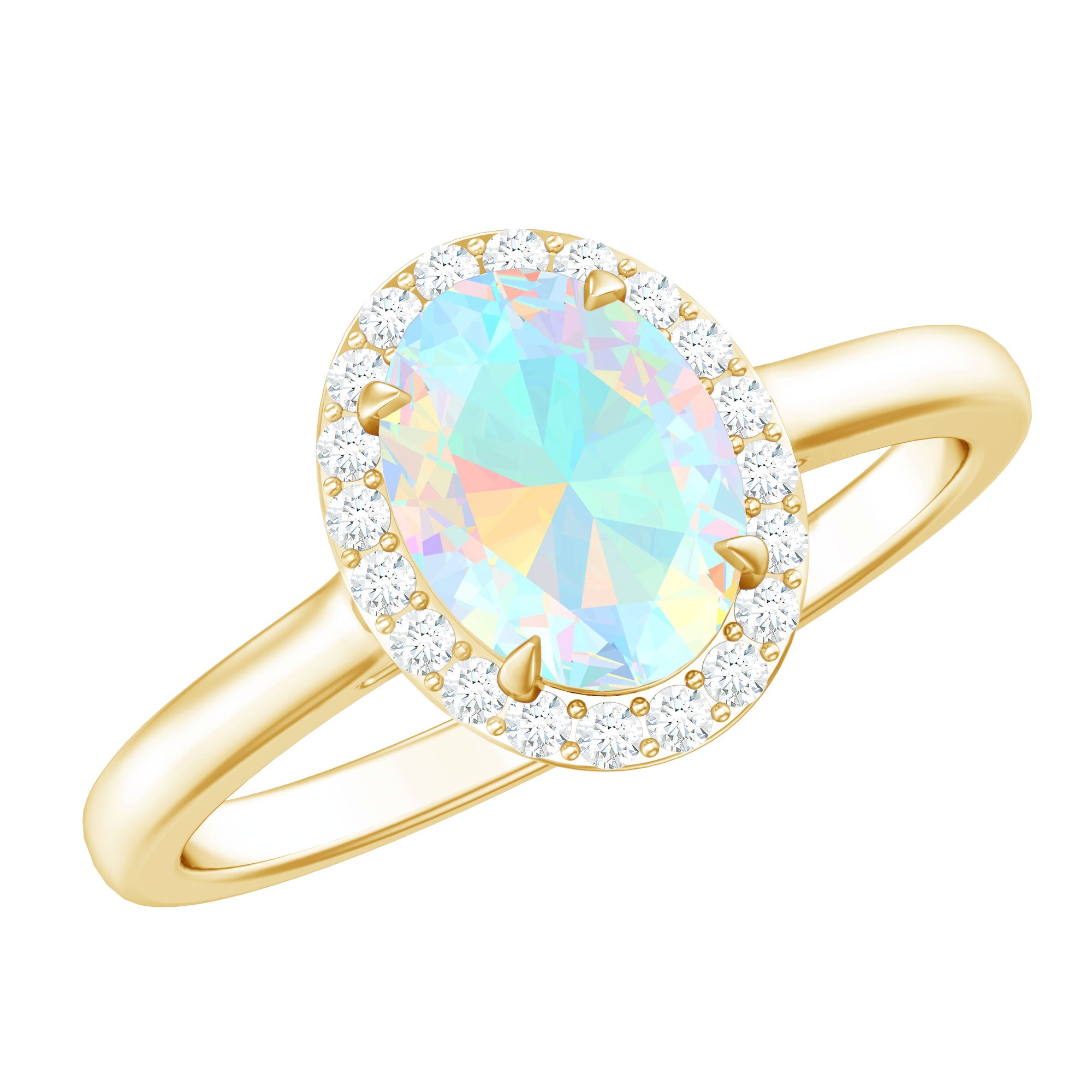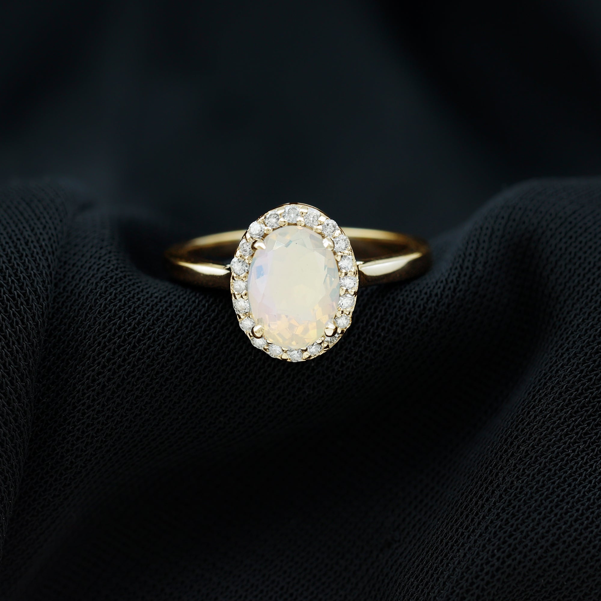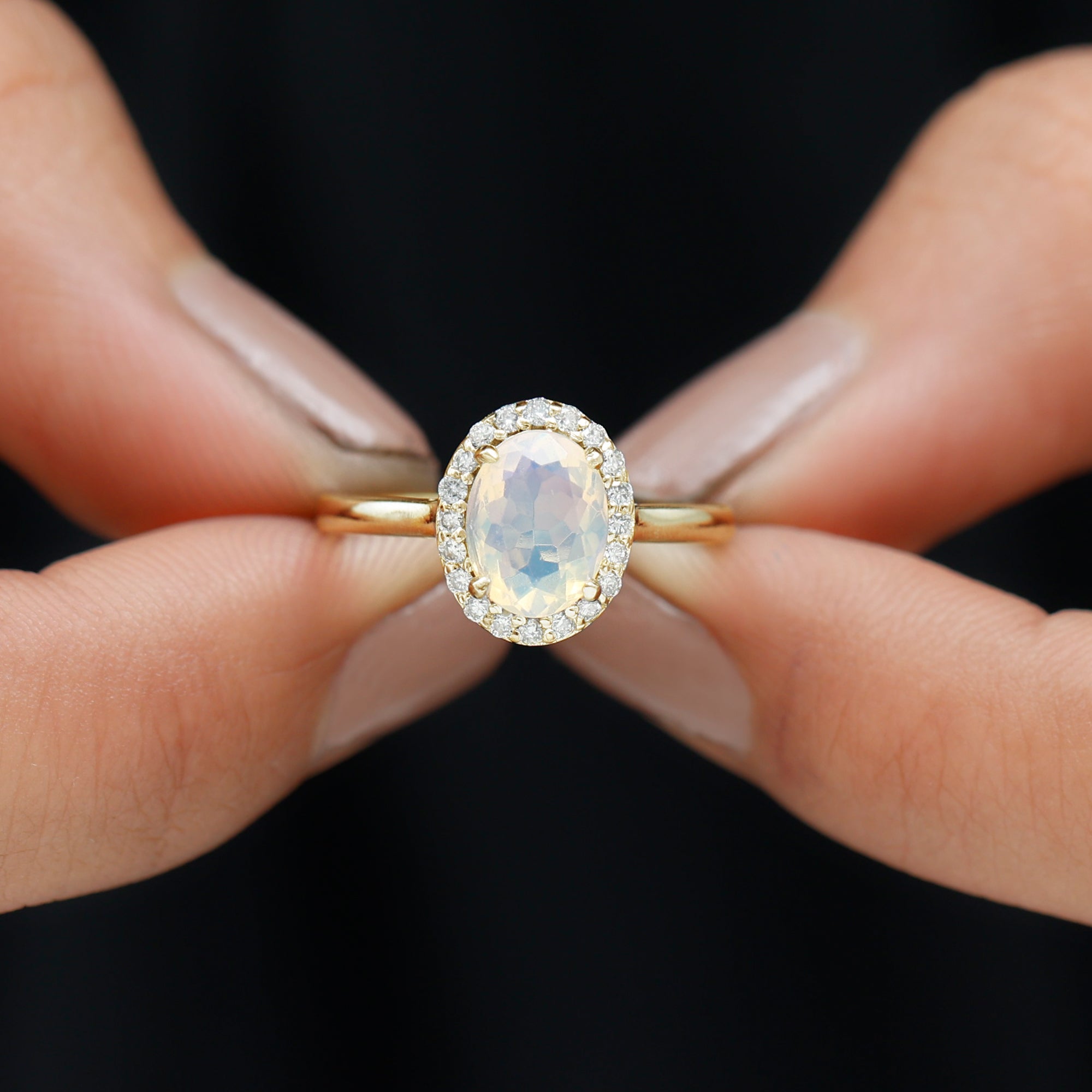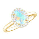 Turn every moment into magic with this Oval Engagement Ring, a radiant blend of elegance and edge. At its center glows a dreamy 6X8 mm Oval Shape Ethiopian Opal set in Claw Setting, known for its rainbow hues. This Opal Engagement Ring is like capturing a piece that fills life with colors. Surrounded by a shimmering Halo of Diamond stones, the Oval Shape enhances the natural brilliance of the Opal, creating a ring that feels mesmerizing. This Opal Diamond Engagement Ring is for the one who loves romance with a twist. Set in your choice of precious metal and available in a range of sizes, this Halo Engagement Ring with Opal is designed for a perfect fit from day one. Packaged in a signature jewelry box, this Ethiopian Opal Ring is proposal-ready and waiting to tell your forever story. Ethereal, unique and full of soul, this Opal Ring for Women is a reflection of your one-in-a-million kind of love.