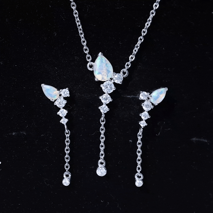 Natural Ethiopian Opal Teardrop Jewelry Set with Moissanite