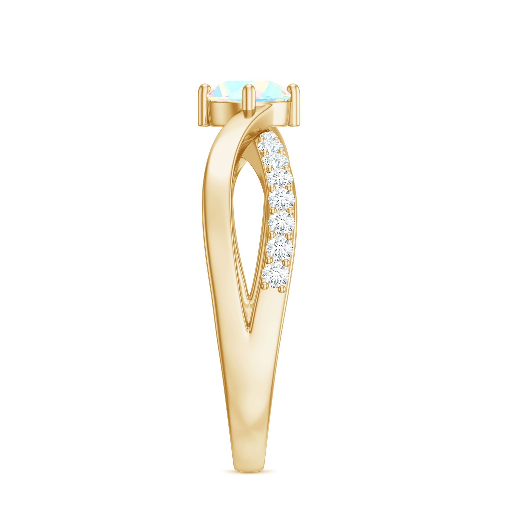 Natural Ethiopian Rainbow Opal Diamond Engagement Ring with Twisted Shank