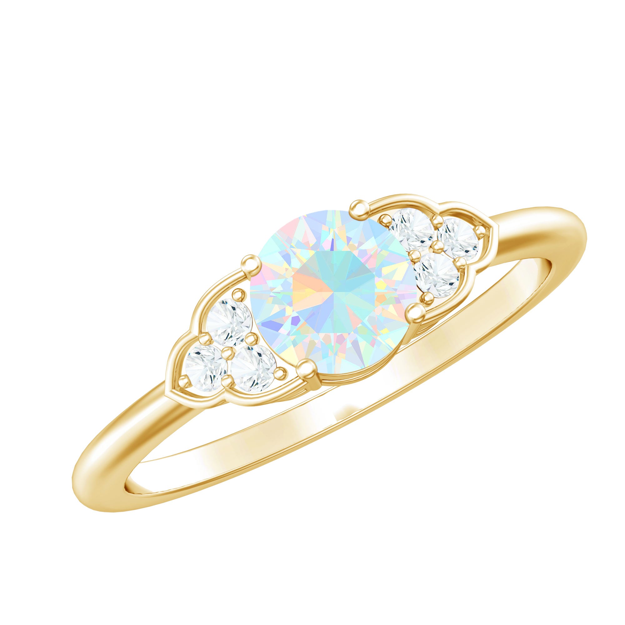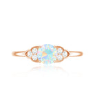 Stunningly crafted, this Rainbow Opal Engagement Ring is a stunning declaration of love, where beauty and elegance meet in perfect harmony. At the center of this breathtaking piece is the 5 mm Round Shape Ethiopian Opal set in Prong Setting. Framing the AAA Quality Opal are three dazzling HI-SI Diamond stones on either side, representing the unique milestones of your relationship. The trio of Diamond stones adds just the right amount of sparkle, enhancing the vibrant allure of Opal. Available in various sizes and presented in a signature jewelry box, this Opal and Diamond Engagement Ring is a promise of forever, of a love that is as radiant and unforgettable as the opal itself. Whether you are proposing or marking a special moment, this Ethiopian Opal Engagement Ring is designed to take her breath away, capturing the magic of your unique bond and the radiant future you are about to create together.