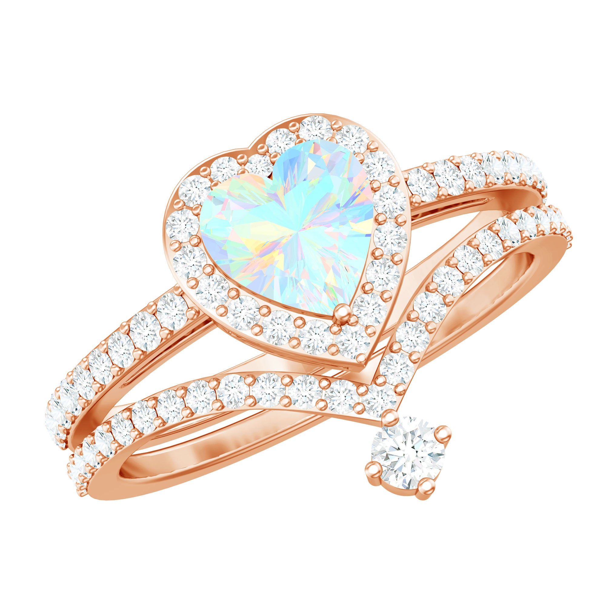 Natural Ethiopian Rainbow Opal Heart Shaped Engagement Ring with Enhancer
