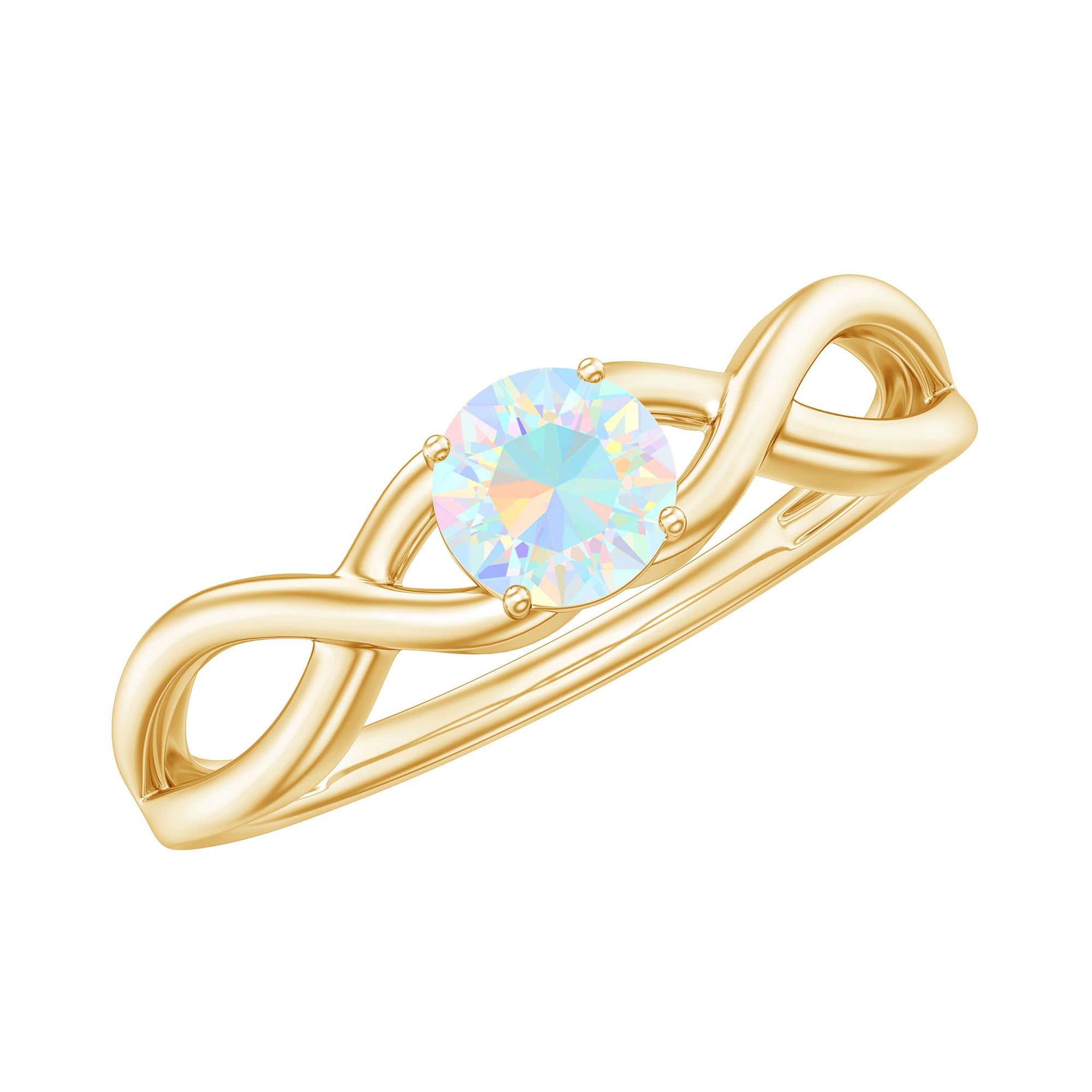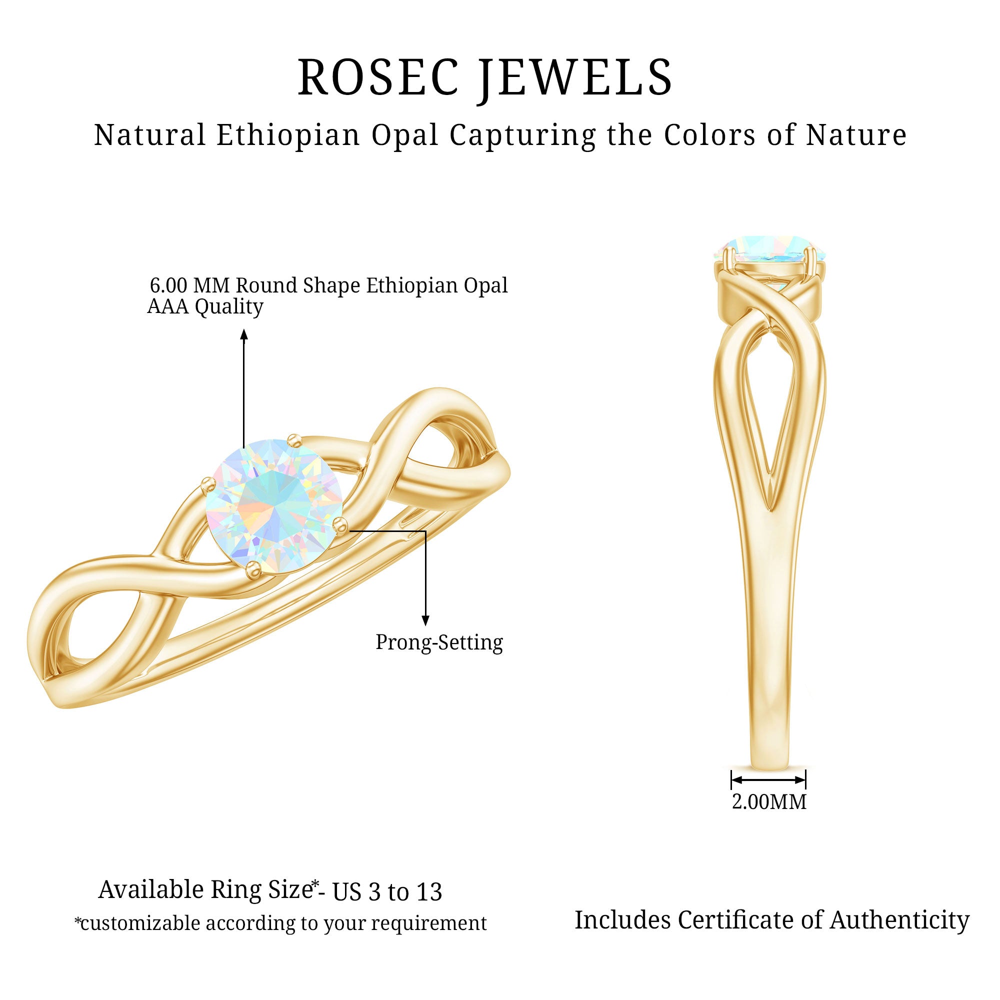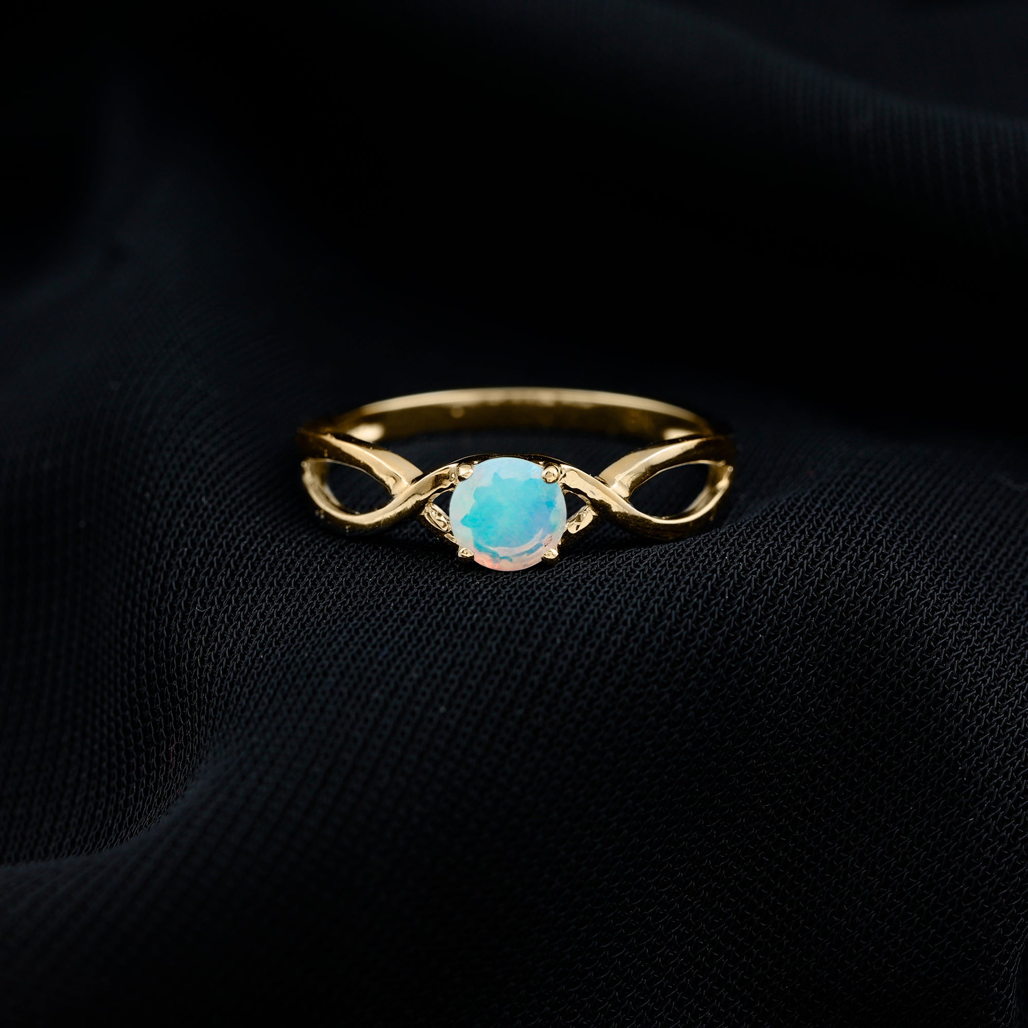 Embrace the beauty of promise and passion with this Opal Promise Ring, where color, elegance and meaning converge. This Fine Ring features a stunning 6 mm Round Shape Ethiopian Opal at the center in Prong Setting, glowing with an ever-changing play of colors, creating a mesmerizing effect that captures attention from every angle. The Opal is set on a Crossover shank that symbolizes two souls intertwining into one, an everlasting bond that only grows stronger with time. This simple yet captivating Proposal Ring is perfect for marking a promise, a commitment or a meaningful milestone. The contemporary appeal of this Crossover Ring is balanced by the rare beauty of opal, making it a symbol of both modern romance and timeless devotion. Carefully crafted and presented in an elegant jewelry box, this Opal Solitaire Ring is available in various sizes for the perfect fit. Whether you are making a promise or simply celebrating love, this Rainbow Opal Ring is a radiant reminder of your eternal connection, destined to be cherished forever.