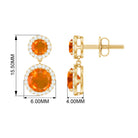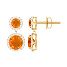 Natural Fire Opal and Diamond Halo Dangle Earrings