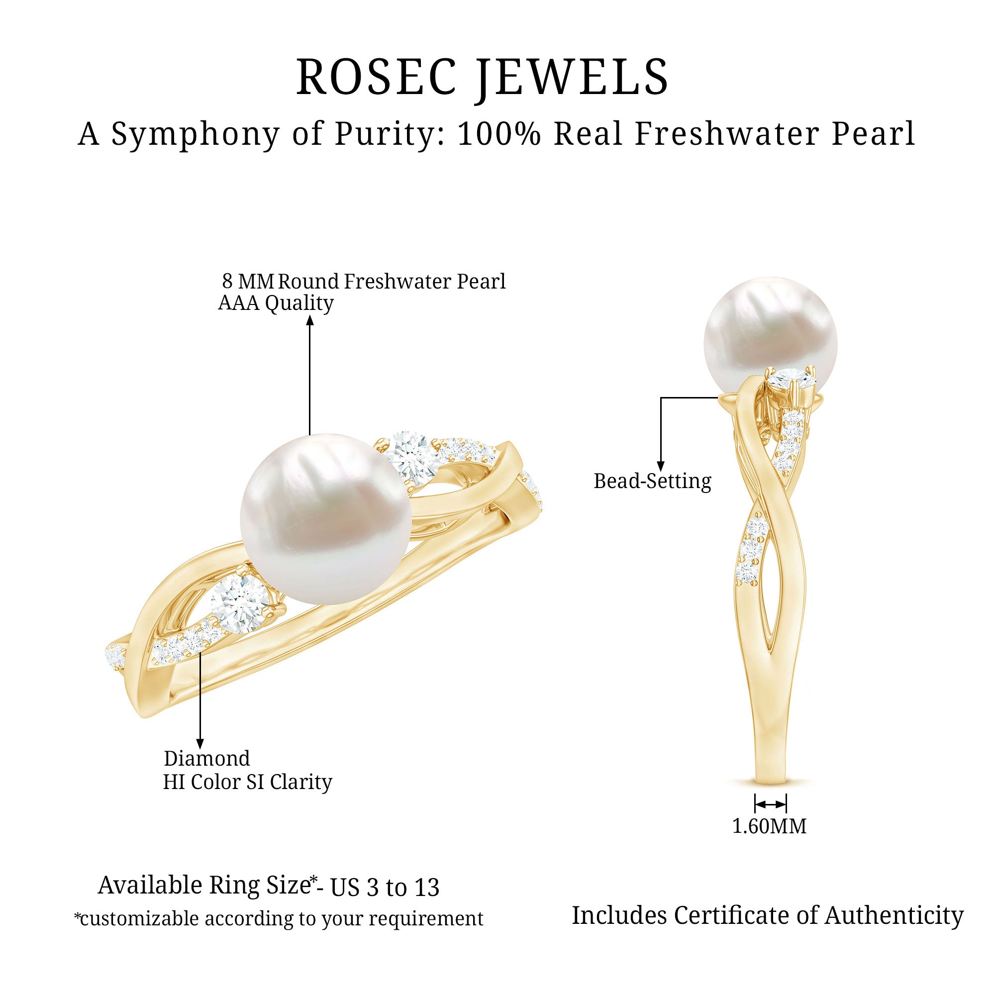 Natural Freshwater Pearl and Diamond Solitaire Crossover Ring