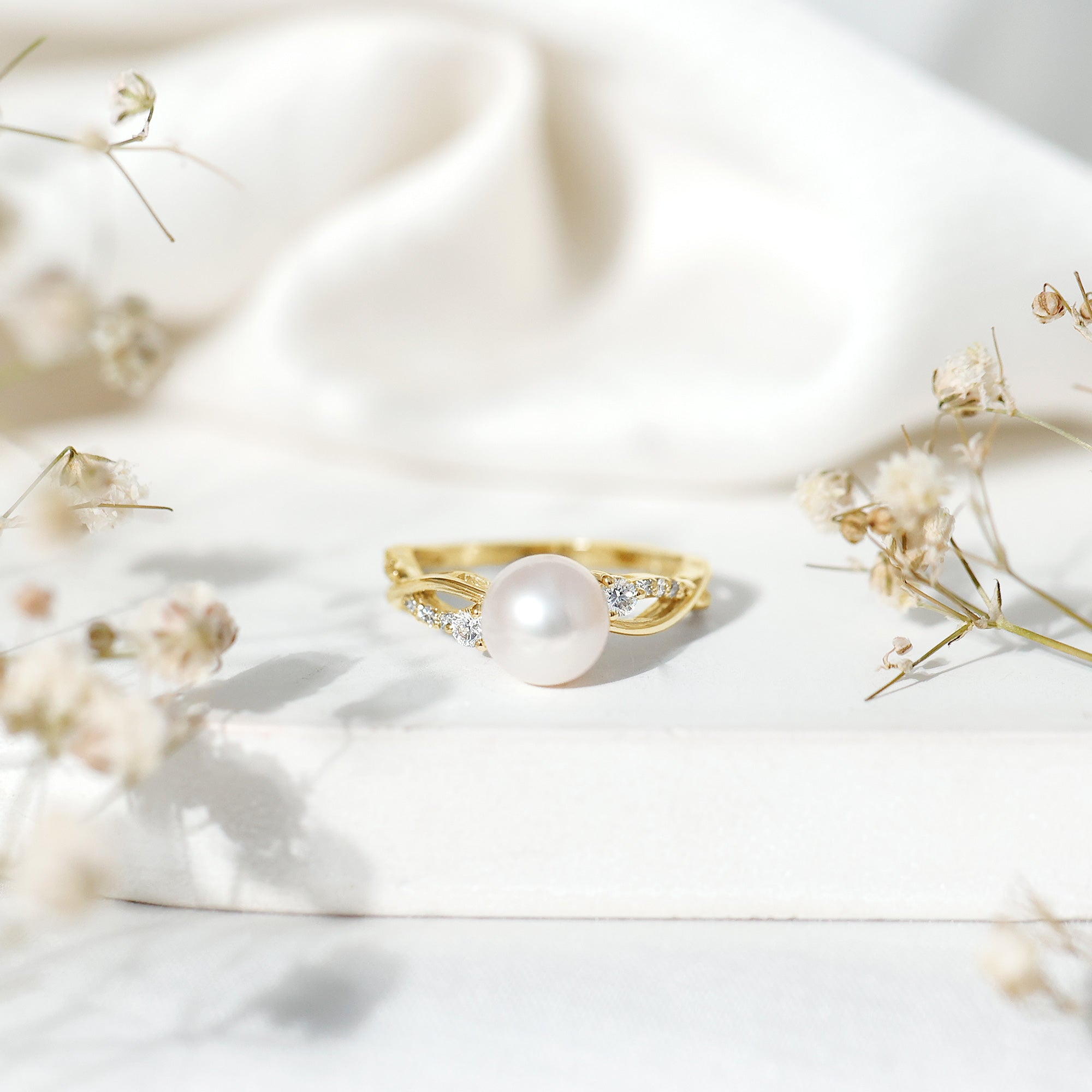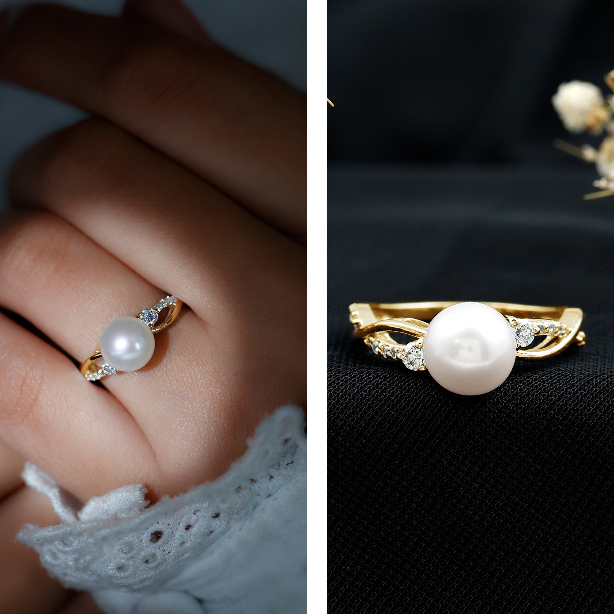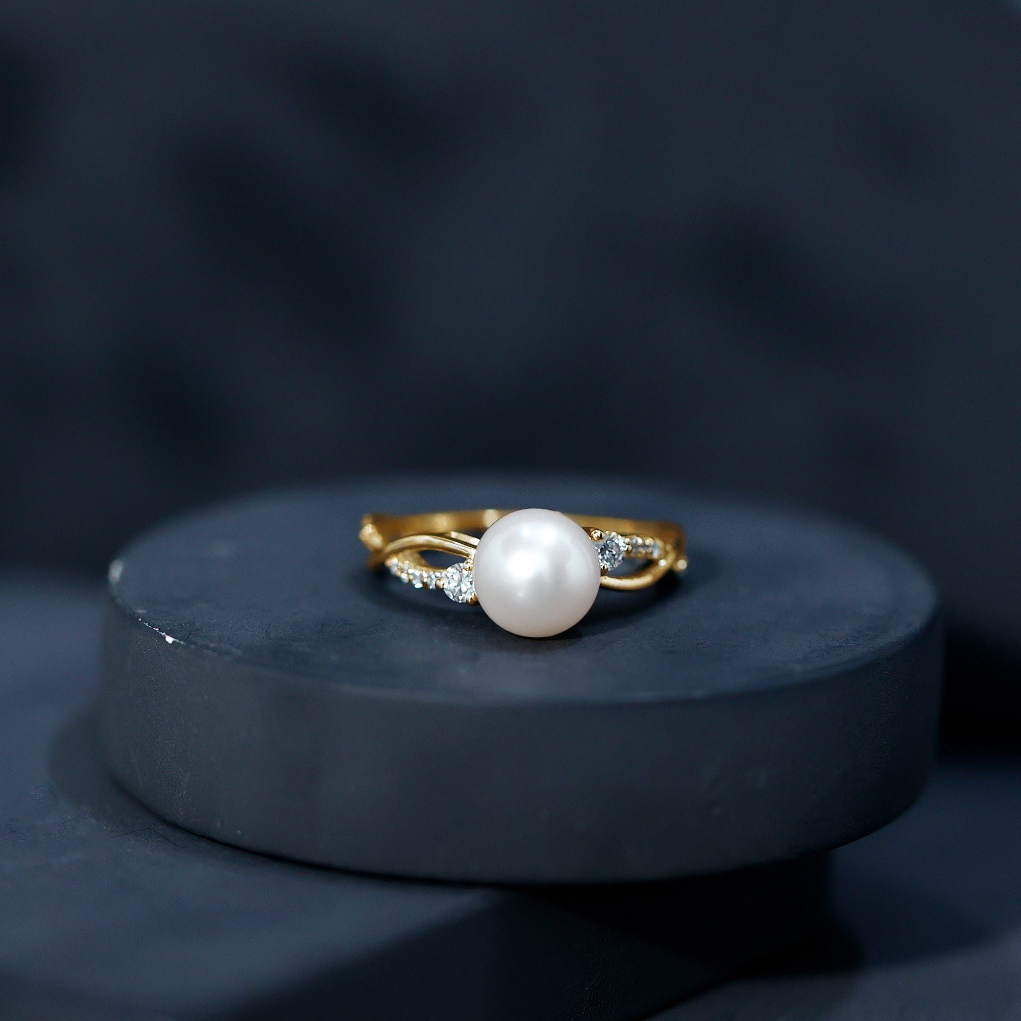 Elevate your style with the shimmering charm of this Freshwater Pearl Solitaire Ring. Its unique design features a crossover shank adorned with a dazzling Round Diamond securely set in a Prong Setting, enhancing the beauty of the pearl. This Pearl Ring is the perfect gift for those born in June, celebrating their special day with elegance and grace.