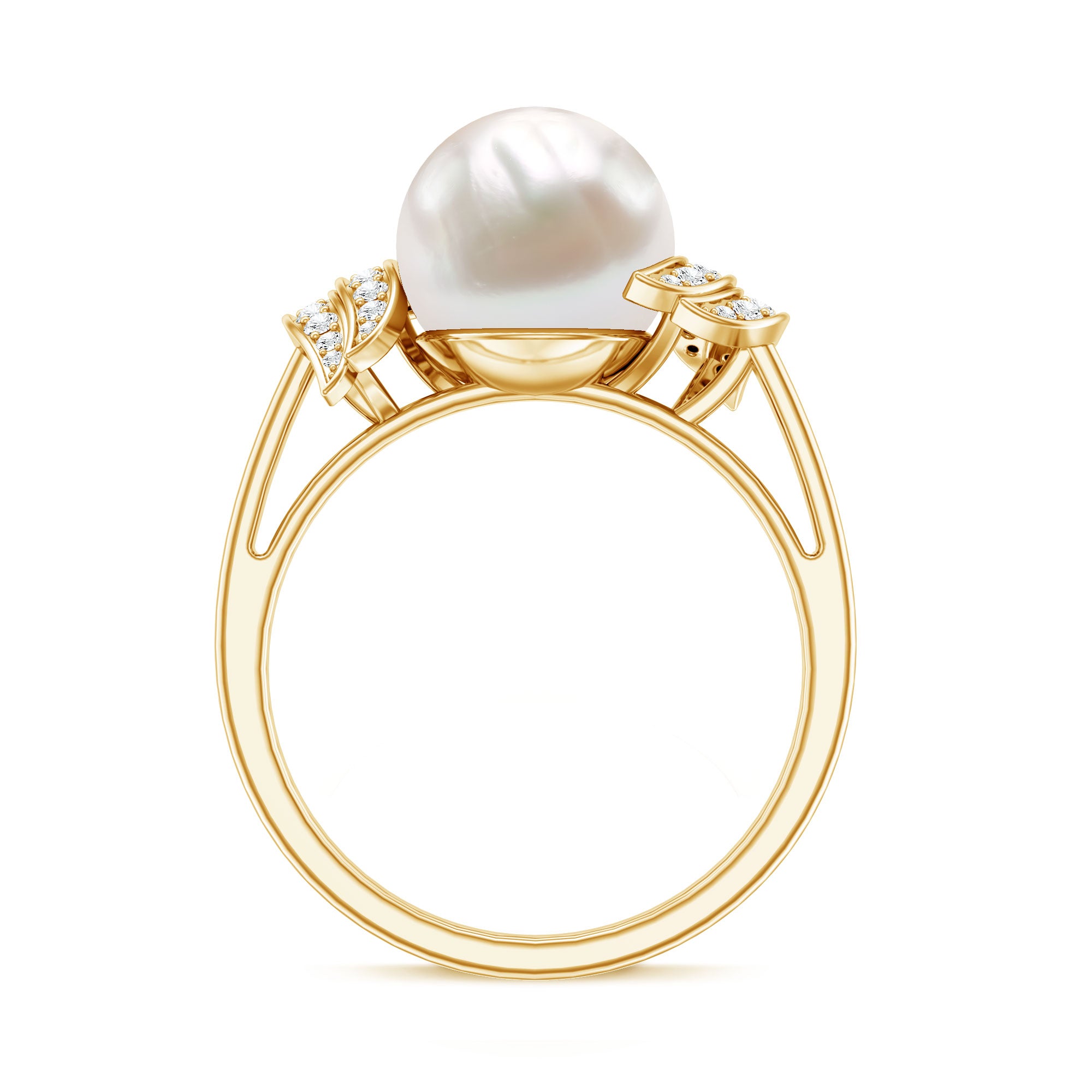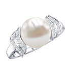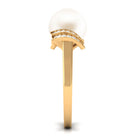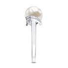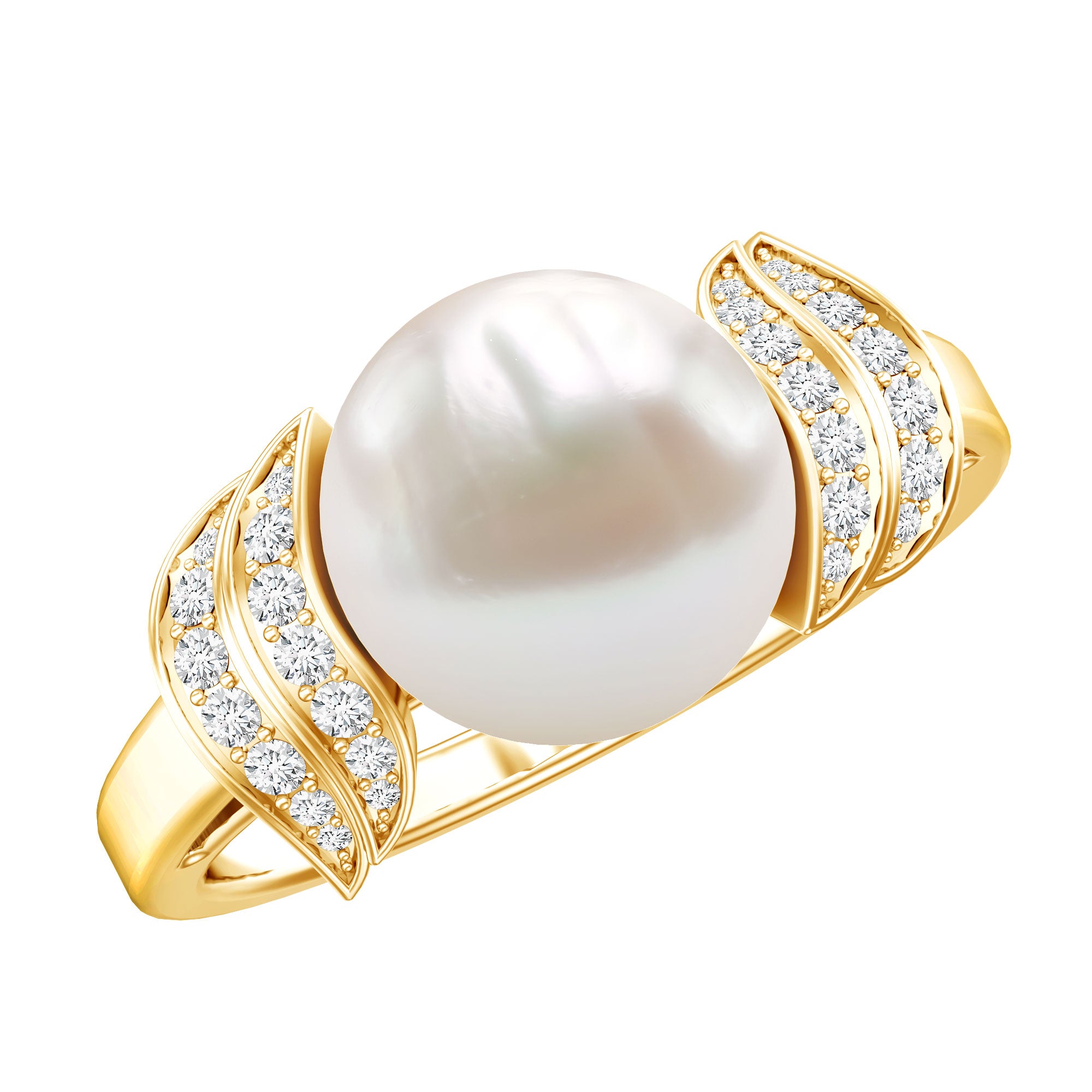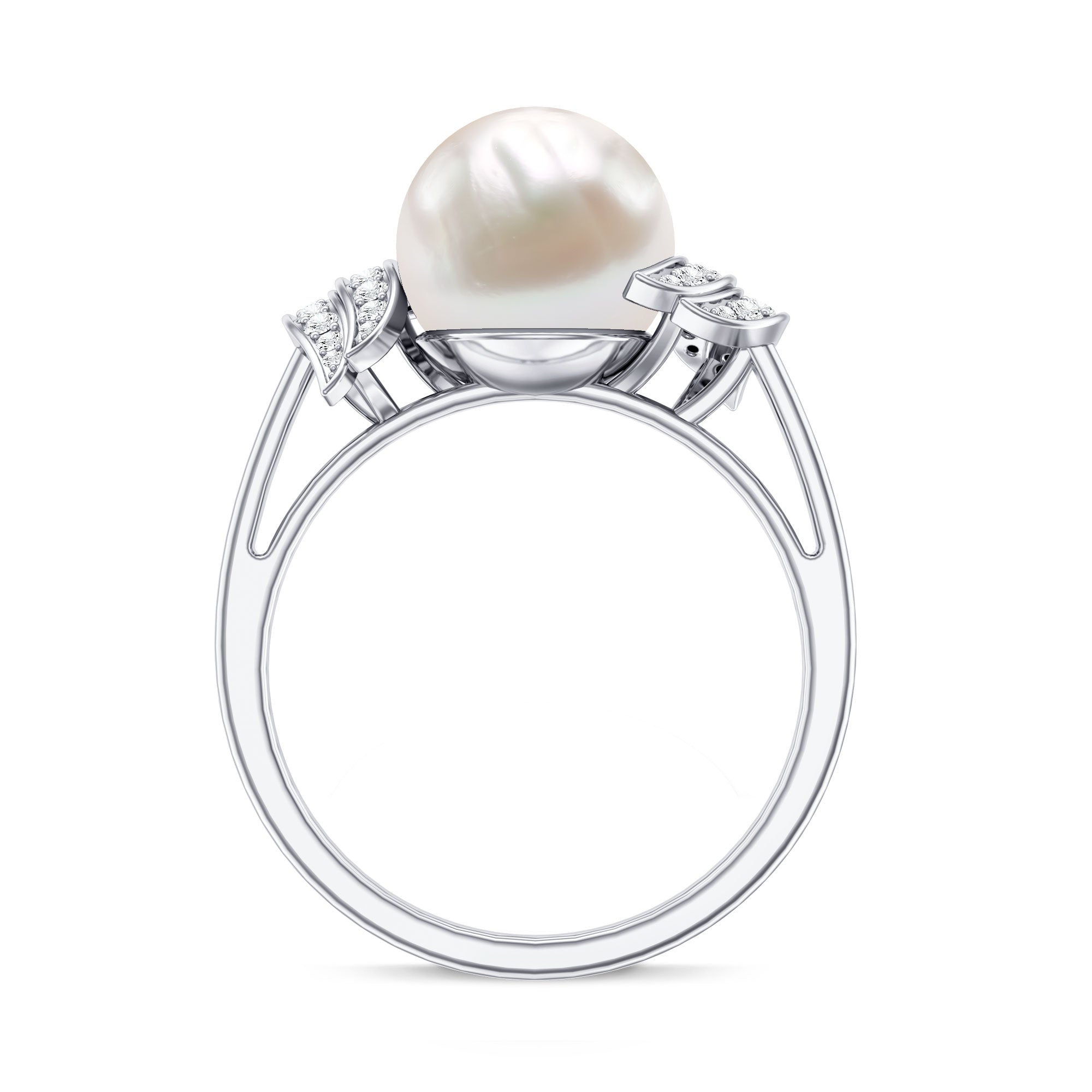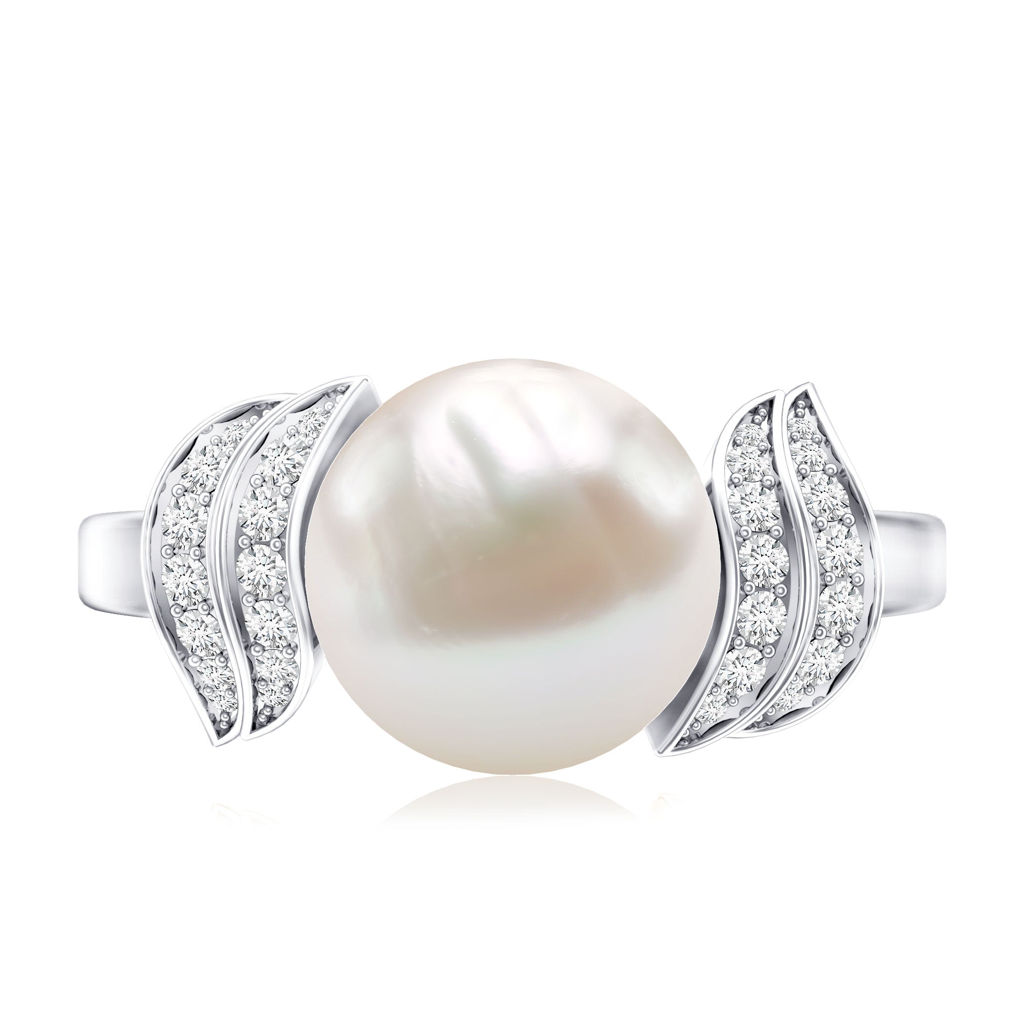 A freshwater pearl is perfectly cut and faceted into a round shape and placed on this uniquely crafted solitaire ring. Leaf motif embellished with Diamond flank the freshwater pearl that elevates the look of the ring. Set on a shiny shank, there is nothing not to love about this dazzling engagement ring.