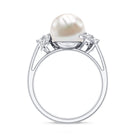 Natural Freshwater Pearl and Diamond Solitaire Engagement Ring