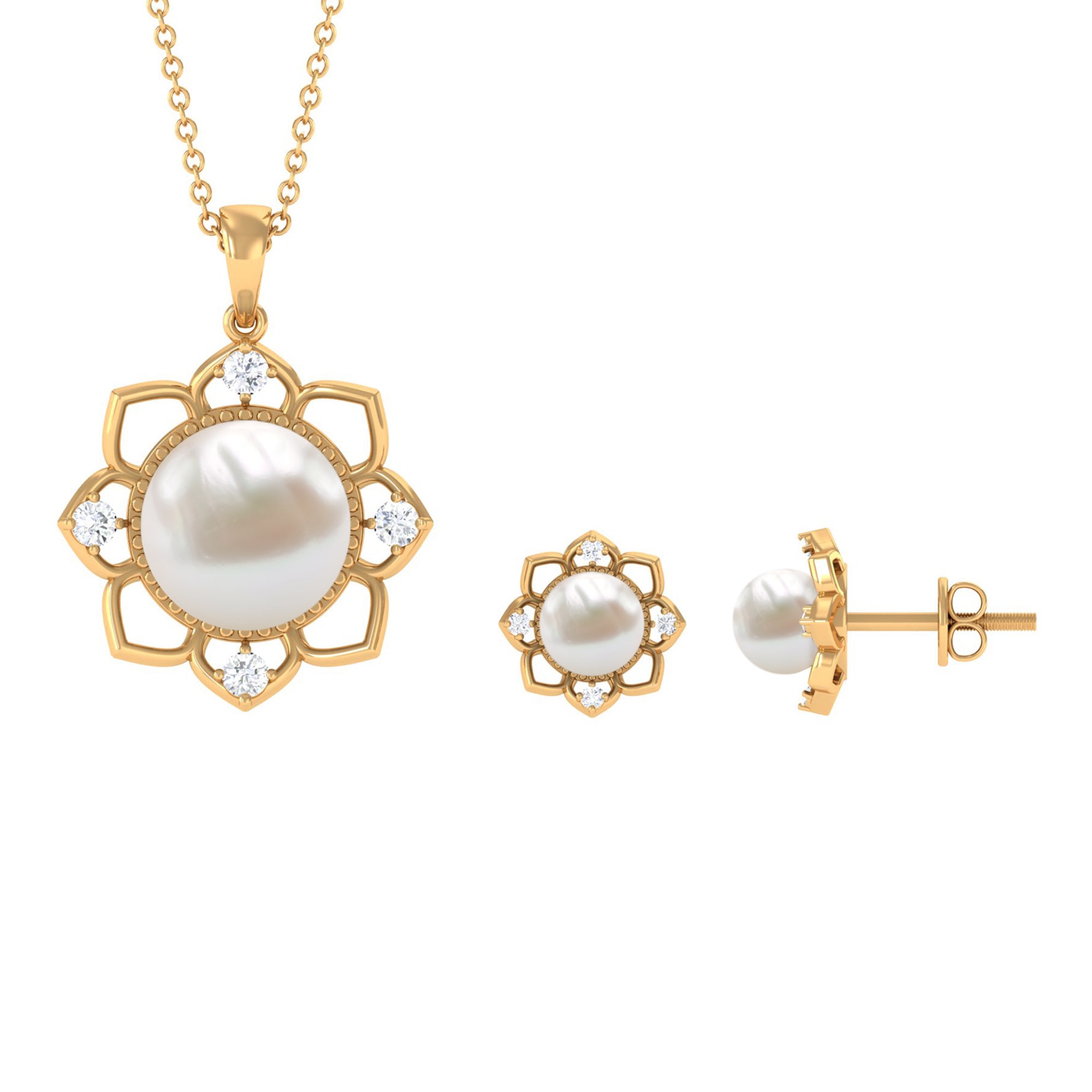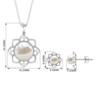 Natural Freshwater Pearl Flower Pendant and Earrings with Diamond