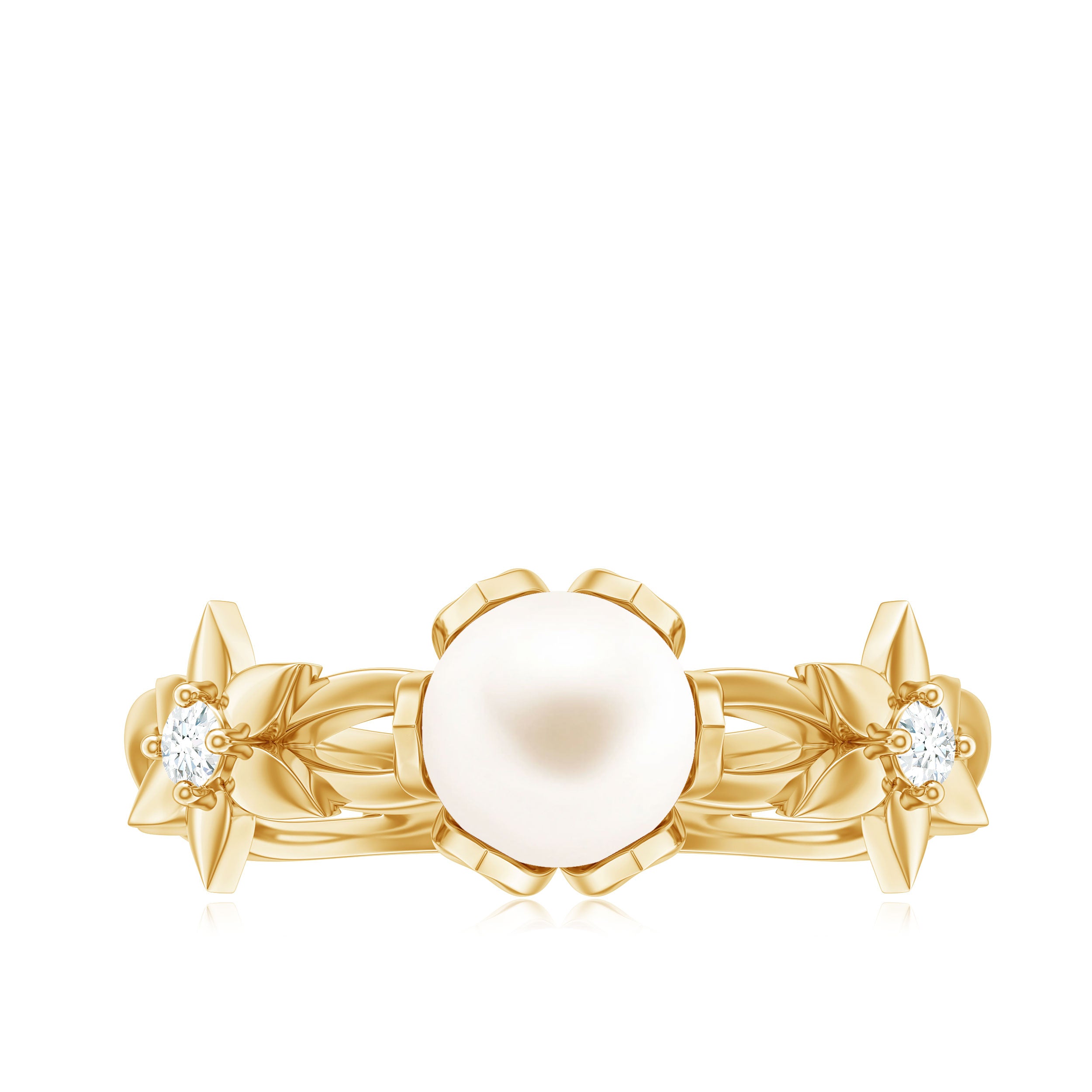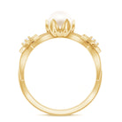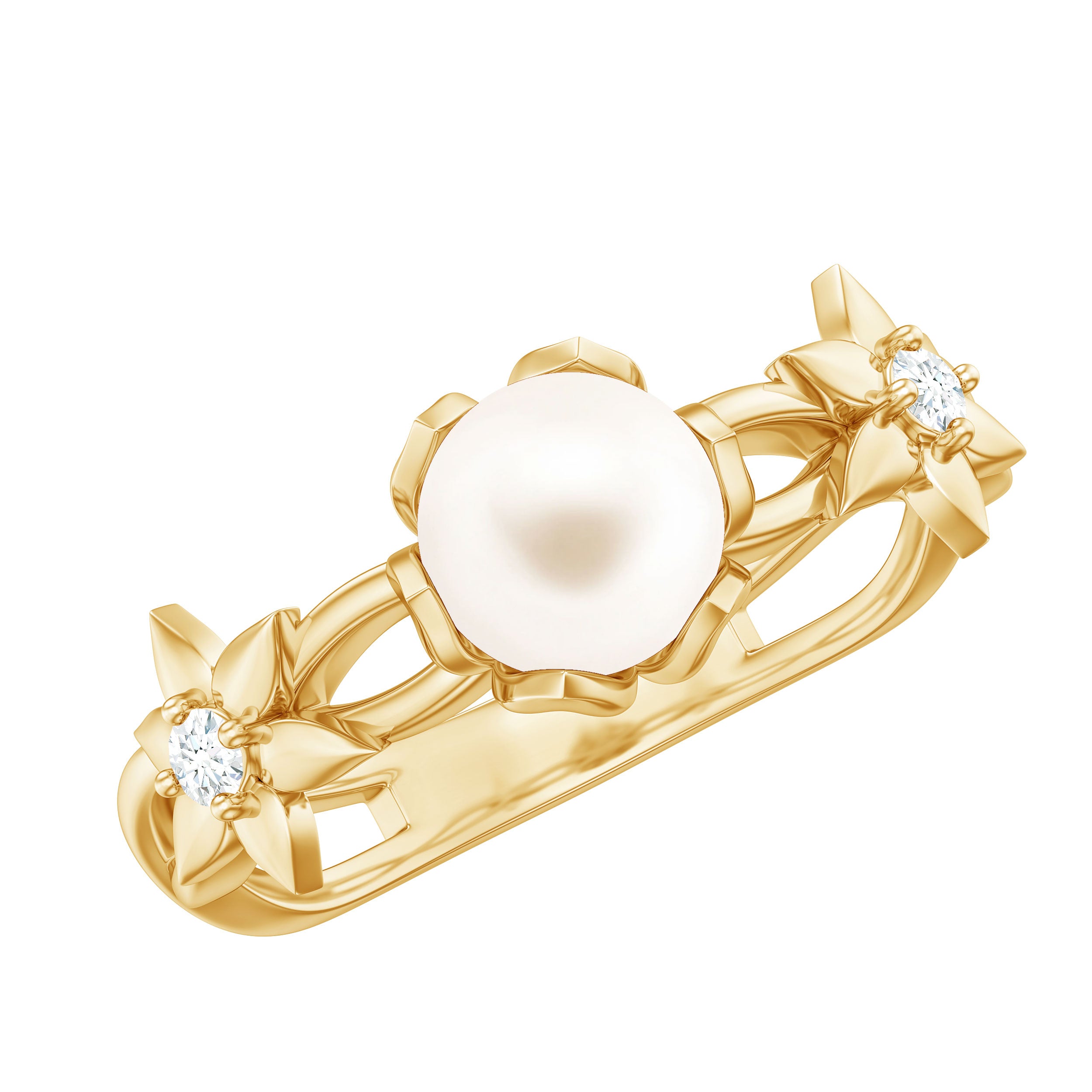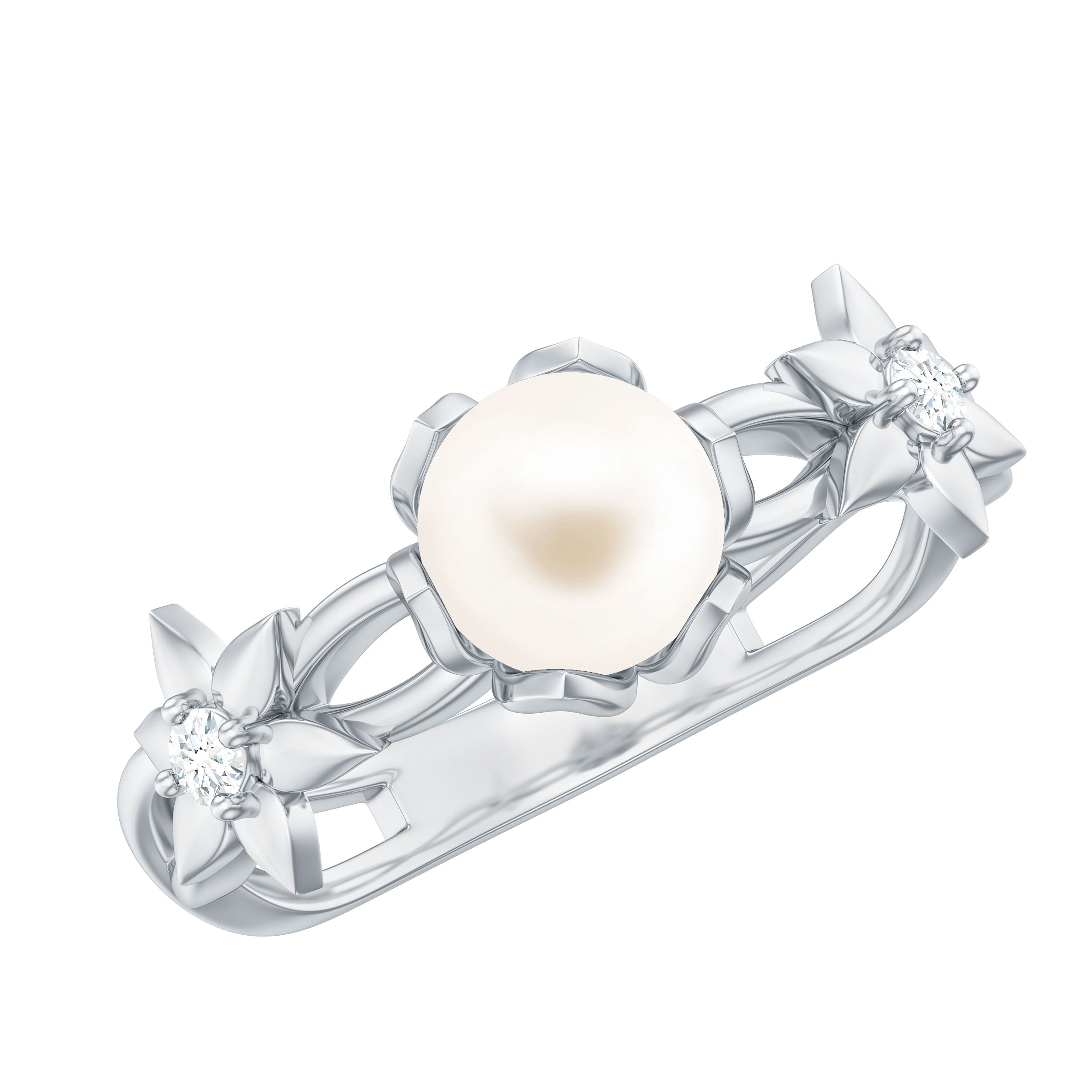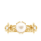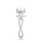 Natural Freshwater Pearl Solitaire Flower Band Ring with Diamond
