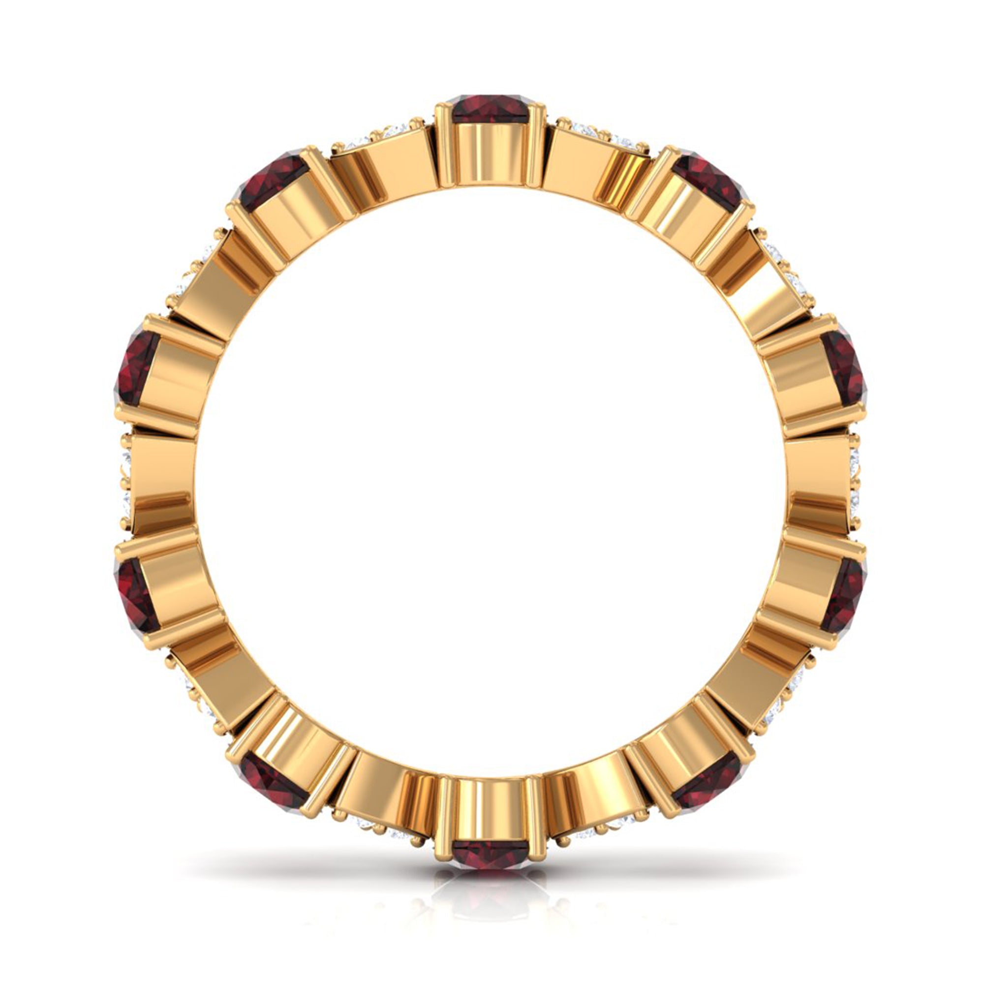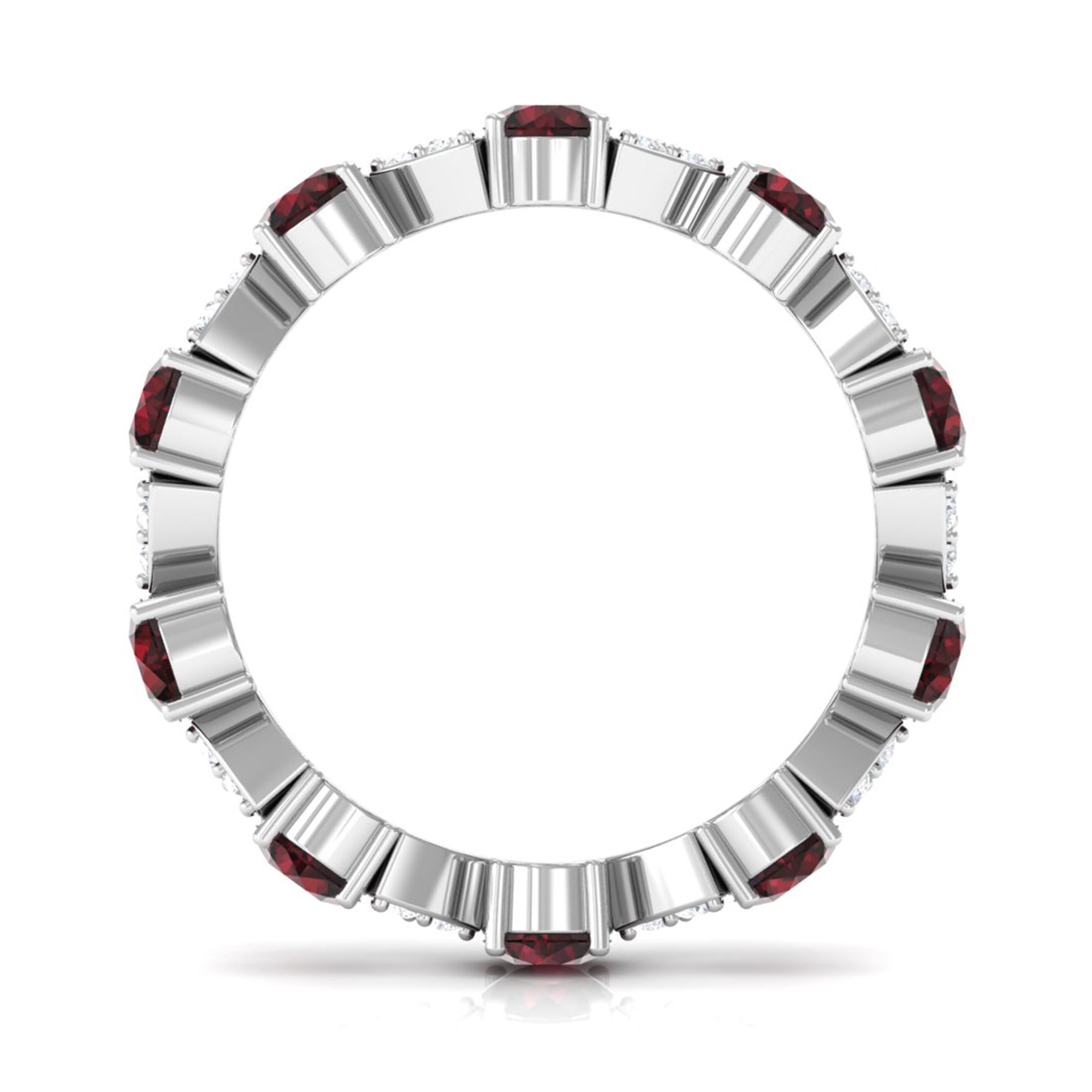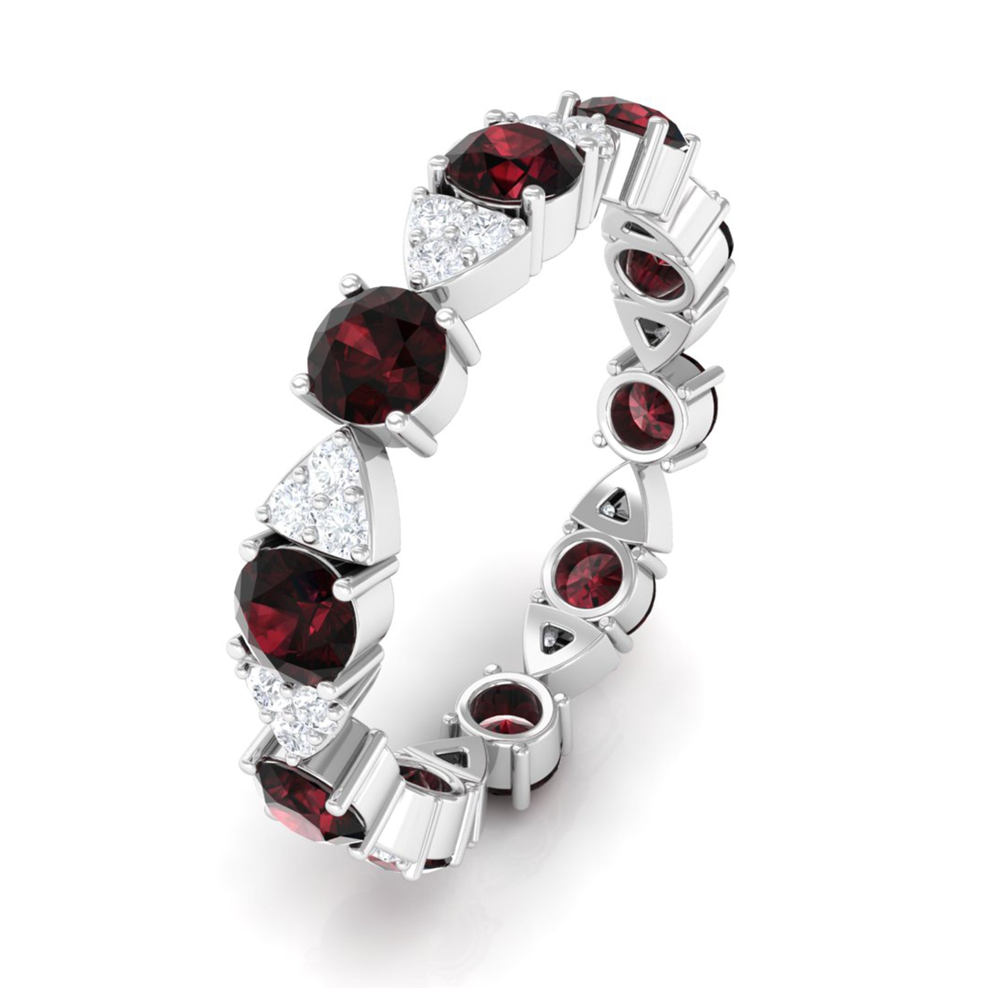Turn heads and steal hearts with this Fully Eternity Ring, where passion and elegance meet in perfect harmony. Featuring 4 mm Round Shape Garnet stones set in Prong Setting that alternate with dainty trios of sparkling Round Diamond stones, this Eternity Wedding Band captures the eye with its unique rhythm of color and light. The design is both modern and timeless, offering a delicate sparkle that feels effortlessly chic while carrying a message of devotion. Crafted for comfort and style, this Garnet Diamond Ring slips on easily and feels as special as the moments it represents. Arriving in a signature jewelry box, this Garnet Eternity Ring is ready to be gifted as a meaningful token of eternal love, making any occasion unforgettable. Available in a variety of ring sizes, this Red Garnet Ring promises the perfect fit for the person who makes your heart flutter. This eternity ring is a symbol of connection, a reminder of cherished memories, and a sparkling testament to love that lasts forever.