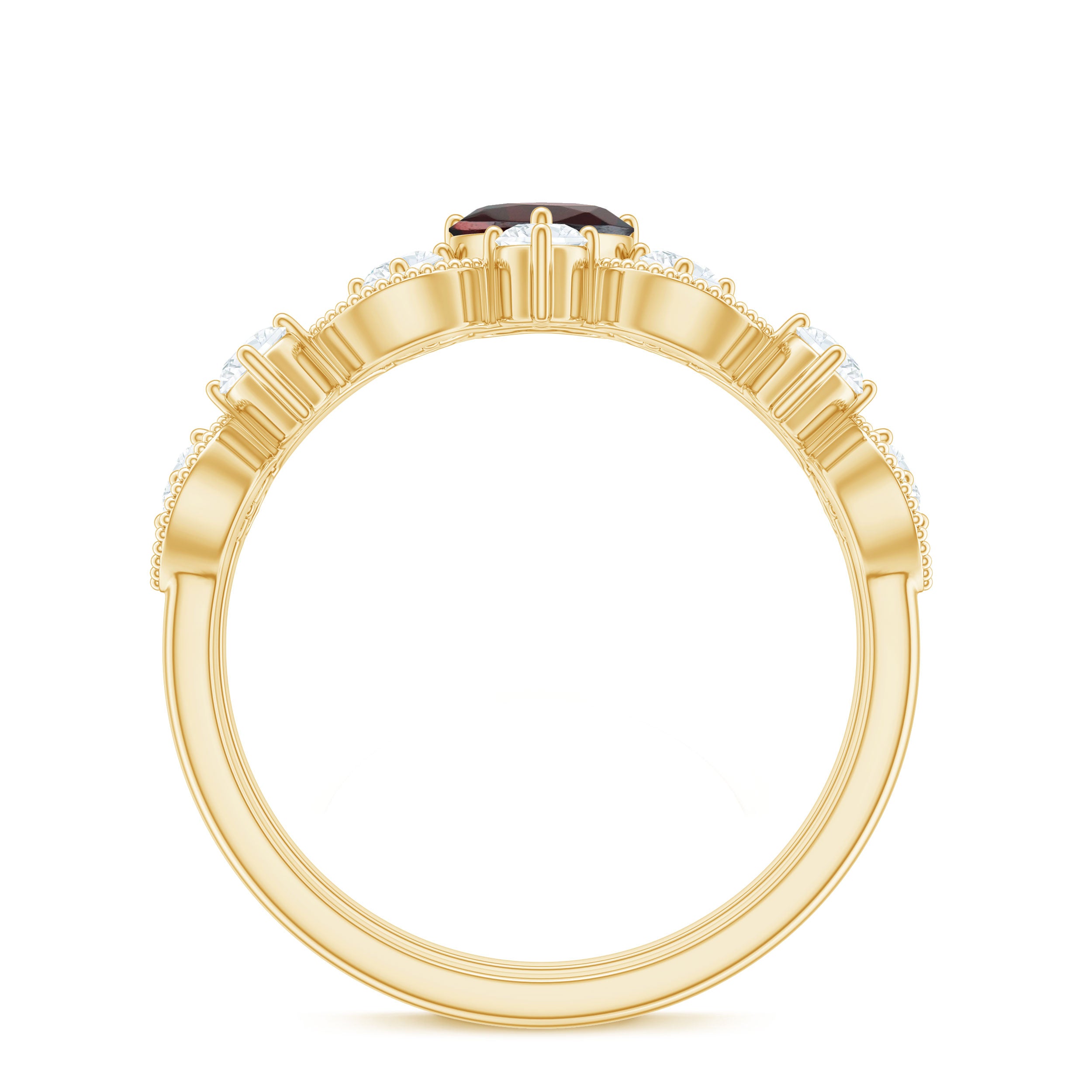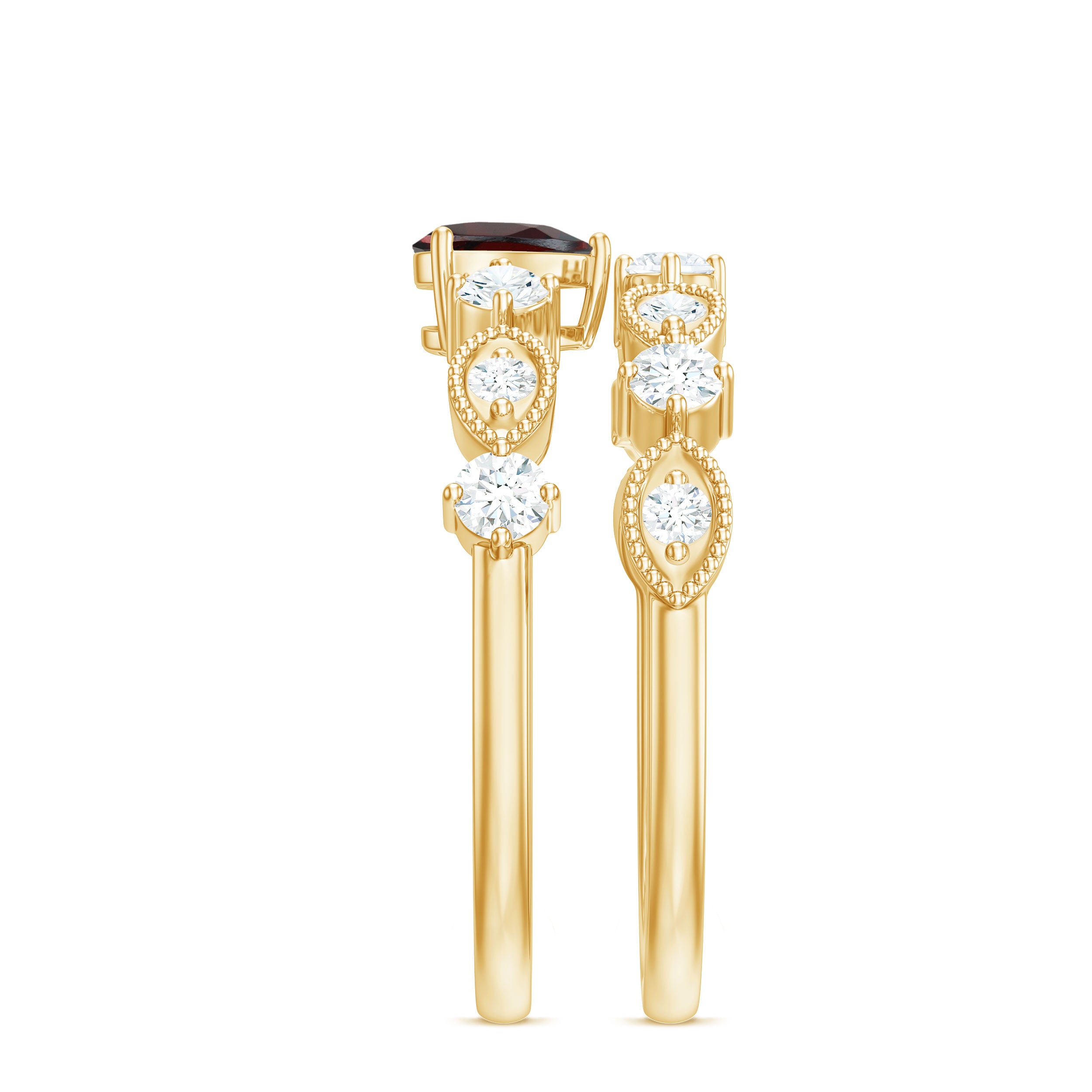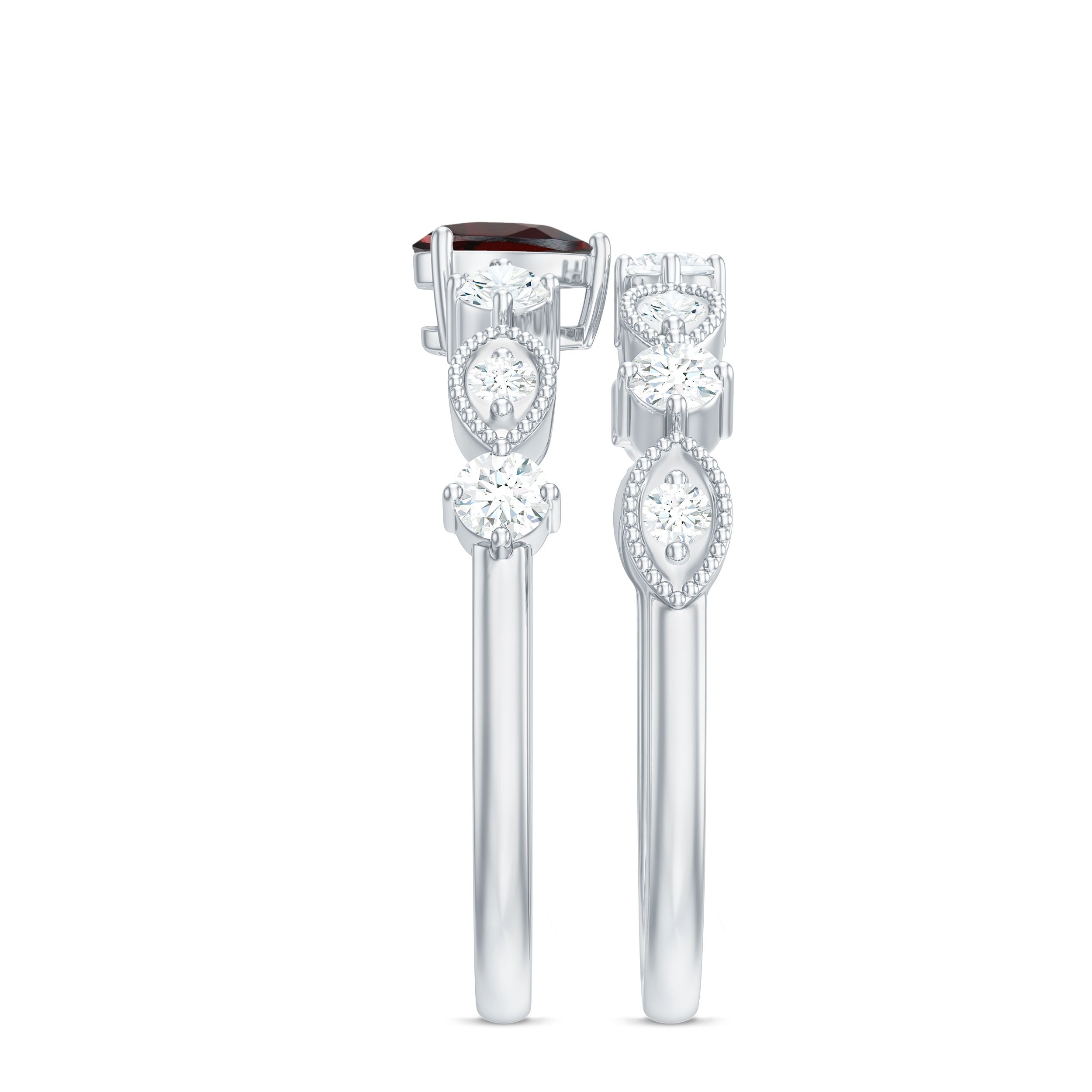 Natural Garnet Diamond Heart Engagement Ring with Wedding Band