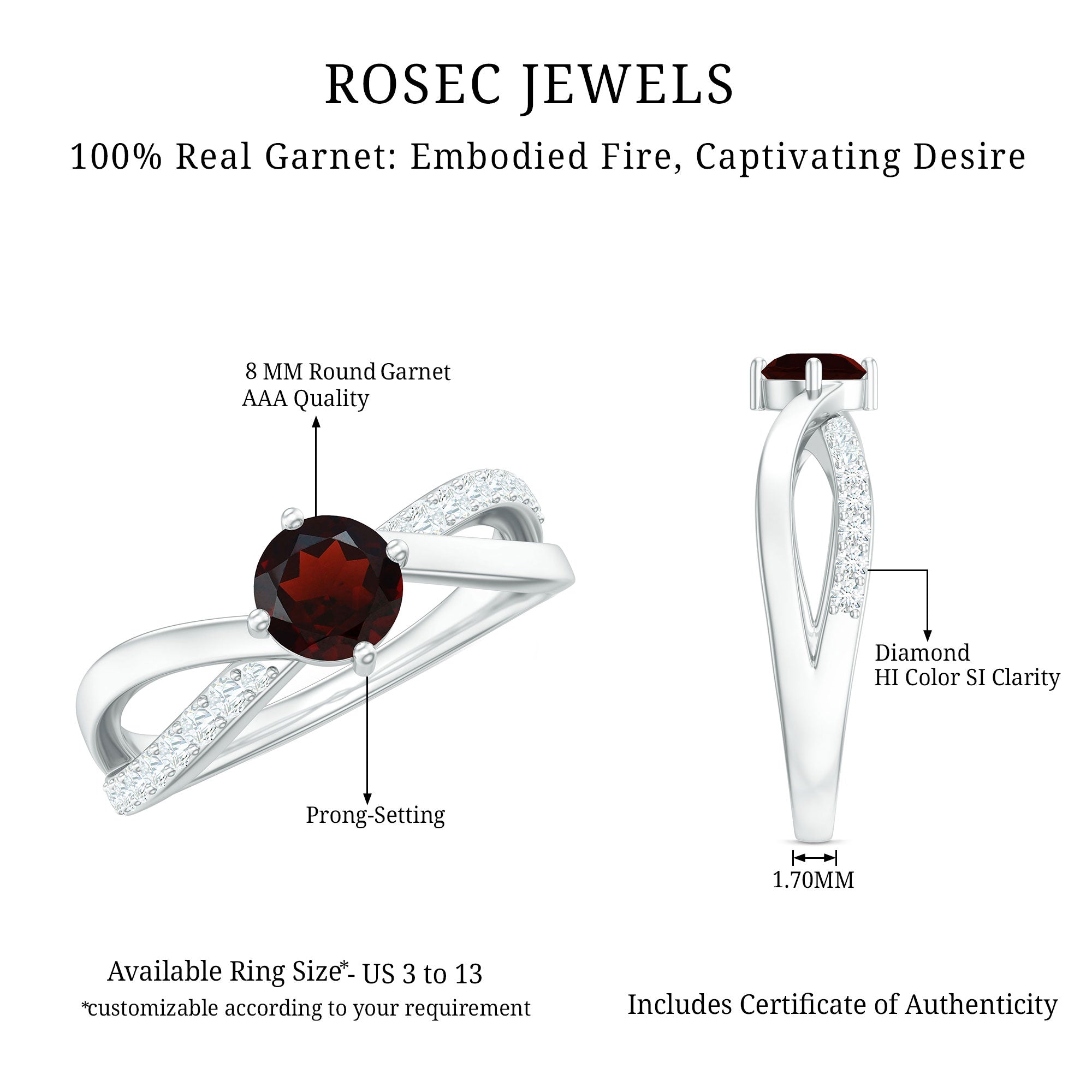 A token of everlasting love and devotion, this Garnet Engagement Ring is designed to celebrate a bond with no end. At the center shines an 8 mm Round Shape Garnet set in 4 Prong Diagonal Setting, glowing with deep red warmth that reflects passion, trust and heartfelt emotion. The elegant Infinity Shank flows gracefully around the finger, symbolizing a love that continues endlessly through every chapter of life. Delicate Diamond stones along the band add a soft, romantic sparkle, enhancing the beauty of the AAA Quality Red Garnet without taking away from its natural charm. Thoughtfully crafted for both comfort and elegance, this Garnet Diamond Ring feels just as special for everyday wear as it does for the most meaningful moments of life. Whether chosen for an engagement, an anniversary or a promise made from the heart, this Infinity Engagement Ring carries a message that words alone cannot express. Presented in a signature jewelry box and available in various ring sizes, it is ready to become part of a story that will be cherished forever.