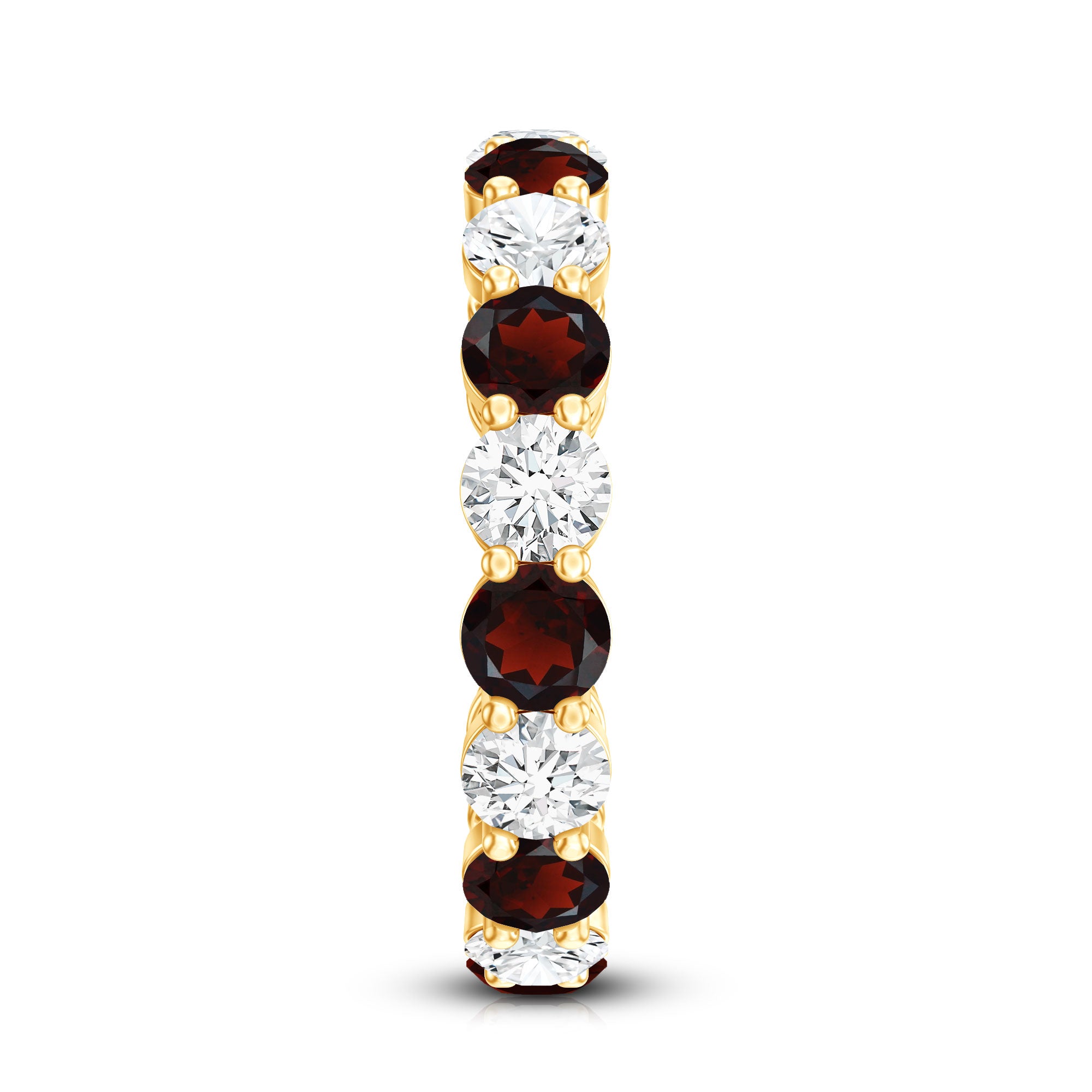 Natural Garnet Eternity Wedding Ring with Moissanite