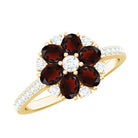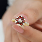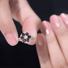 Natural Garnet Flower Engagement Ring with Diamond