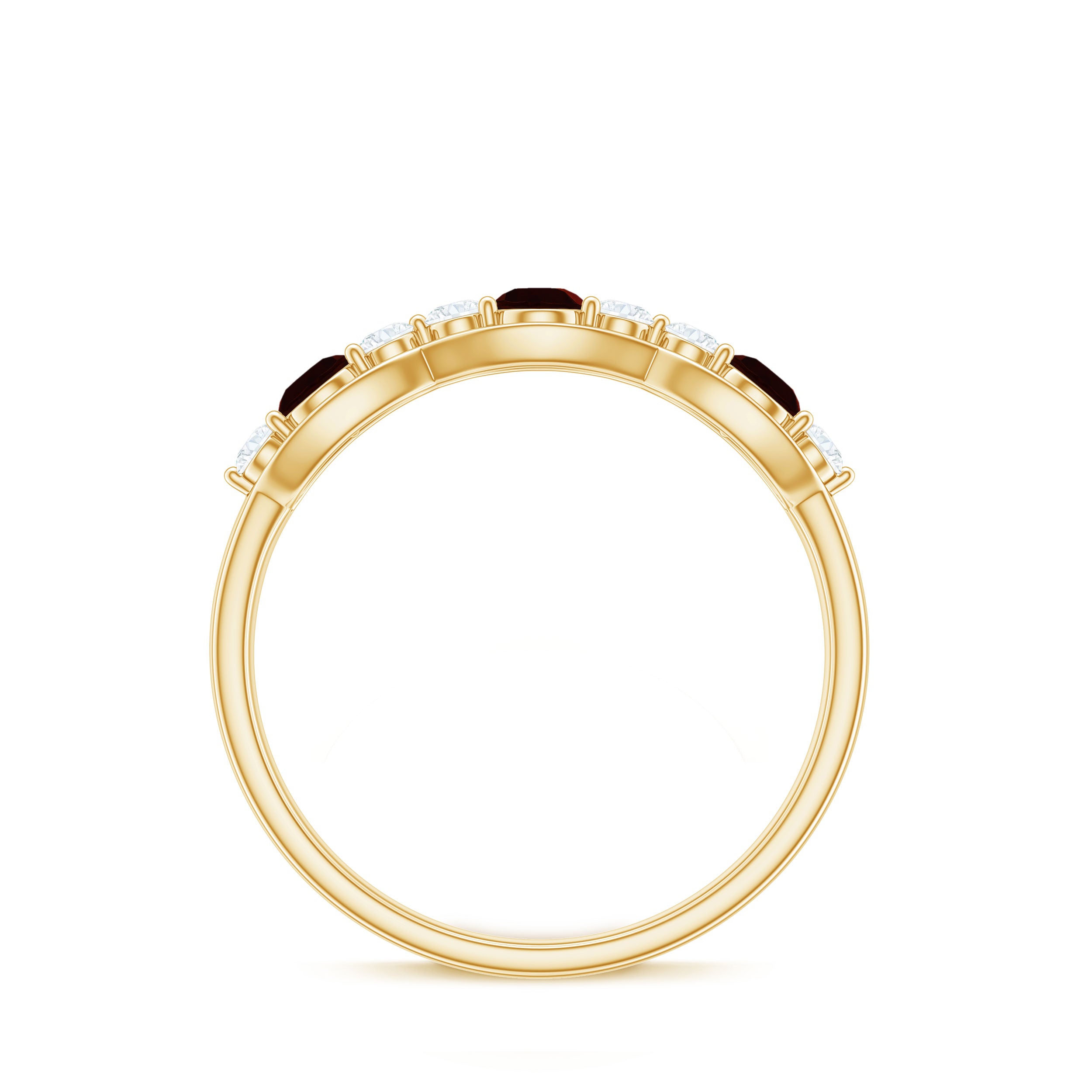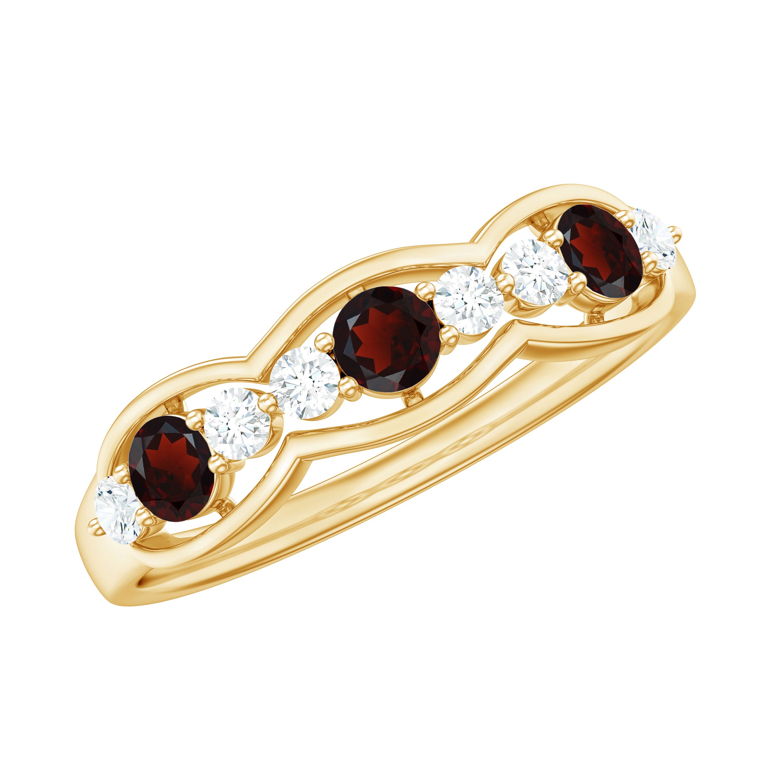 Complement your love story with a ring that radiates warmth, elegance and a touch of heartfelt magic. This Half Eternity Ring blends rich red hues with gentle sparkle, creating a piece that feels both romantic and timeless. The deep 4 mm Round Shape Garnet stones, symbols of passion, loyalty, and lasting devotion, are alternately placed with dazzling Diamond stones that enhance the graceful beauty of this Wedding Anniversary Ring. Every detail is crafted to offer comfort, style and a sense of connection. The half eternity design provides the right balance of color and shine, making this Garnet Diamond Ring perfect for everyday wear or for pairing with an engagement ring. The subtle sophistication makes this Red Garnet Ring an ideal choice for anniversaries, special milestones or simply as a reminder of the bond you cherish. Presented in a signature jewelry box and available in a range of sizes, this Garnet Eternity Ring arrives ready to become part of your most treasured moments.