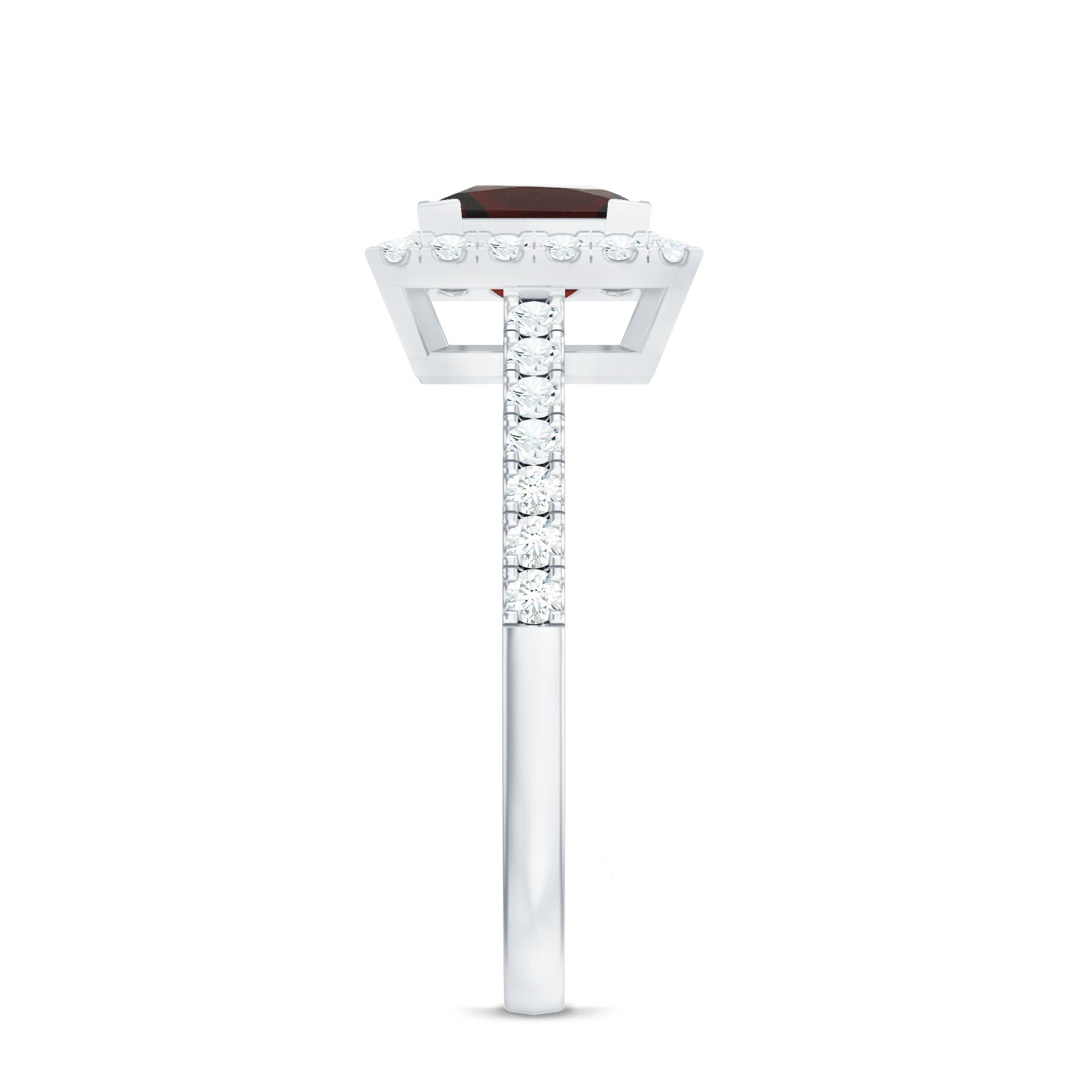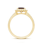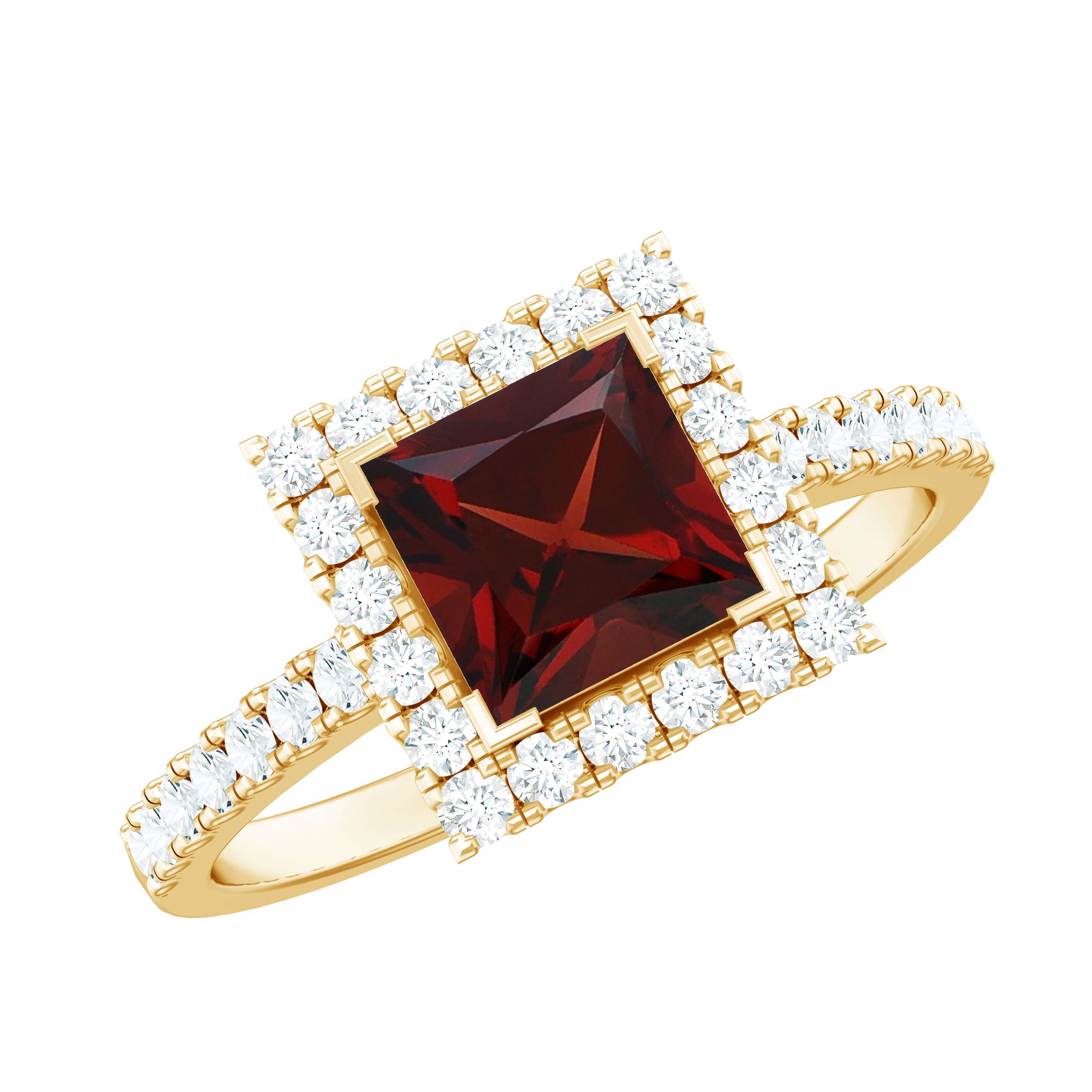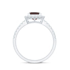 Natural Garnet Princess Cut Engagement Ring with Diamond Halo