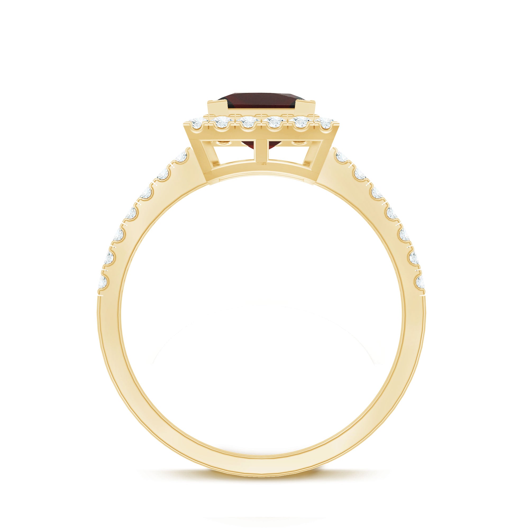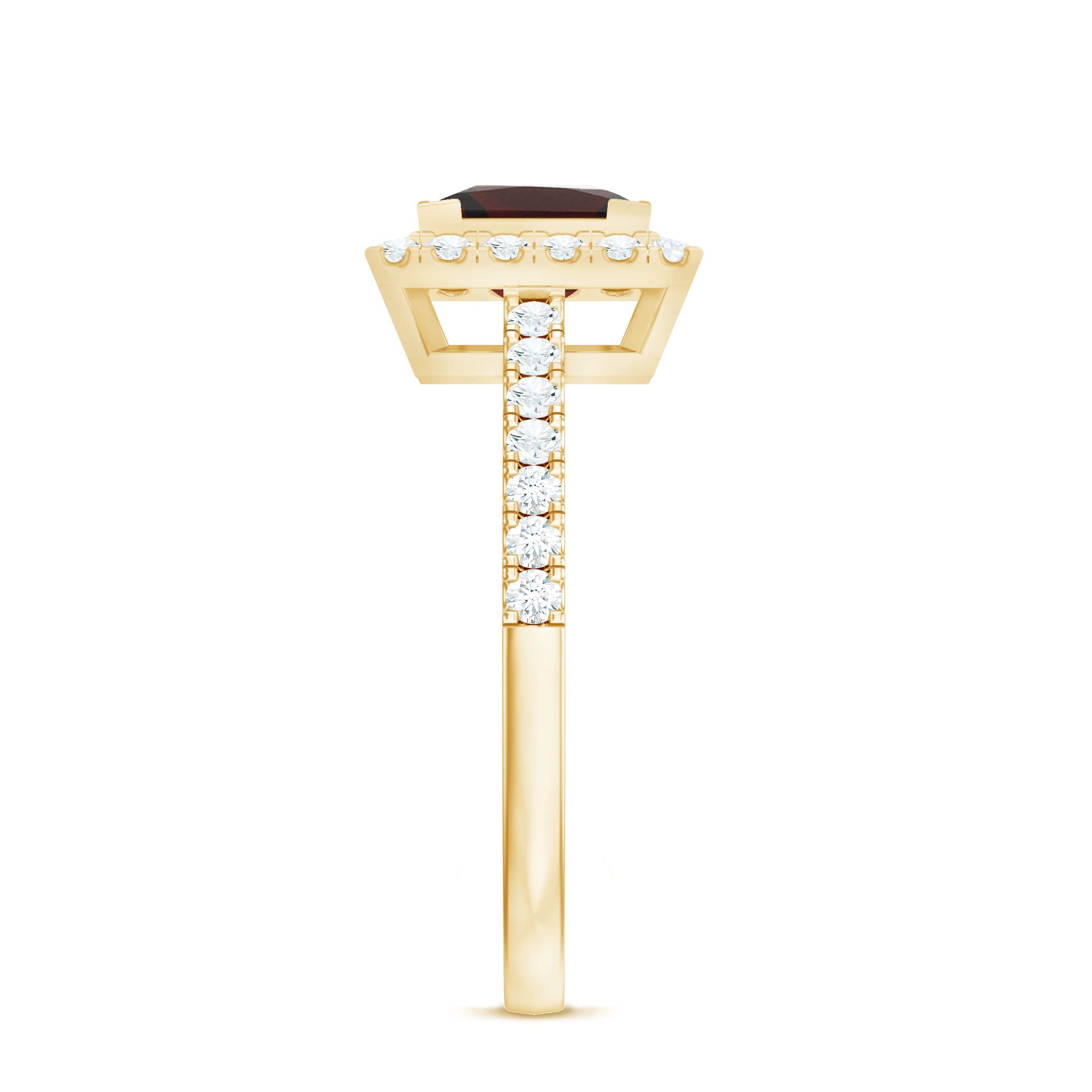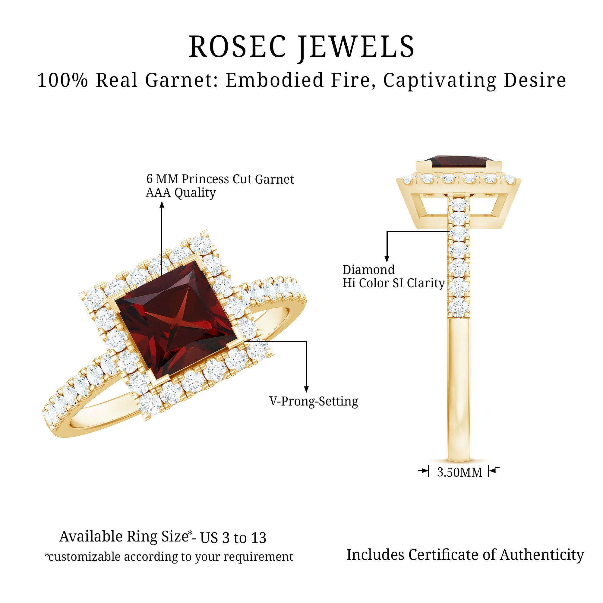 Crafted for the queen of your heart, this Princess Cut Engagement Ring is a breathtaking symbol of love that feels as timeless as your story. At the center shines a bold 6 mm Princess Cut Garnet set in V Prong Setting, glowing with rich red tones that embody passion, devotion and forever. Surrounding it, a halo of sparkling Diamond stones adds radiant sparkle, making the center stone appear even more luminous. The elegance continues along the band, adorned with petite Diamond stones that shimmer with every movement, creating a ring that is both romantic and unforgettable. Designed to feel comfortable for everyday wear yet stunning enough for the biggest moments of life, this Garnet Diamond Engagement Ring is available in various US sizes for that perfect, personal fit. Presented in a signature jewelry box, this Halo Engagement Ring with Garnet is ready to be revealed in the moment she will always remember. This Square Engagement Ring is a promise, a celebration of memories made and a beautiful reminder of the future you are building together. Romantic, heartfelt and utterly captivating, this Vintage Looking Engagement Ring is a piece she will treasure forever.