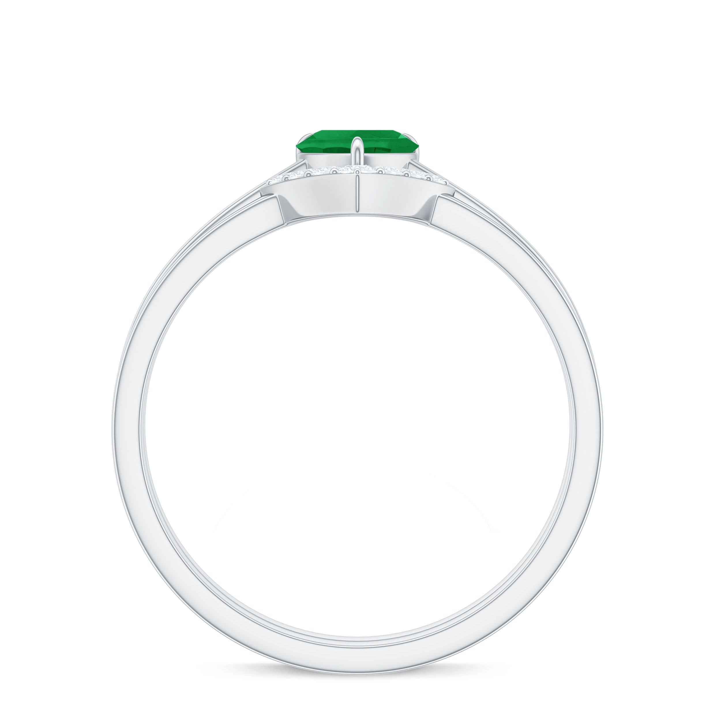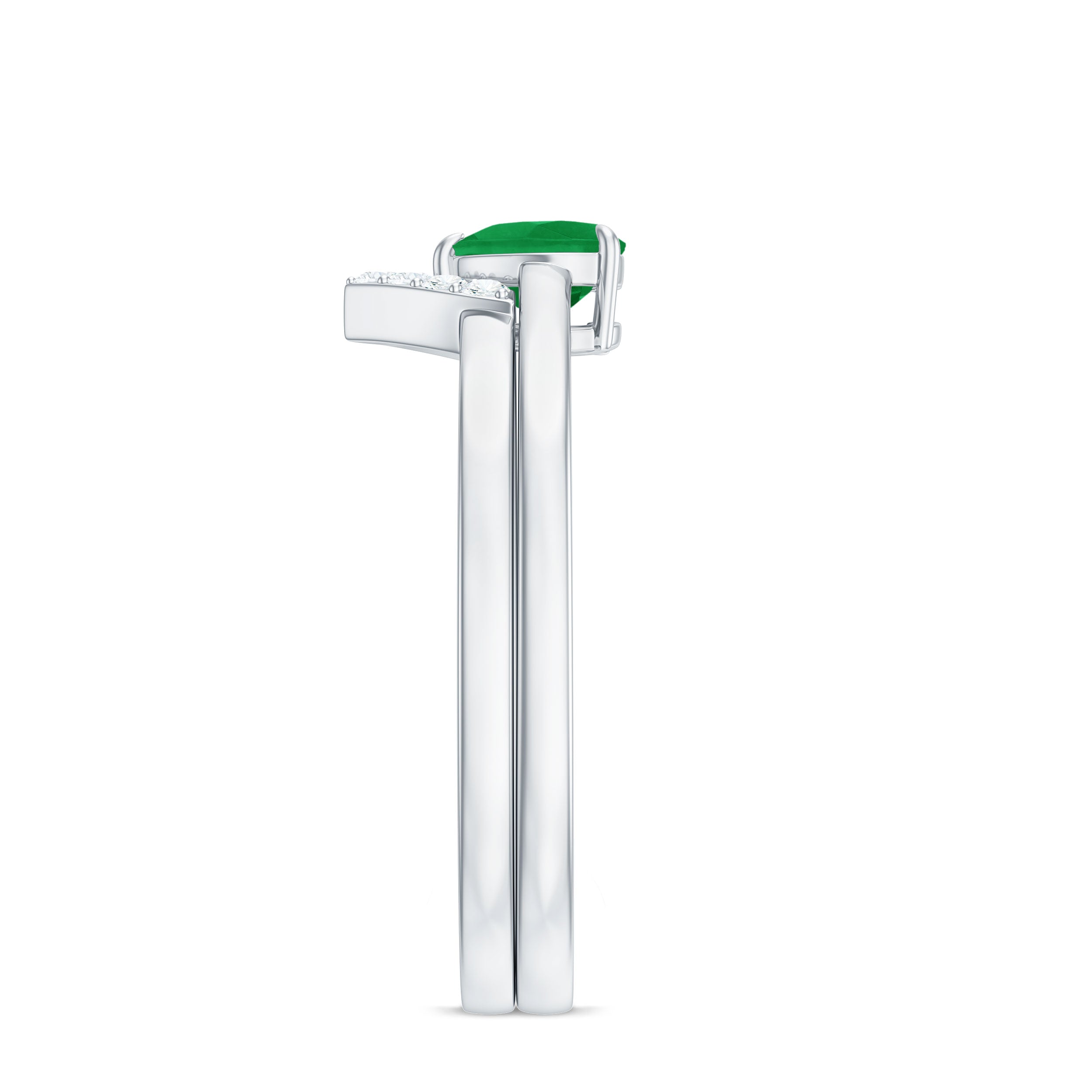 As timeless as your love story, this Heart Shaped Wedding Ring Set is a breathtaking symbol of passion, devotion and forever. This 2 Piece Ring Set includes a Solitaire Engagement Ring that features a 5 mm Heart Shape Emerald, radiating pure romance and individuality. It captures the essence of a heartfelt promise, while the V Shaped Wedding Band, delicately lined with shimmering Diamond stones, embraces it in a graceful union. Together, they create a harmony of color and sparkle that speaks to a love both rare and eternal. Crafted with care and elegance, this Promise Ring Set is designed to celebrate every chapter of your journey. Available in a range of sizes and beautifully presented in an elegant jewelry box, this Emerald Wedding Ring Set is the perfect gift to express your deepest emotions. Whether for an engagement, anniversary or simply to honor the one who holds your heart, this stunning Emerald Engagement Ring with Enhancer promises to be a lasting symbol of your endless affection.