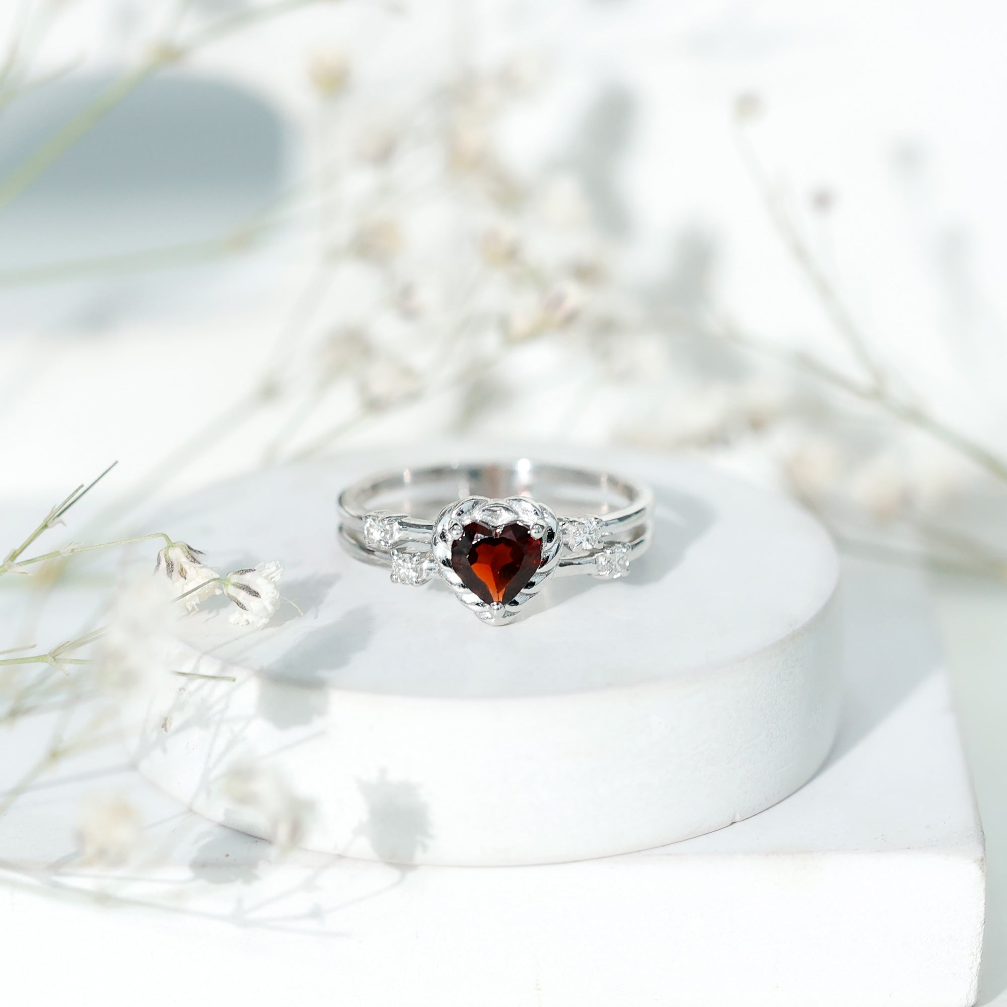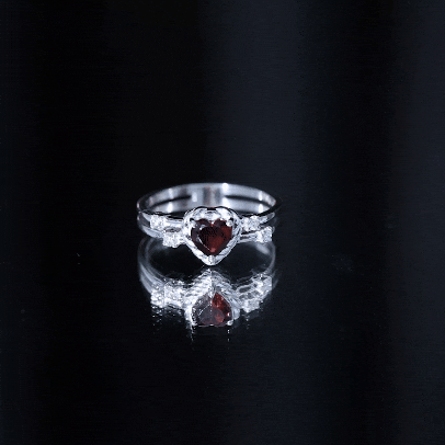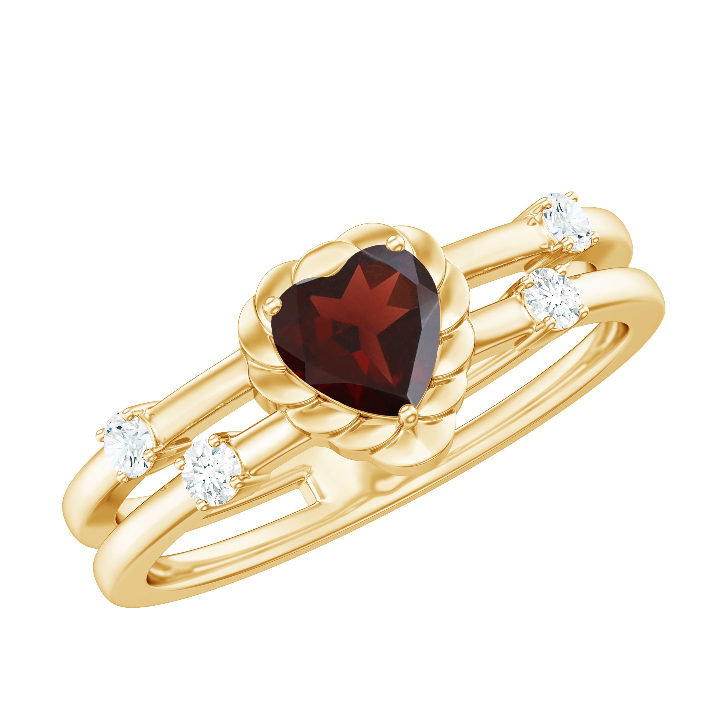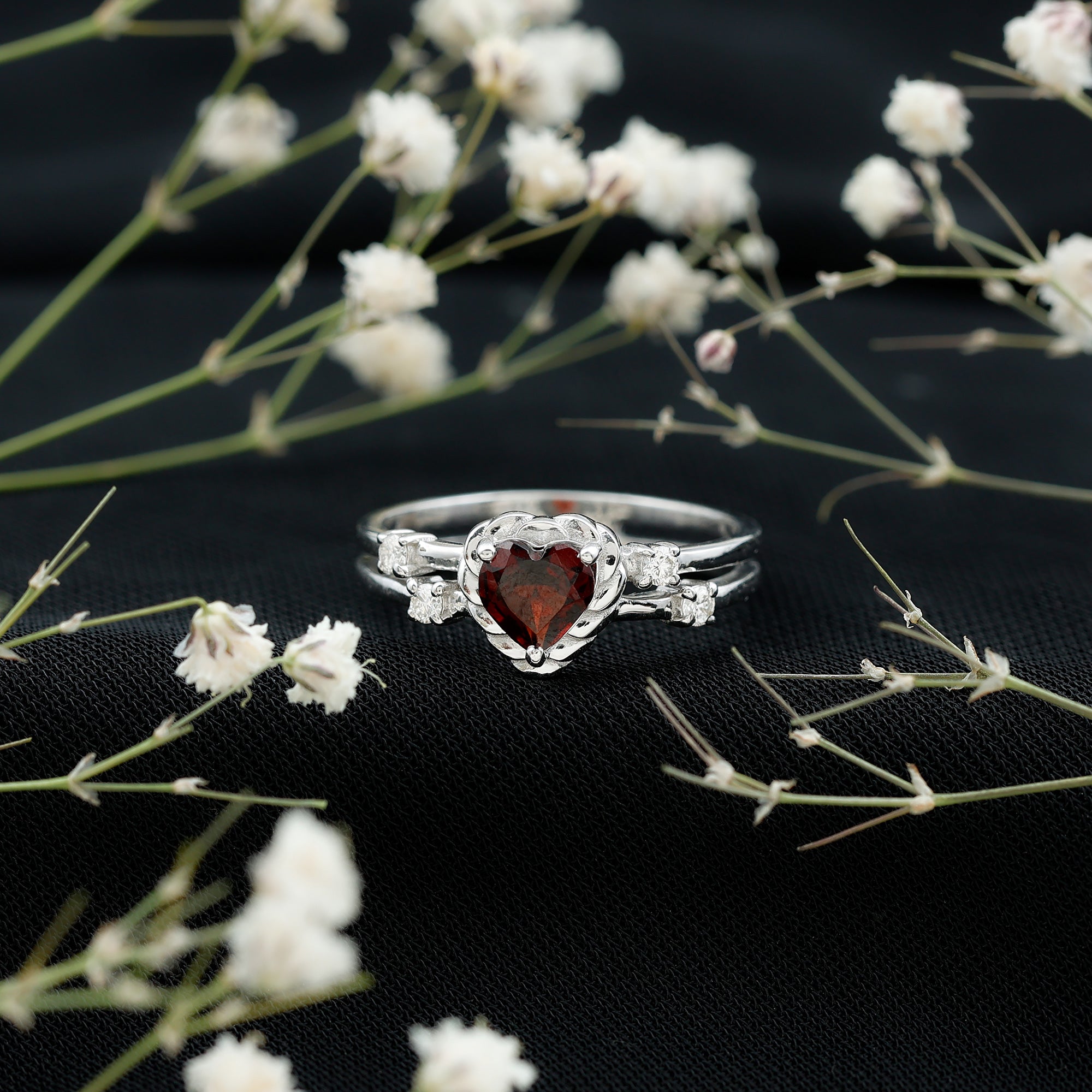 Natural Heart Shaped Garnet Diamond Double Band Engagement Ring