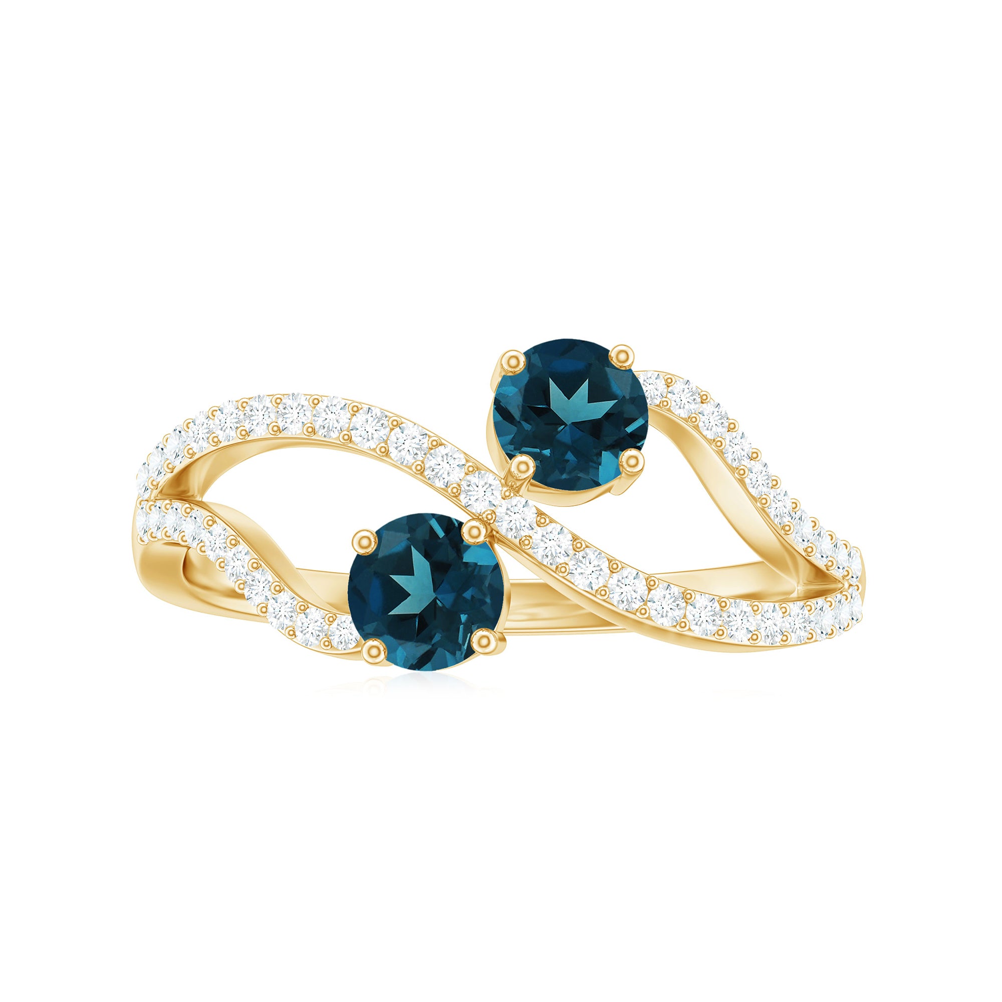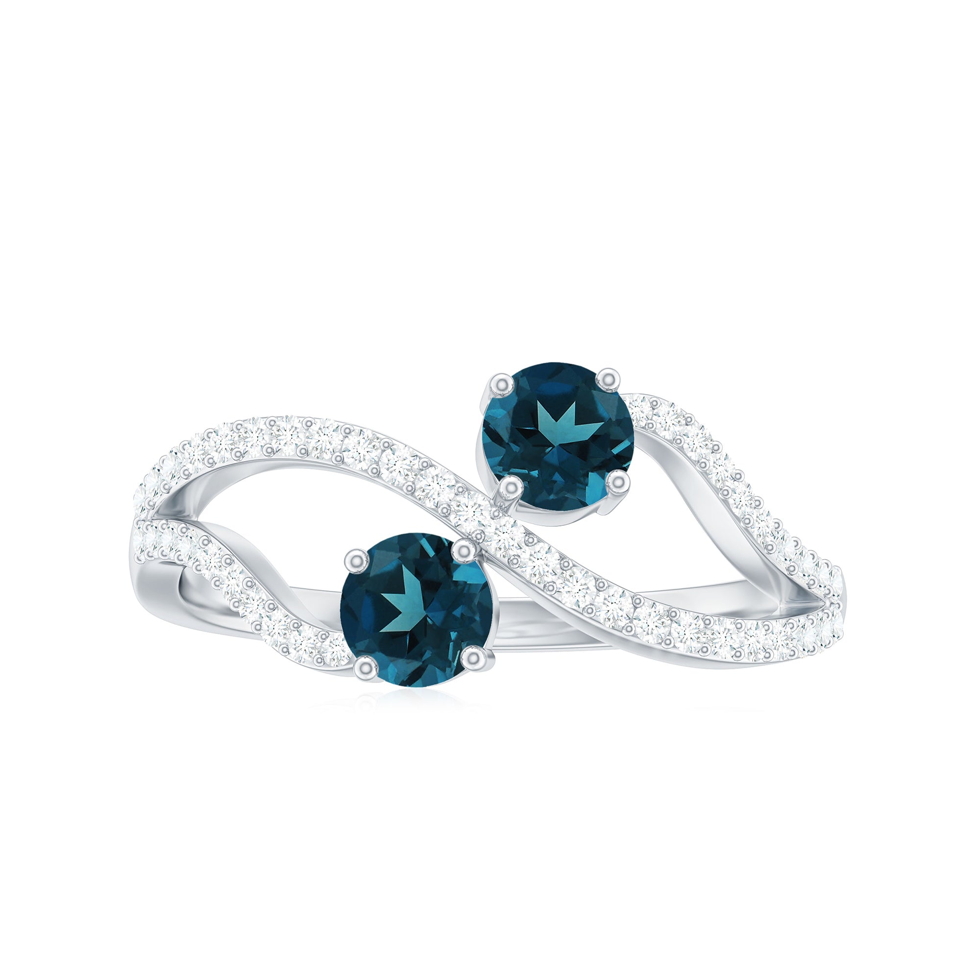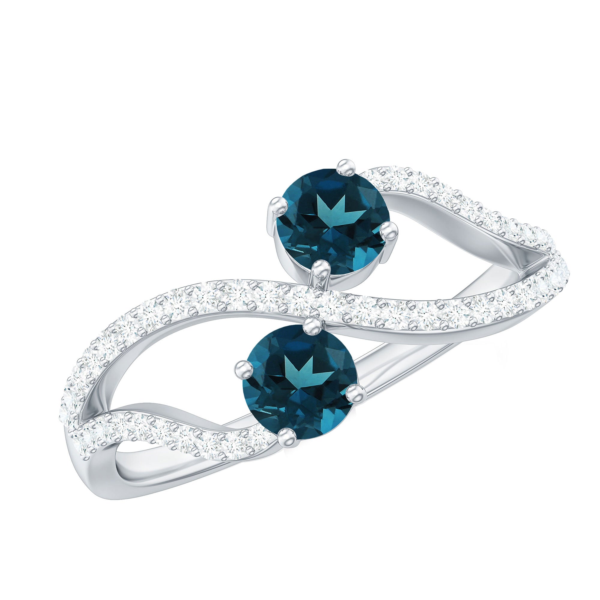 Natural London Blue Topaz 2 Stone Promise Ring with Diamond