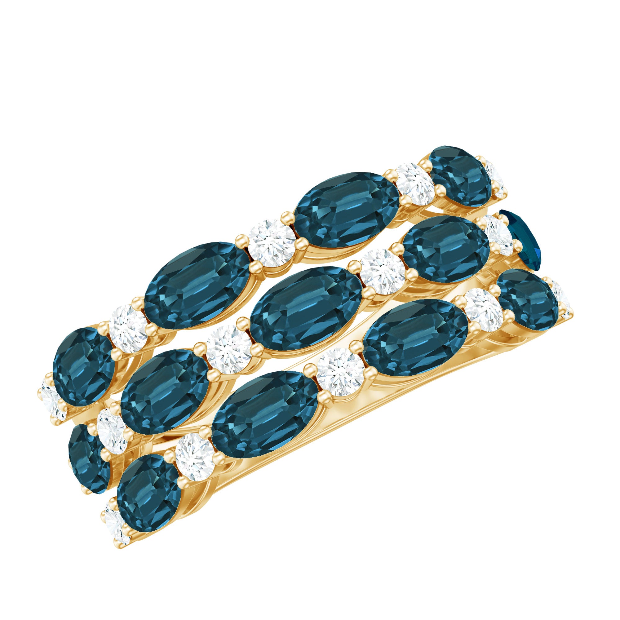 Enhance your elegance with this London Blue Topaz Ring, a true masterpiece of refined glamour. Featuring an Oval Shape London Blue Topaz and round Diamond in a Prong Setting, it is celebrated for its deep, captivating hue that radiates sophistication and charm. This exquisite gemstone, with its vibrant blue color, amplifies its brilliance and creates a mesmerizing interplay of light. Discover a realm of glamour with this stunning Blue Topaz Cocktail Ring, which epitomizes sophisticated style and opulence. This Womens Cocktail Ring embodies grace and grandeur, making a bold statement with this dazzling piece. Celebrate your unique style with a hint of opulence, designed to attract attention and win hearts. Embrace the charm of timeless elegance with this exquisite piece, showcasing AAA Quality London Blue Topaz and Hi-Si Diamond. Meticulously handcrafted by talented artisans, this Statement Ring is crafted from precious metals and certified gemstones, providing remarkable brilliance and worth. The creative arrangement results in a refined Eternity Band that is striking yet not overpowering, making it the ideal representation of your enduring connection. Whether you are commemorating a significant occasion or simply enhancing your collection with a statement piece, this Anniversary Band is crafted to impress. It encircles the finger with a timeless grace that evokes both romance and nostalgia. The detailed craftsmanship guarantees not only aesthetic appeal but also lasting comfort and durability. Presented in a beautifully packaged in charming jewelry box, it serves as a perfect gift or a cherished keepsake for yourself. With a range of ring sizes available, you are certain to discover the perfect fit for your special day or daily sparkle.