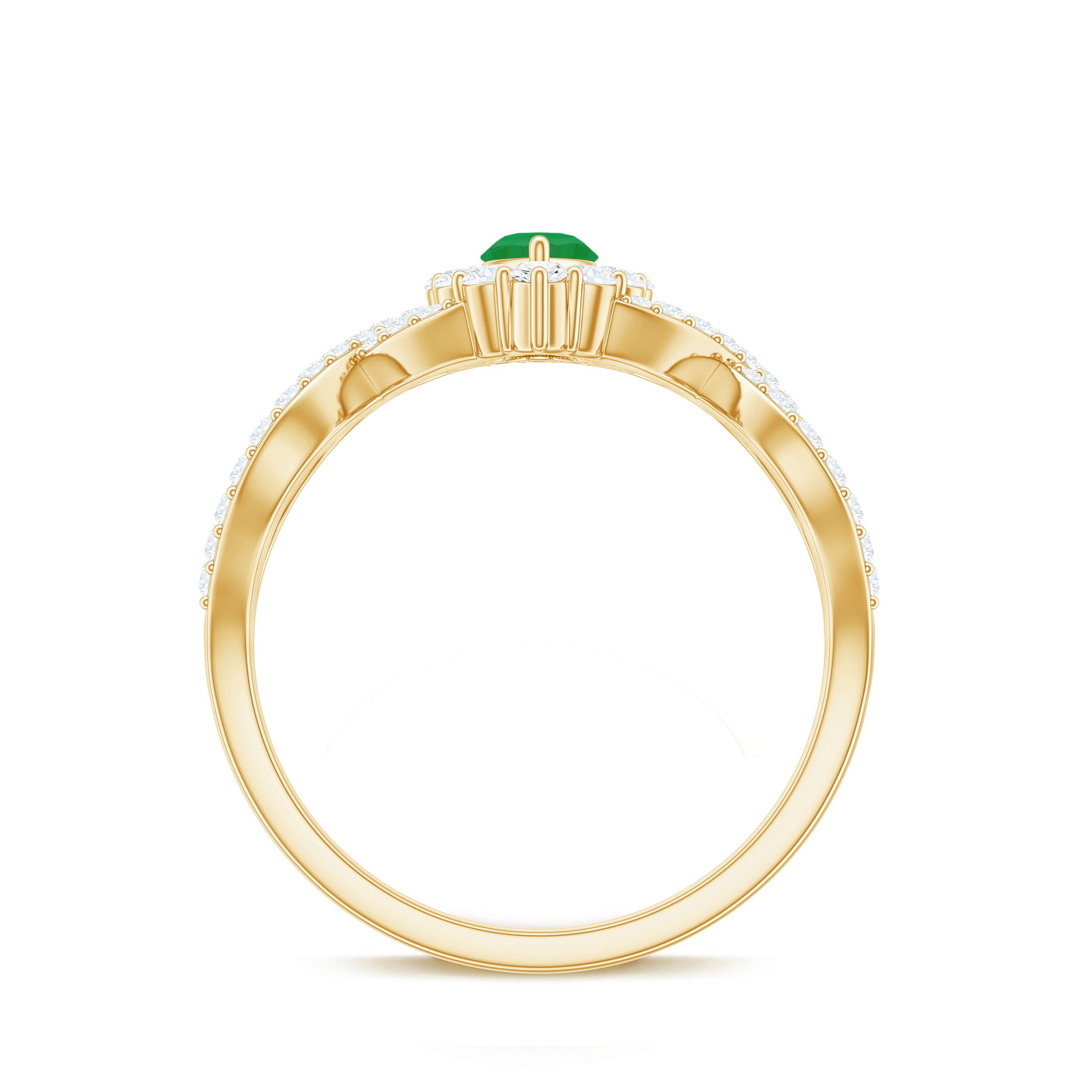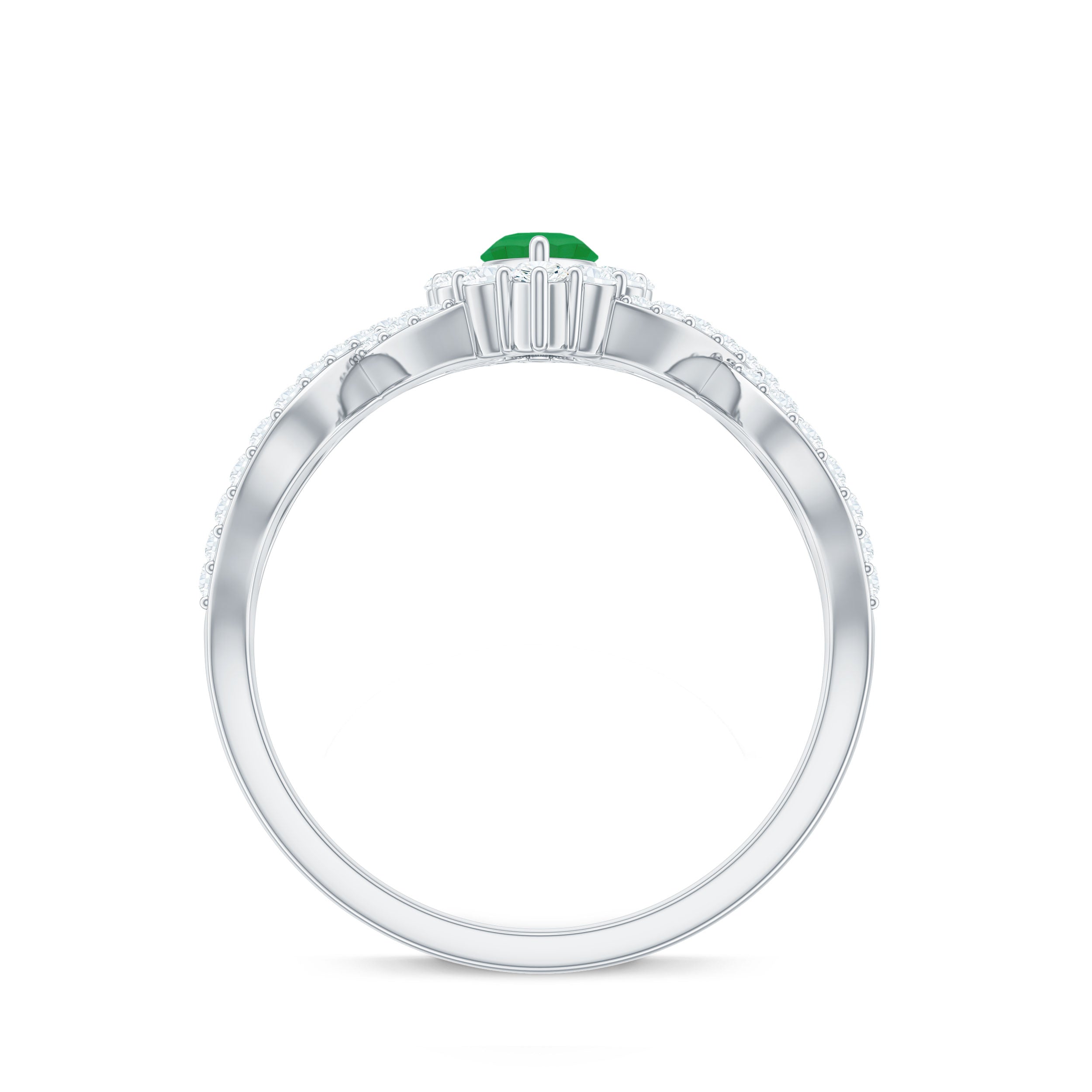 Move into a world of timeless elegance with this Emerald Engagement Ring, a piece of jewelry that speaks the language of everlasting love. The striking 4X8 mm Marquise Shape Emerald is set in 2 Prong Setting, a gemstone that symbolizes renewal, hope and eternal devotion. Encircled by a shimmering Halo of Diamond stones, the brilliance of the Emerald is magnified, creating a breathtaking play of light that mirrors the spark of true affection. The graceful Crossover Shank, delicately adorned with sparkling Diamond stones, wraps around the finger, a design that beautifully reflects the intertwining of two hearts and destinies. Every curve tells a story of passion and promise, making this Marquise Engagement Ring with Emerald a stunning choice for proposals or romantic milestones. Presented in a signature jewelry box and available in a range of ring sizes, this Crossover Ring is a poetic expression of forever. Whether you are declaring your love for the first time or reaffirming it once more, this Emerald Diamond Engagement Ring captures the magic of love.