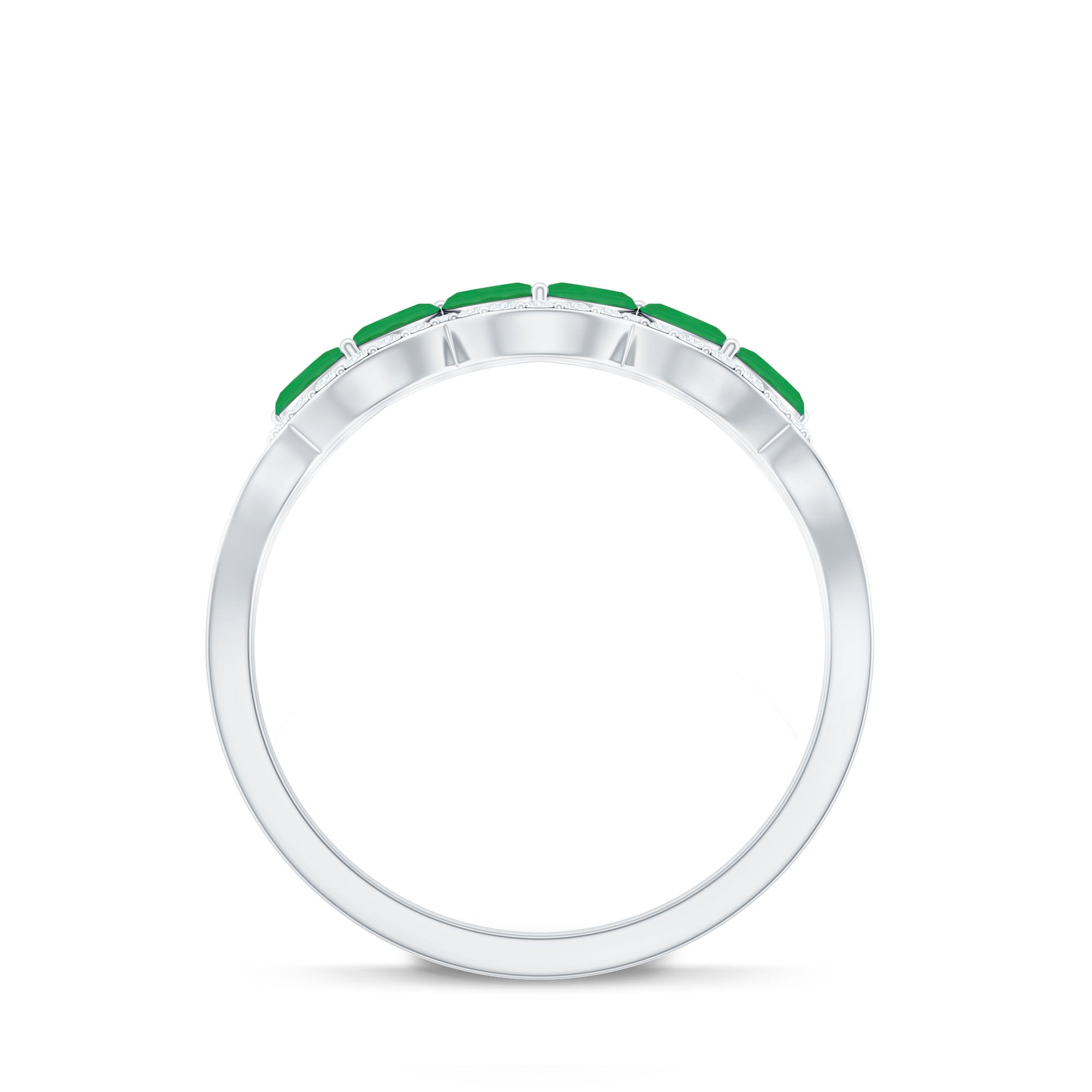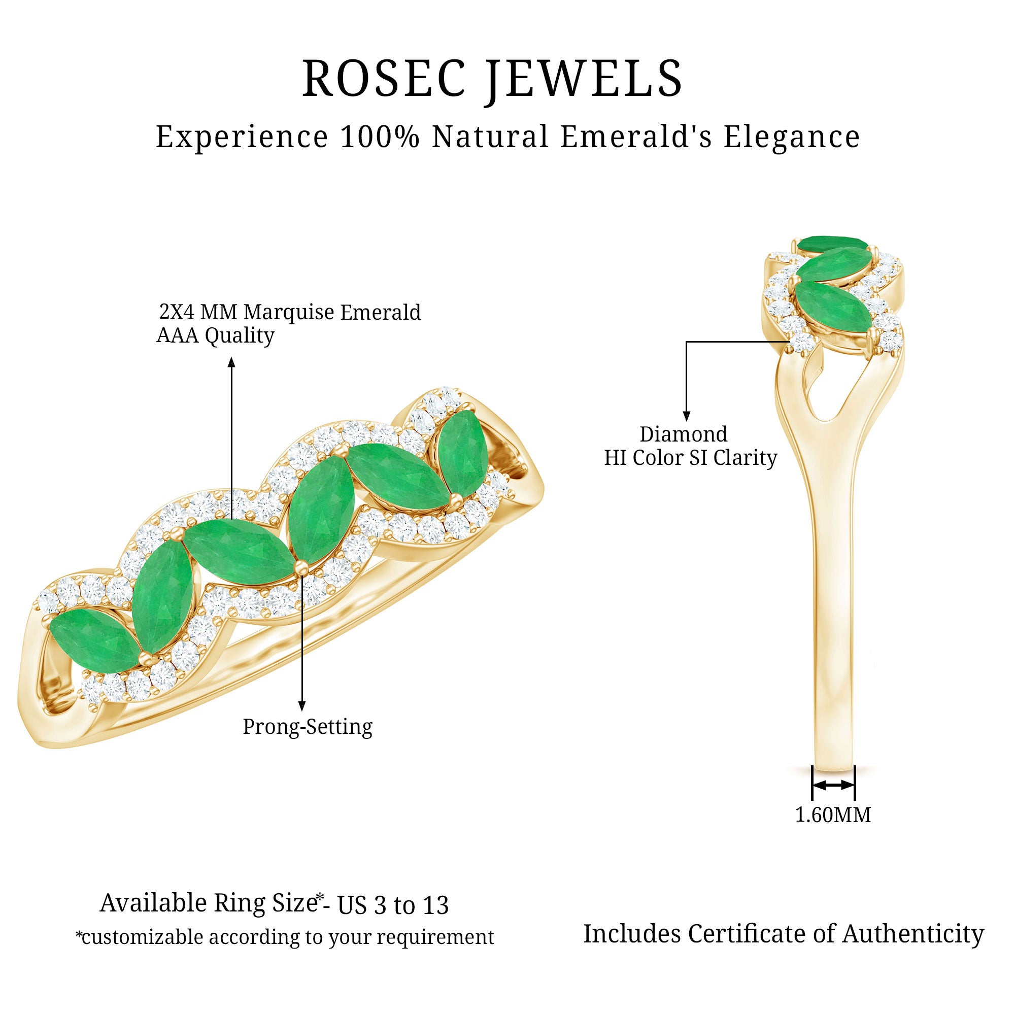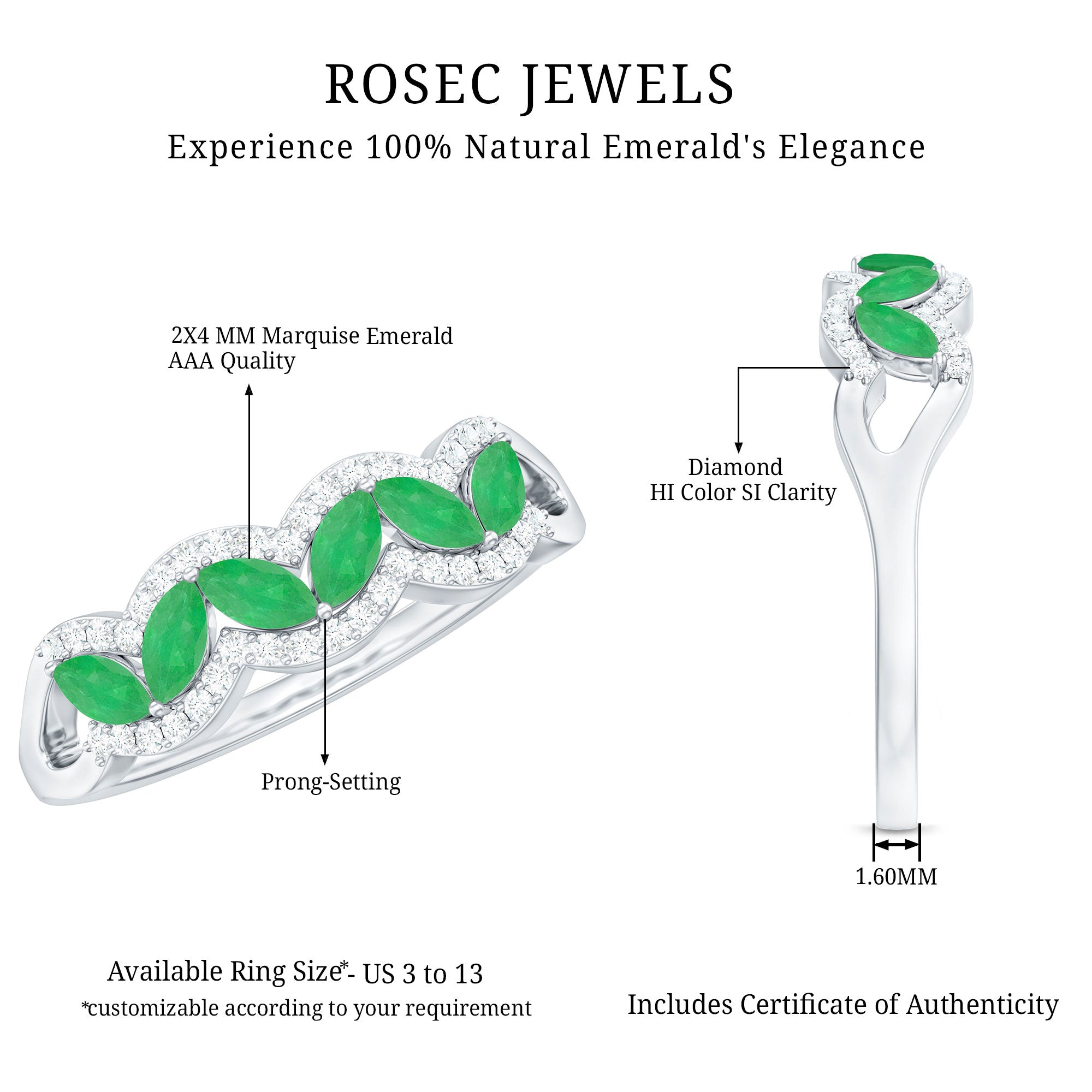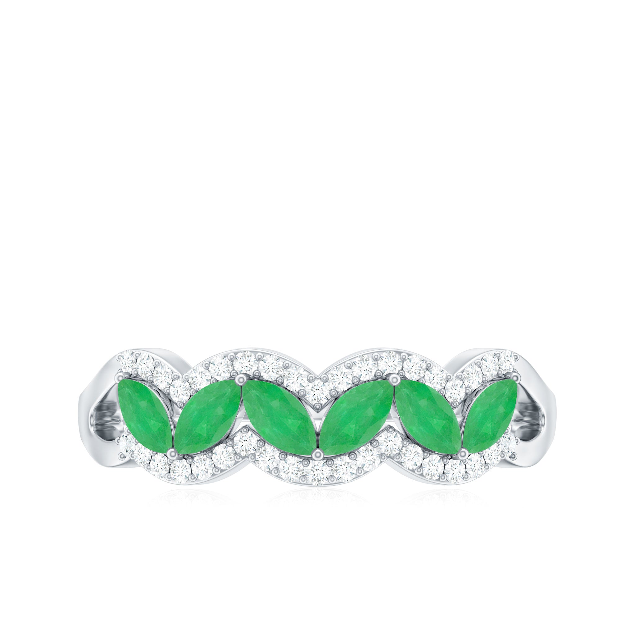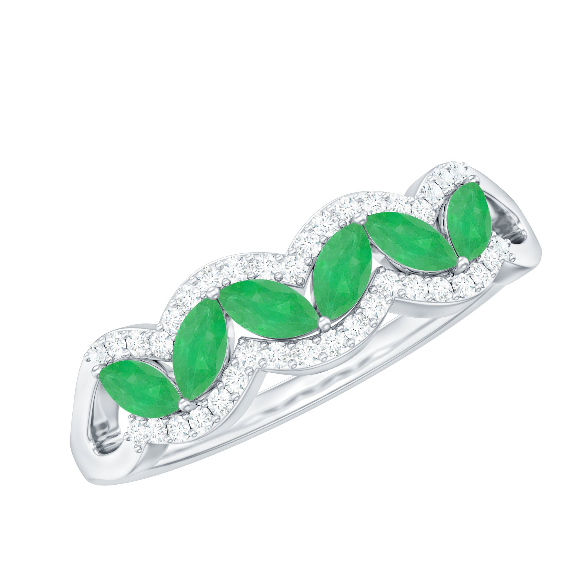 Natural Marquise Emerald Half Eternity Anniversary Ring with Diamond
