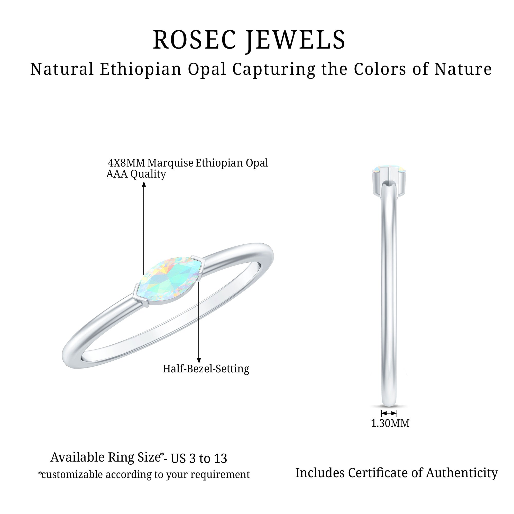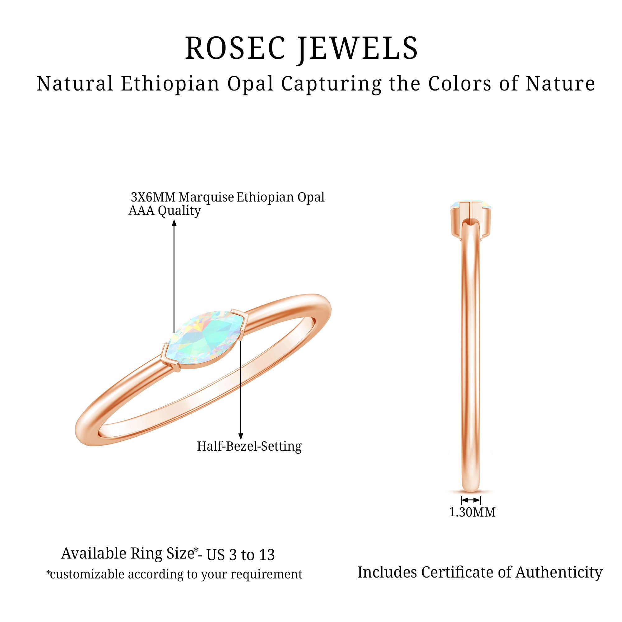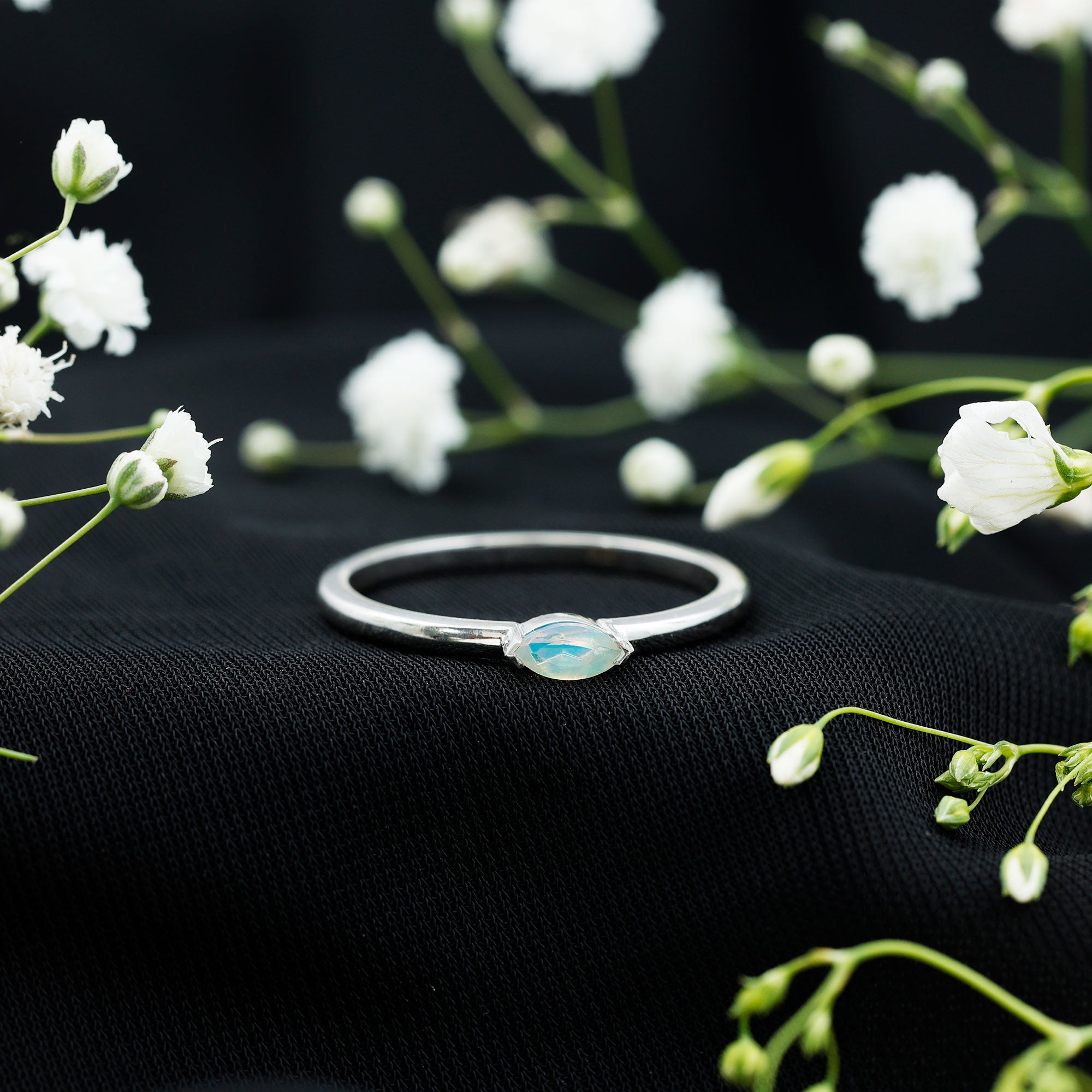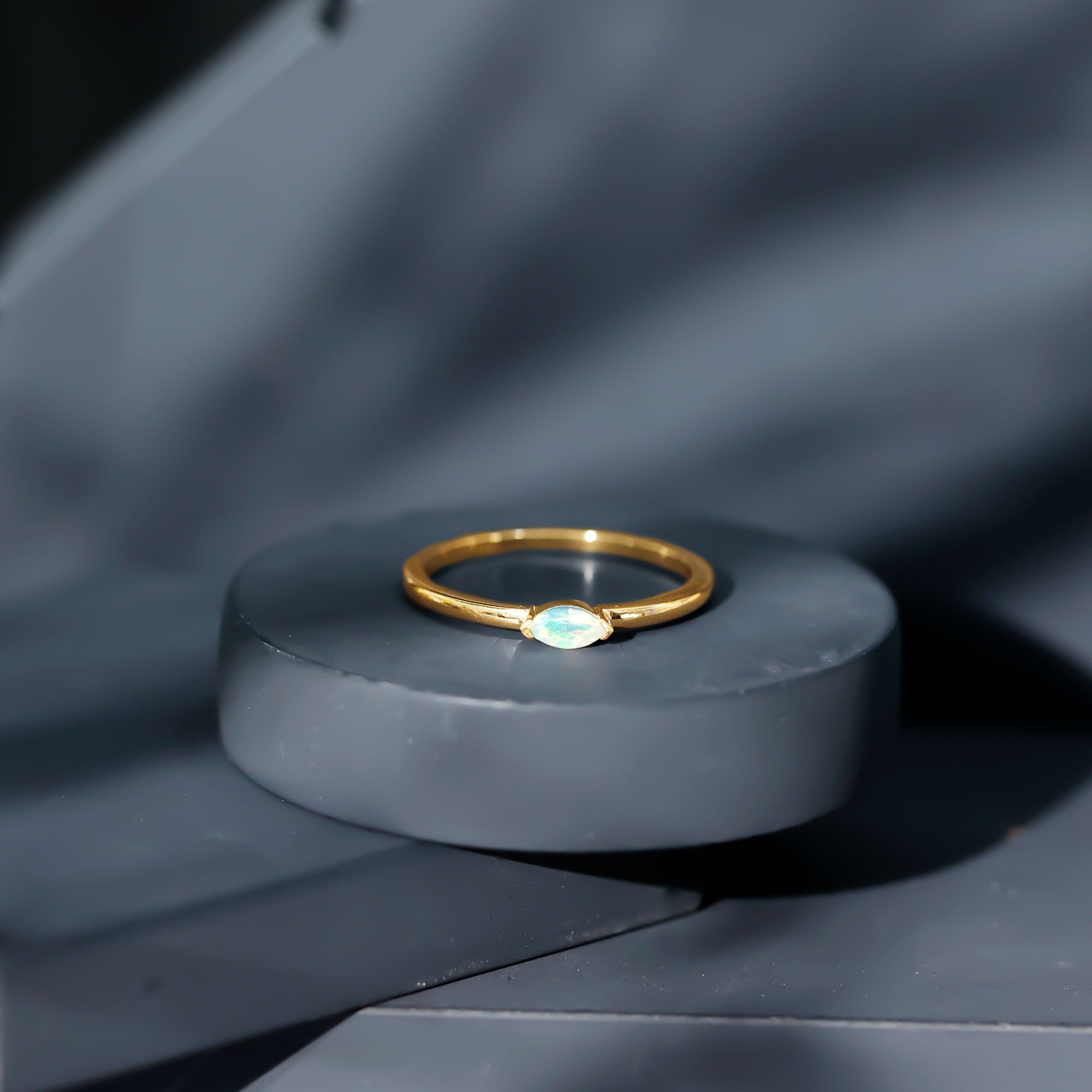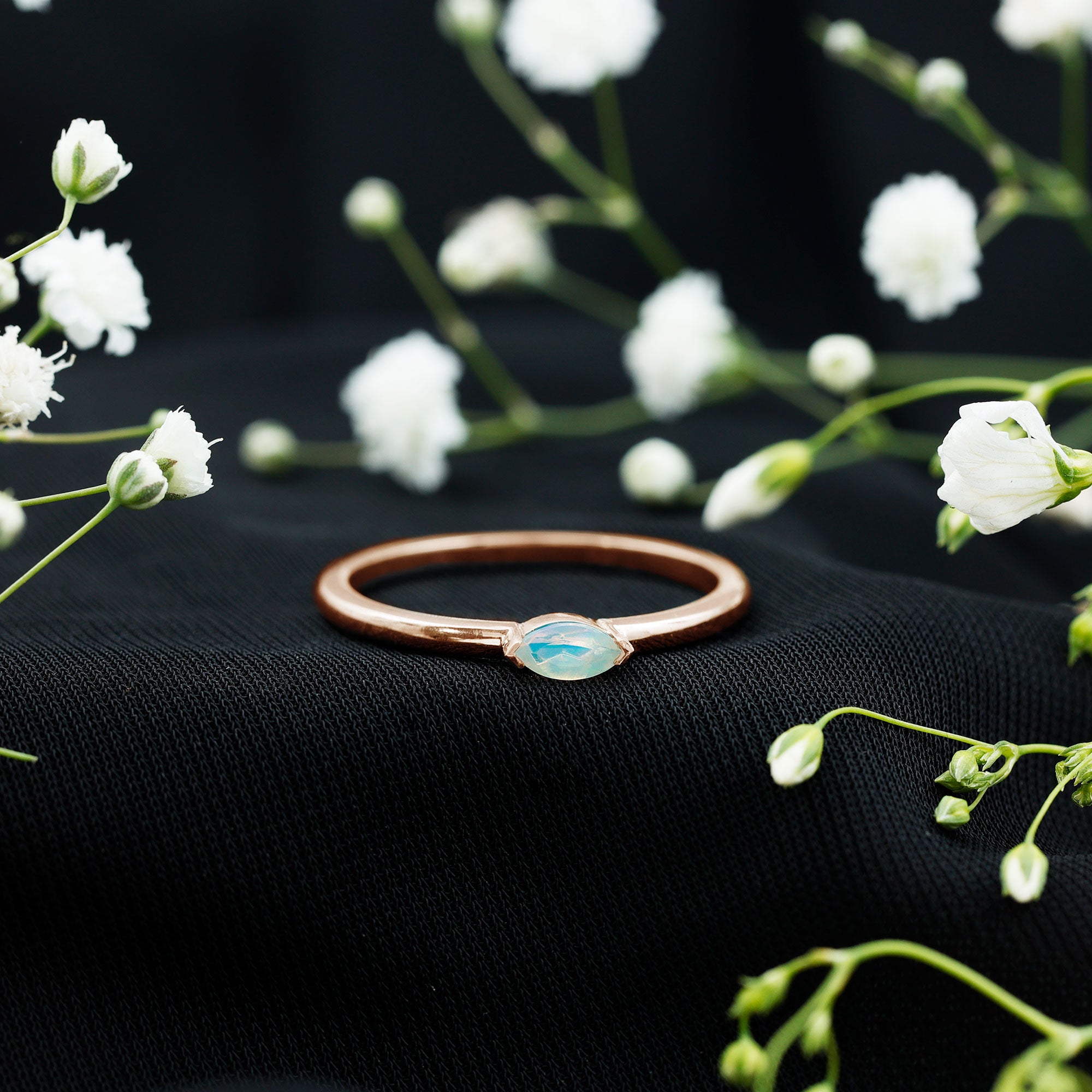 Natural Marquise Ethiopian Rainbow Opal Promise Ring in East West Style
