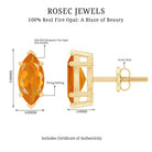 Natural Marquise Fire Opal Stud Earrings with Screw Back