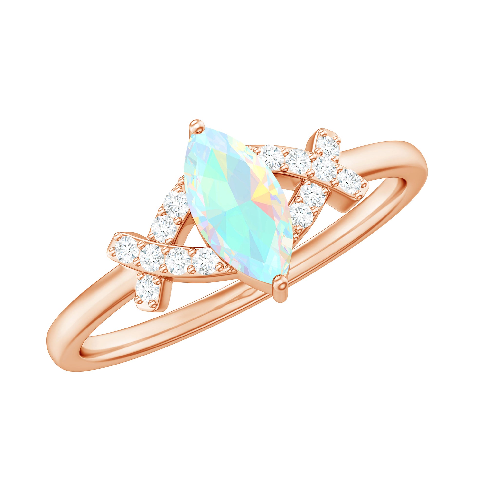 Natural Marquise Opal Diamond Engagement Ring with Certificate