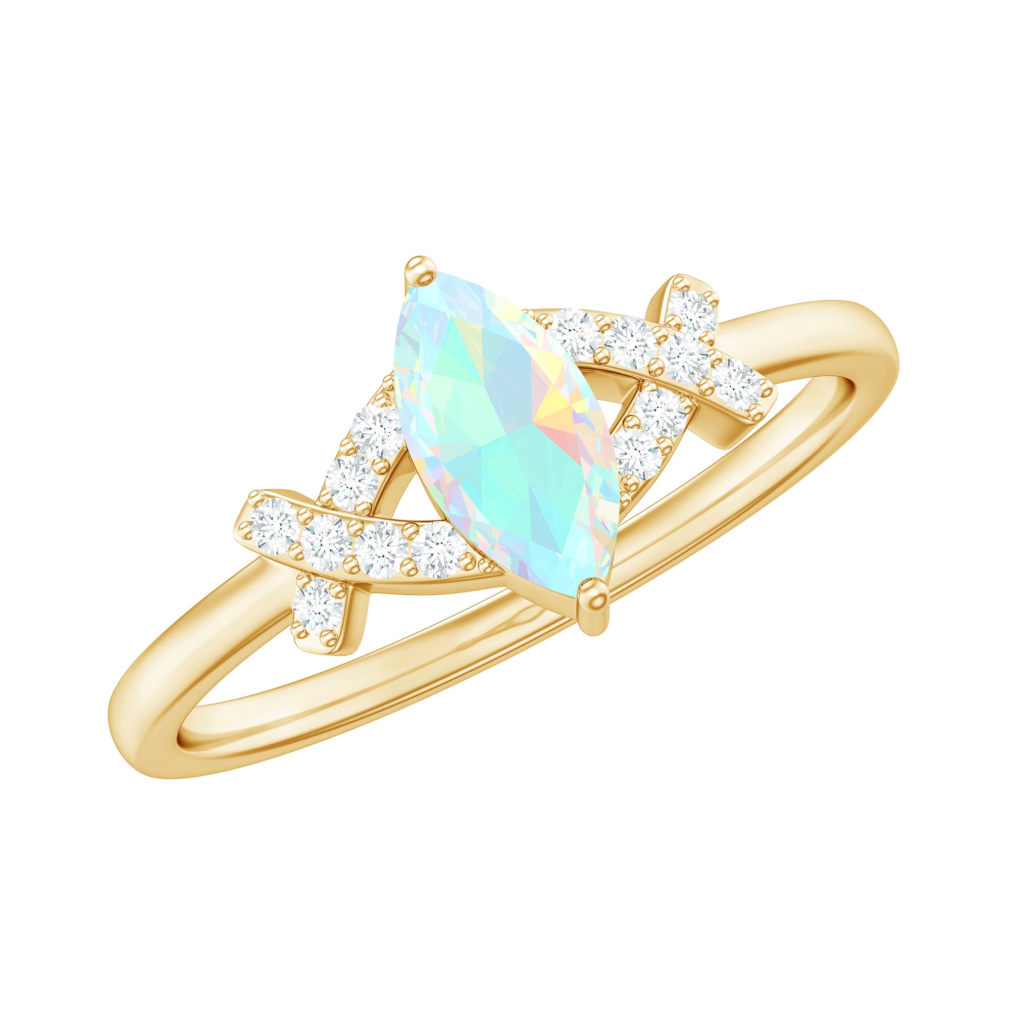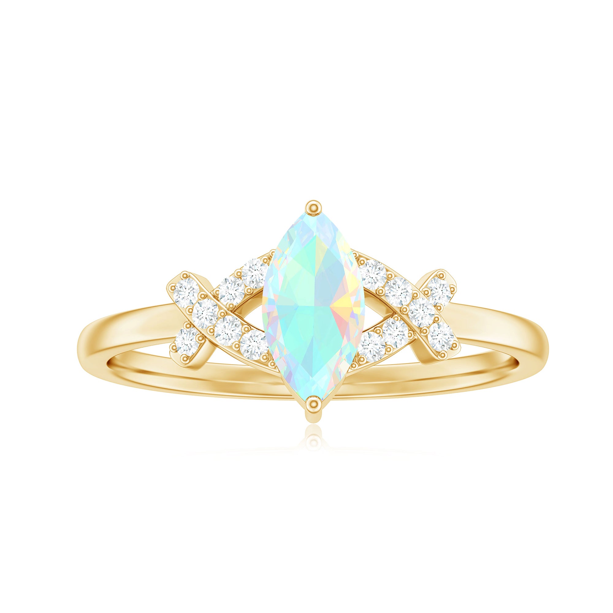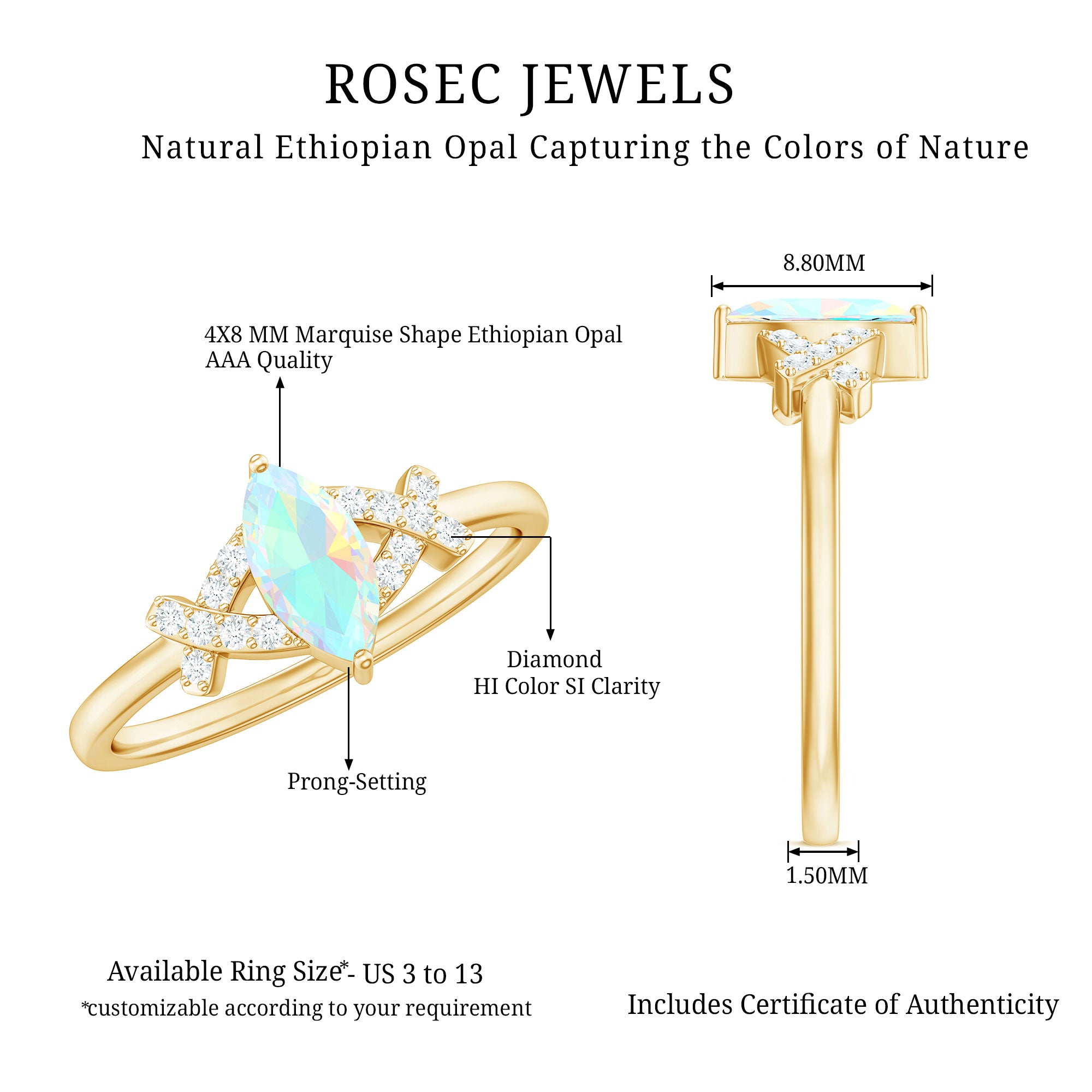 Infuse your forever moment with artistry through this Marquise Engagement Ring, a true statement of style and devotion. At the center of the ring lies a 4X8 mm Marquise Shape Ethiopian Opal 2 Prong Setting, glowing with a mesmerizing play of rainbow colors. The Opal is gracefully placed over a Split Shank, elegantly adorned with shimmering Diamond stones that add brilliance from every angle. This unique band design draws attention, making the opal appear even more radiant while adding a modern flair. Perfect for the one who deserves something as extraordinary as they are, this Opal and Diamond Engagement Ring blends romantic symbolism with design in a way that feels both timeless and fresh. Whether you are planning a heartfelt proposal or marking a milestone, this Opal Engagement Ring is available in a variety of sizes and comes ready to gift in a beautiful jewelry box. Give her this Split Shank Engagement Ring, a piece that reflects her light and your future together, wrapped in sparkle and eternal promise.