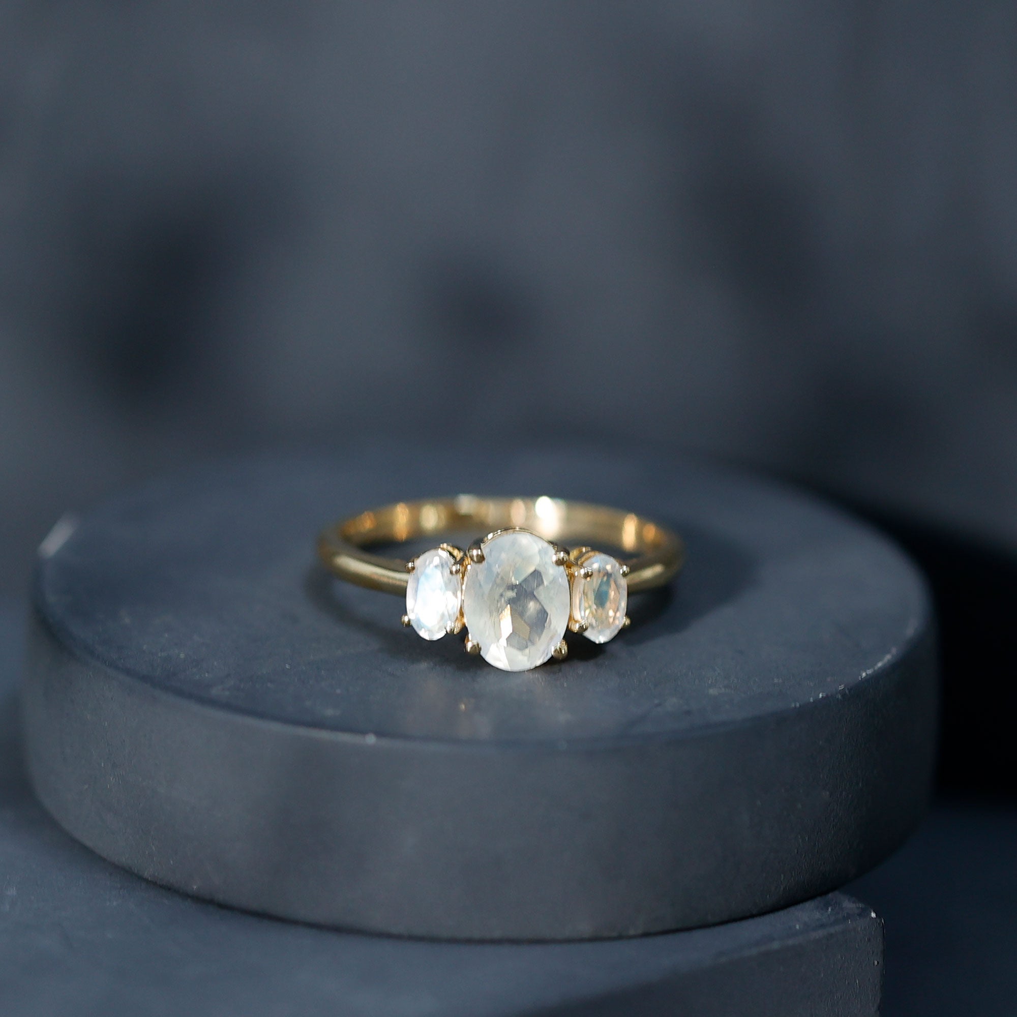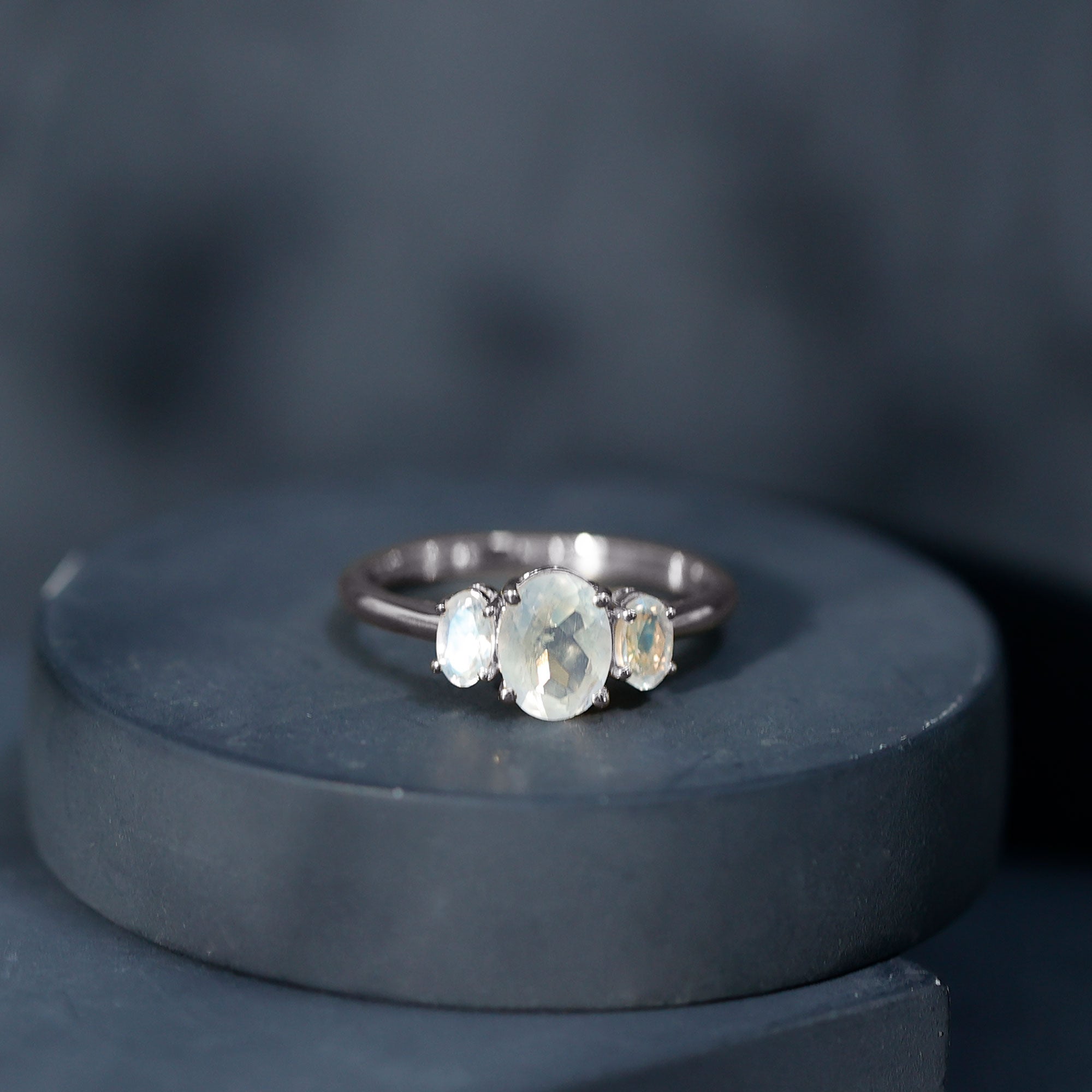 Natural Moonstone Three Stone Oval Engagement Ring