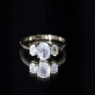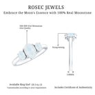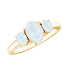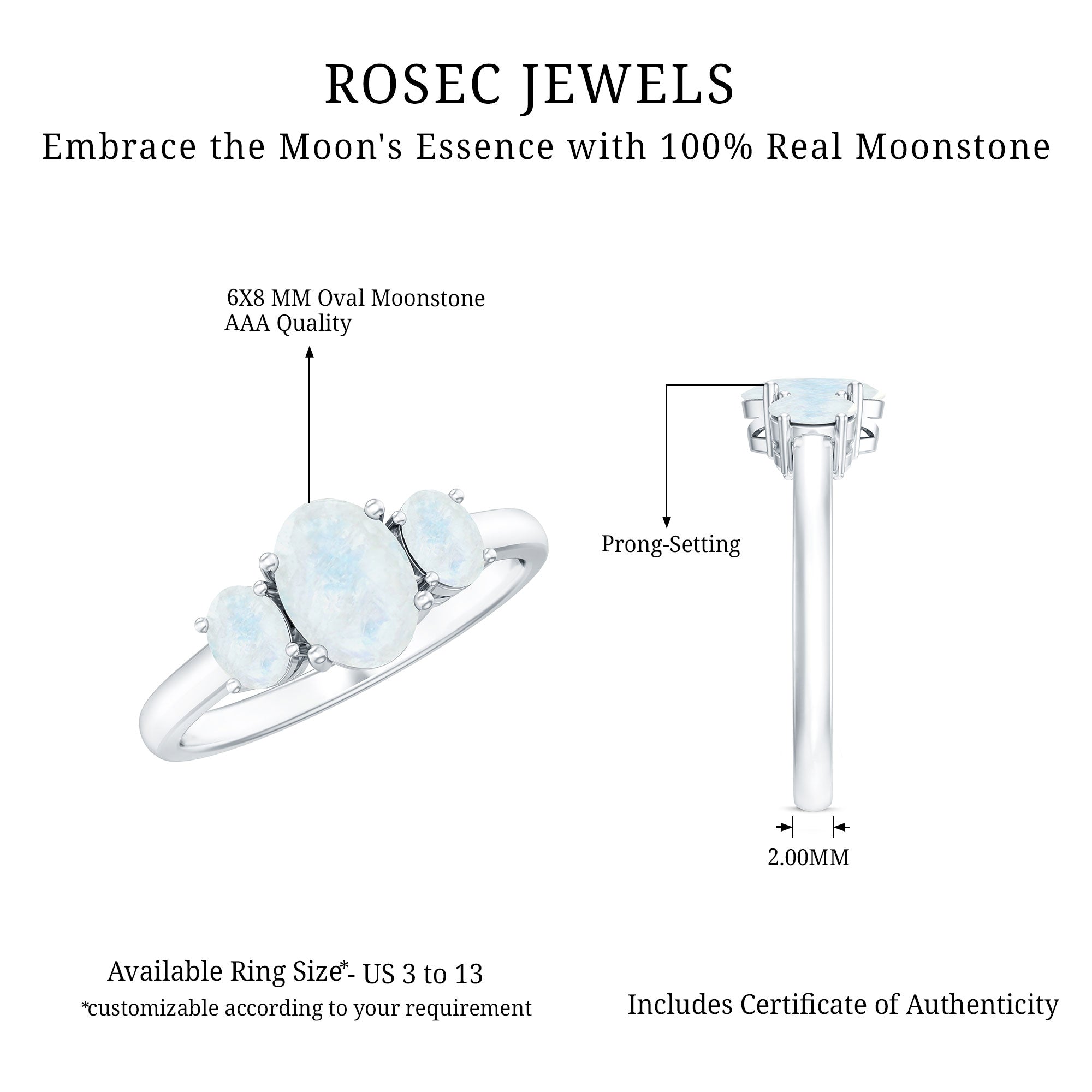 Step into a world of soft beauty with this elegant Moonstone Engagement Ring, crafted to reflect love, meaning, and timeless style. At the center set a glowing 6X8 MM oval cut moonstone, known for its calming shine and dreamy appearance. On each side, two 3X5 MM oval moonstones complete the design, all held securely in prong setting that lets the stones catch the light with every movement. The three-stone layout carries a special meaning, representing your past, present, and future together. It symbolizes the journey you have shared, the joy you feel today, and the promises you are excited to build for tomorrow. This makes the 3 Stone Engagement Ring not only beautiful but deeply meaningful. Its simple band enhances the soft shimmer of the moonstones, creating a delicate and romantic look that suits many styles, whether simple, modern, or vintage-inspired. Comfortable for daily wear yet stunning enough for special moments, this Oval Moonstone Ring makes a thoughtful choice for engagements, anniversaries, or milestone celebrations.
