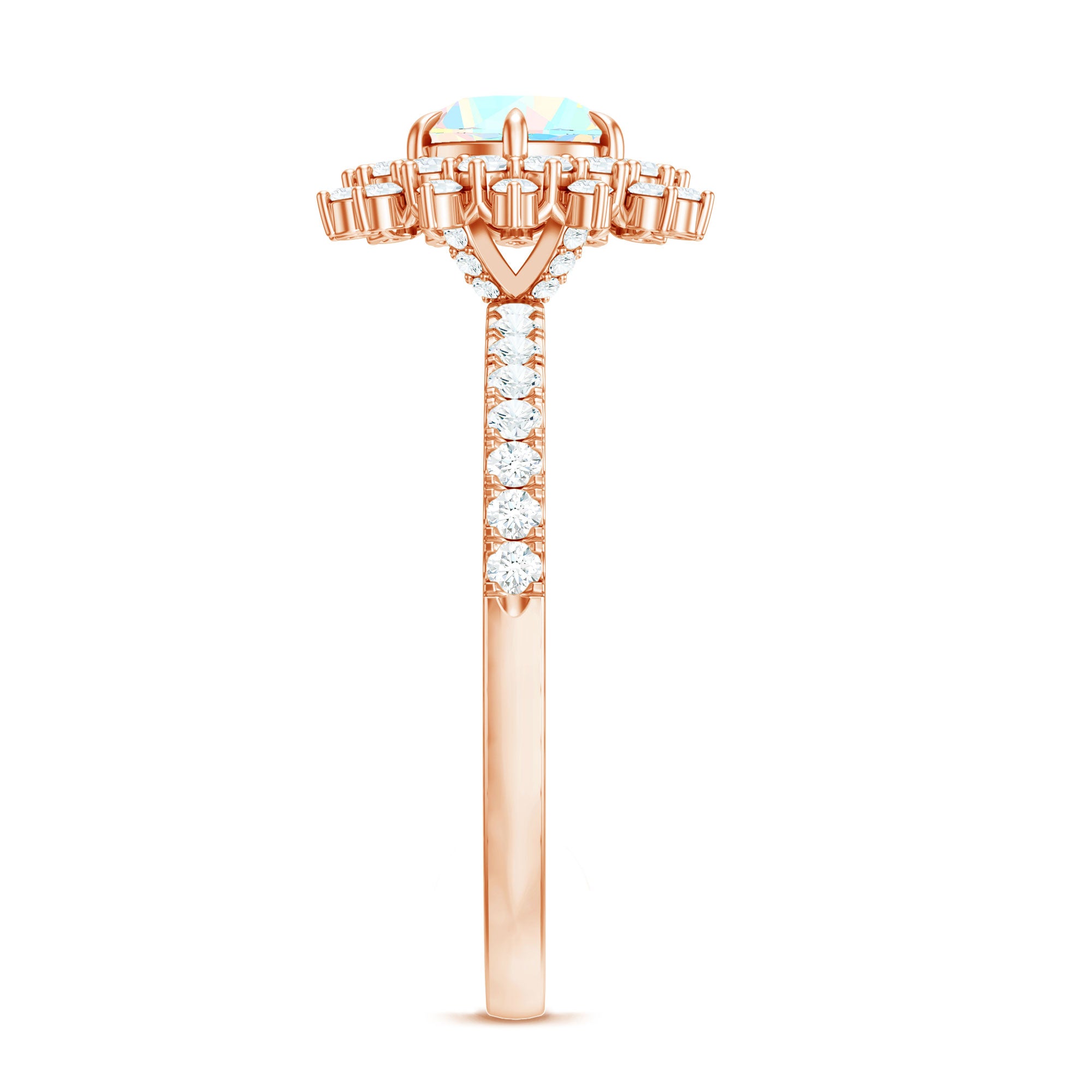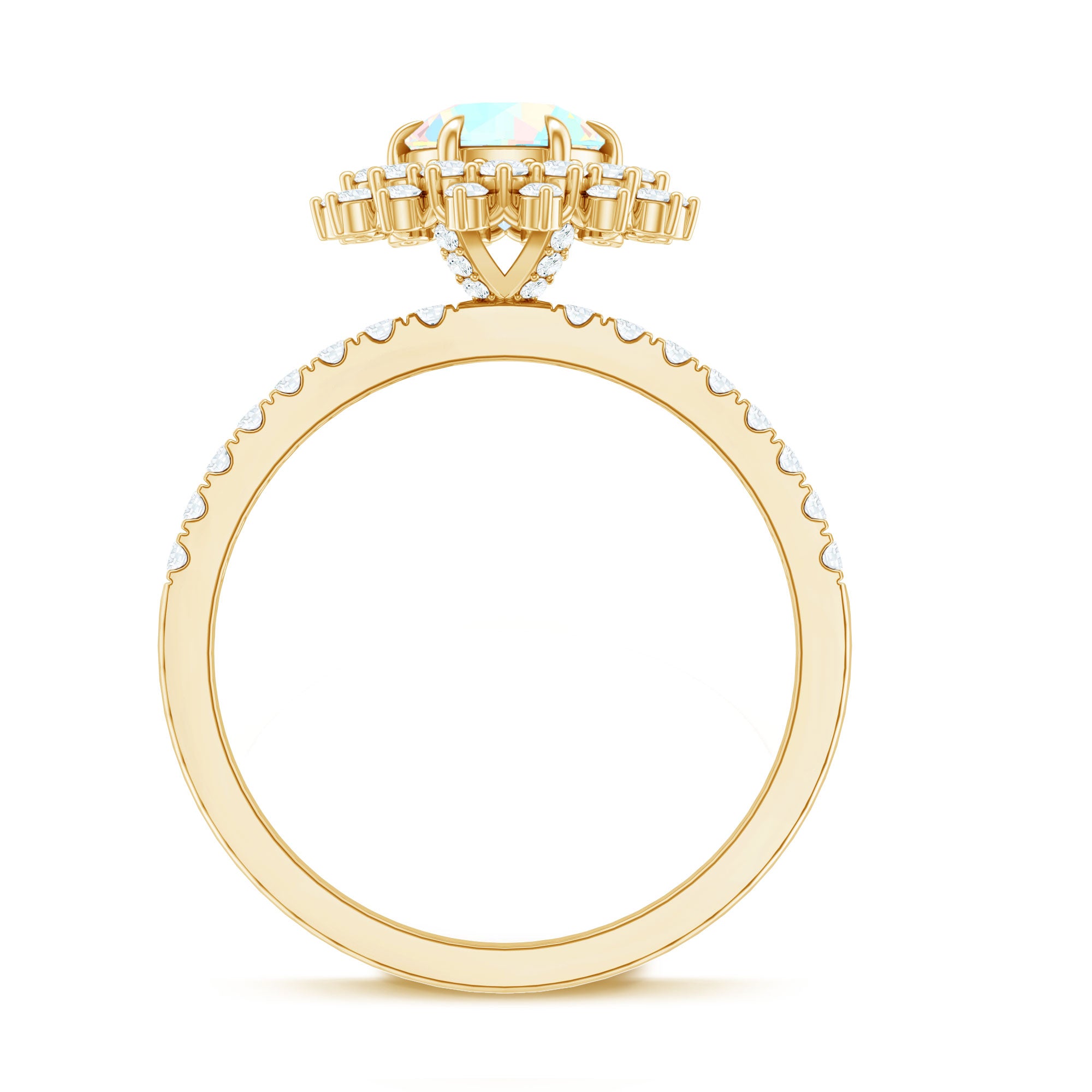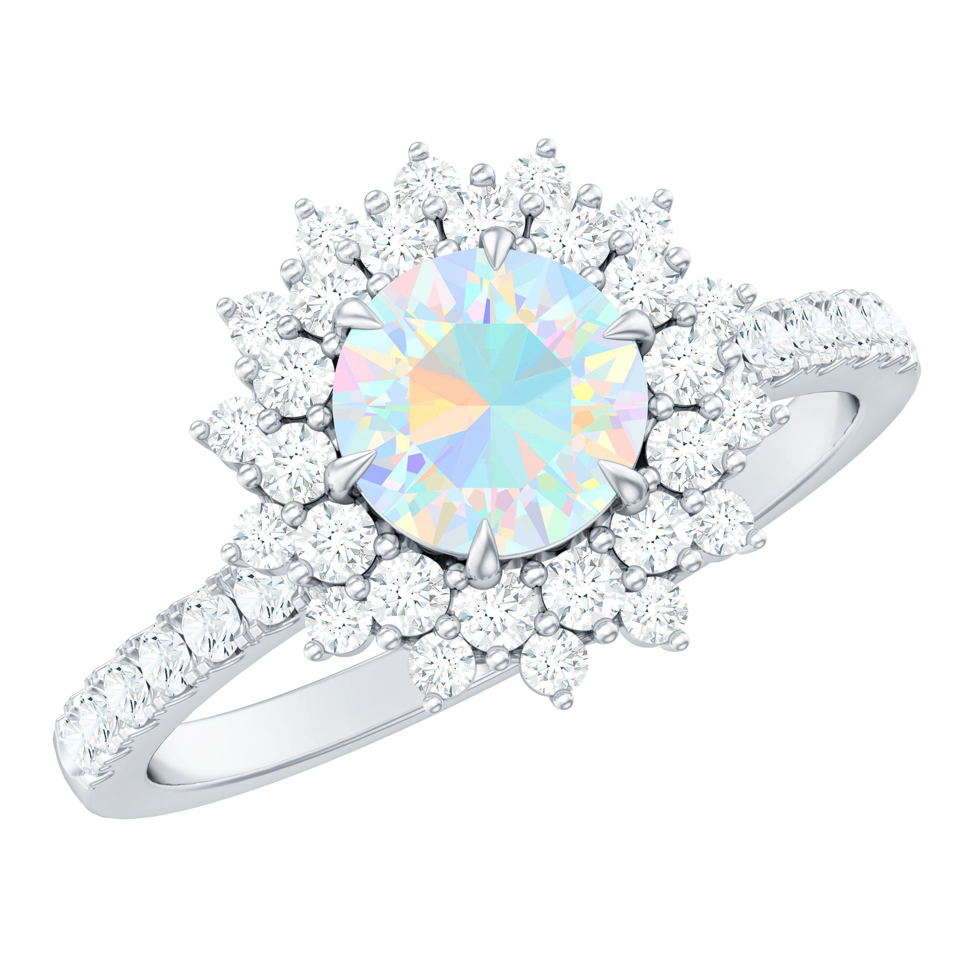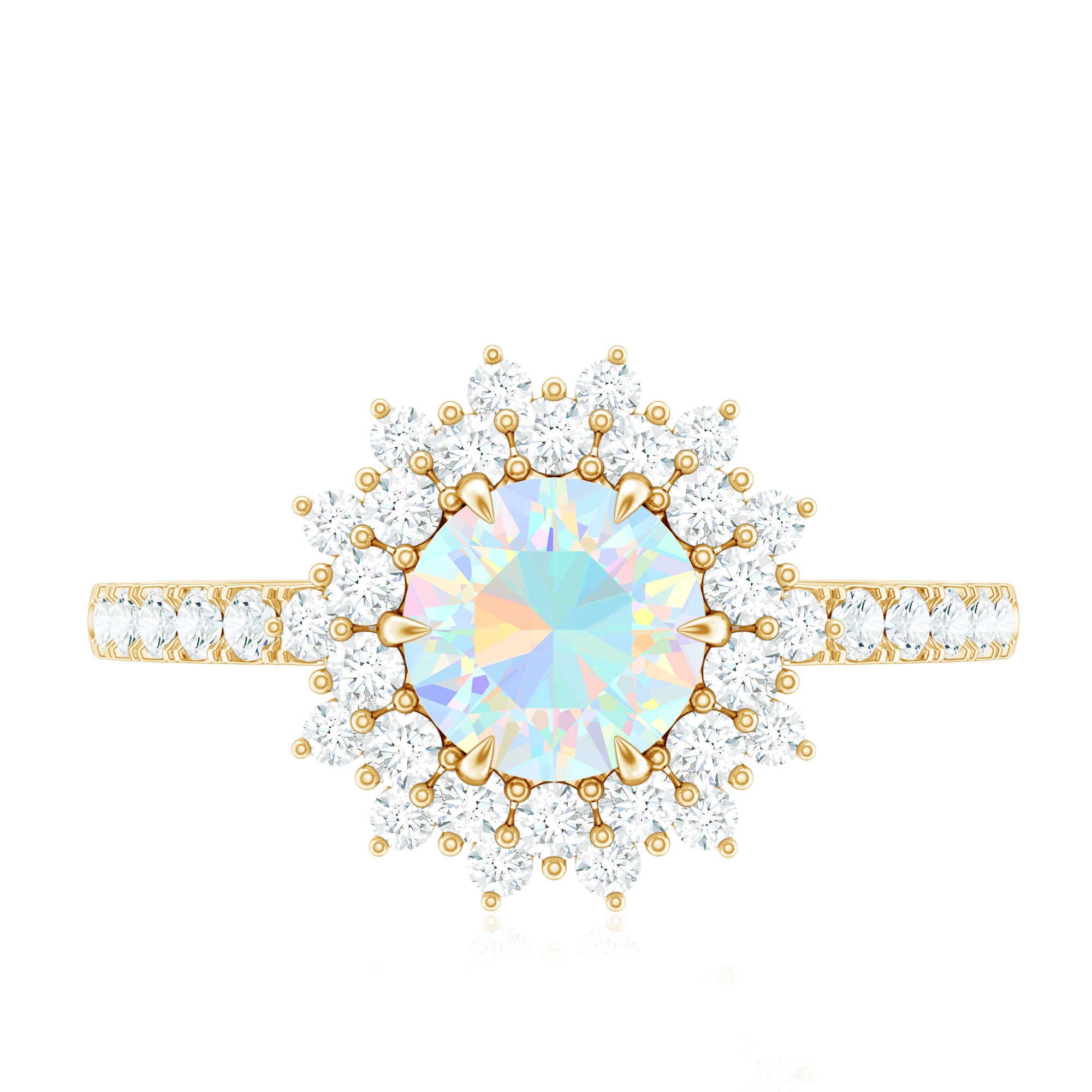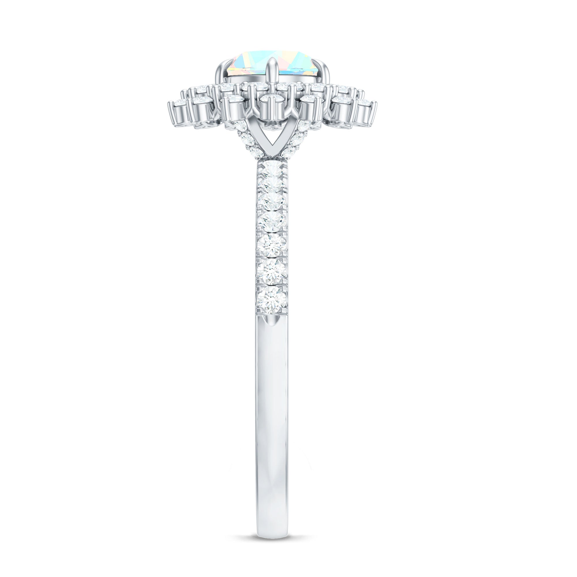 Natural Opalescent Circle Engagement Ring with Double Halo