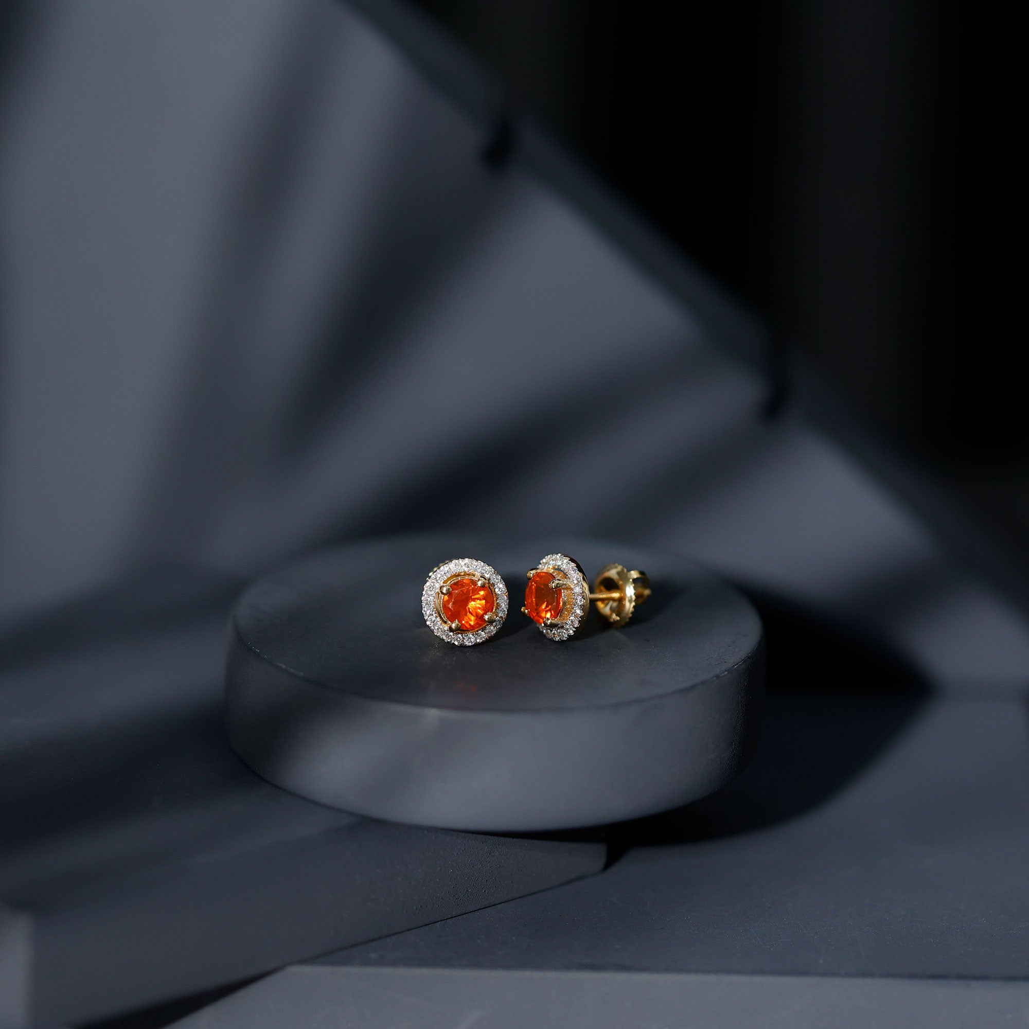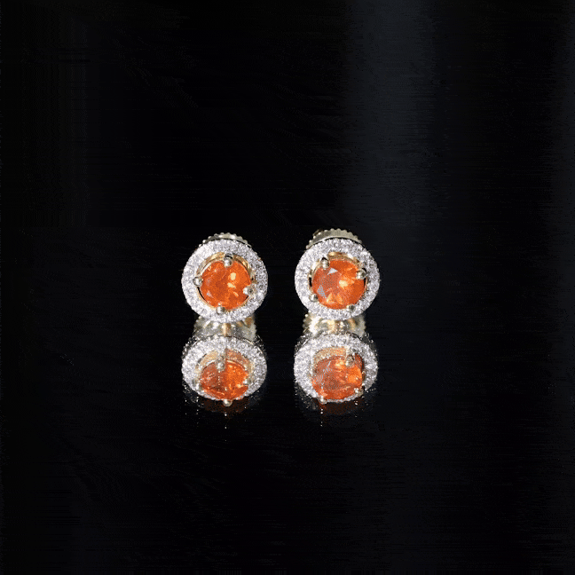 Natural Orange Fire Opal Stud Earrings With Diamonds